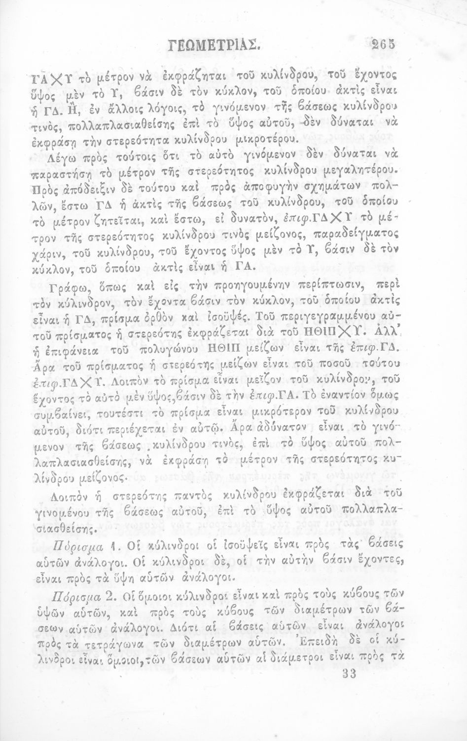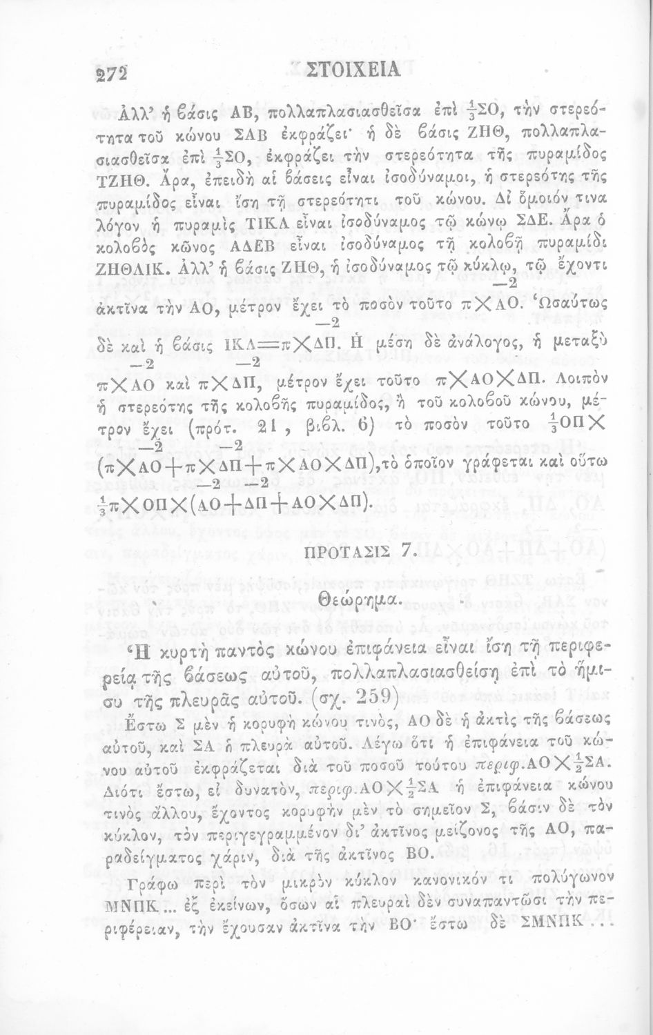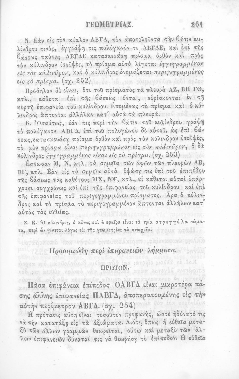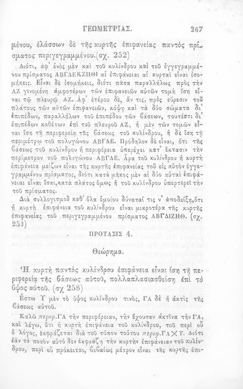 Σχολικό εγχειρίδιο Γεωμετρίας που είναι χωρισμένο σε θεωρήματα και τις λύσεις τους.