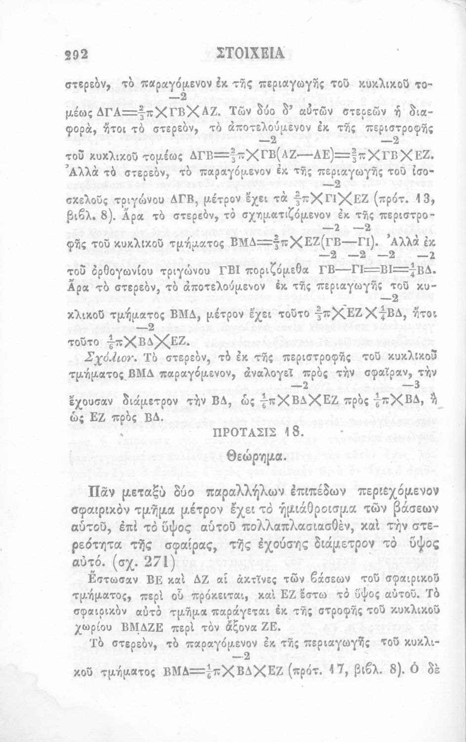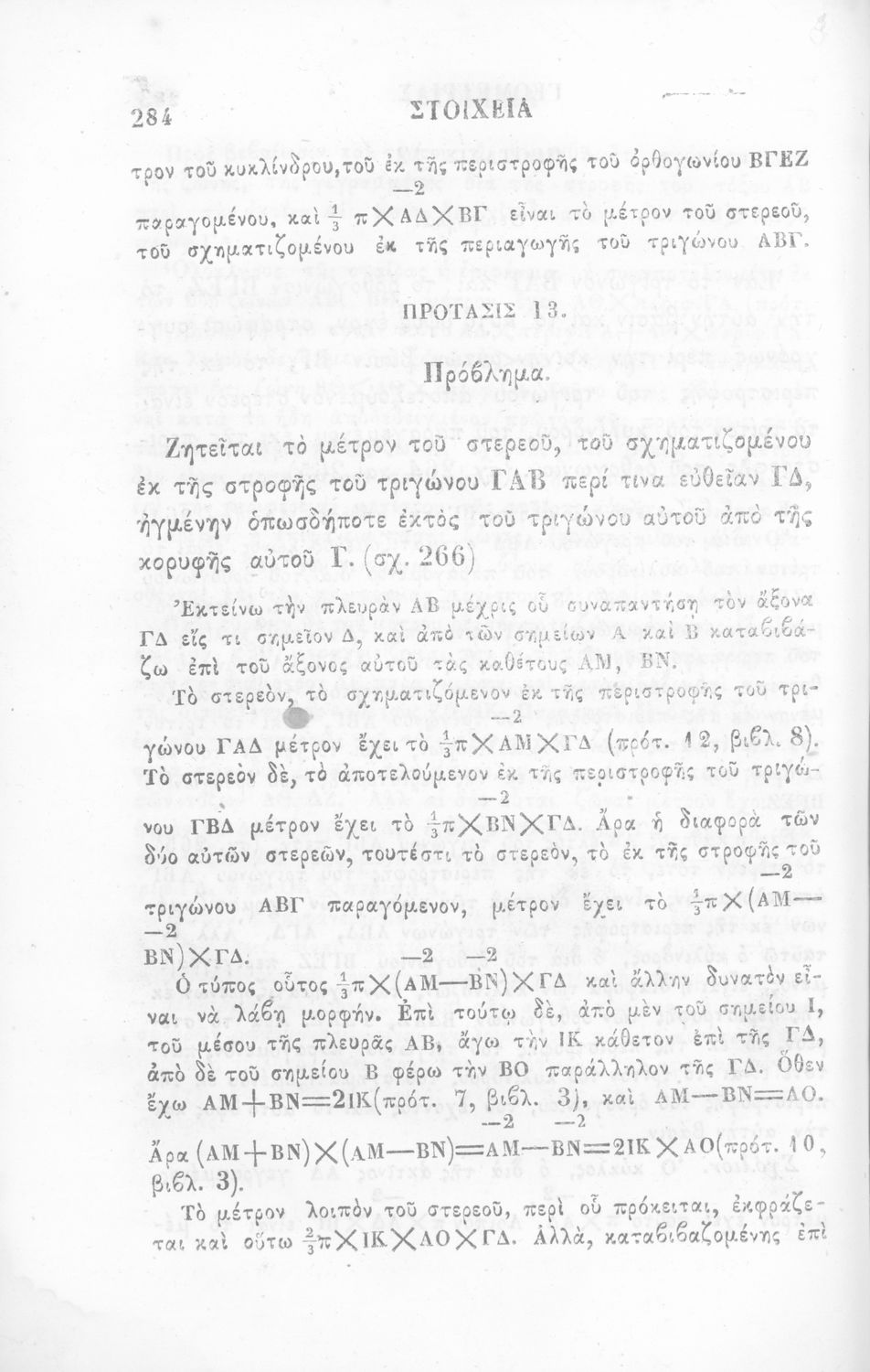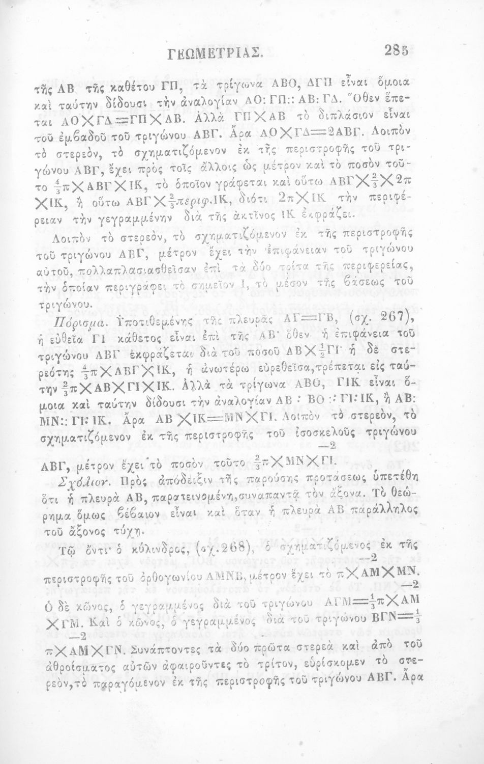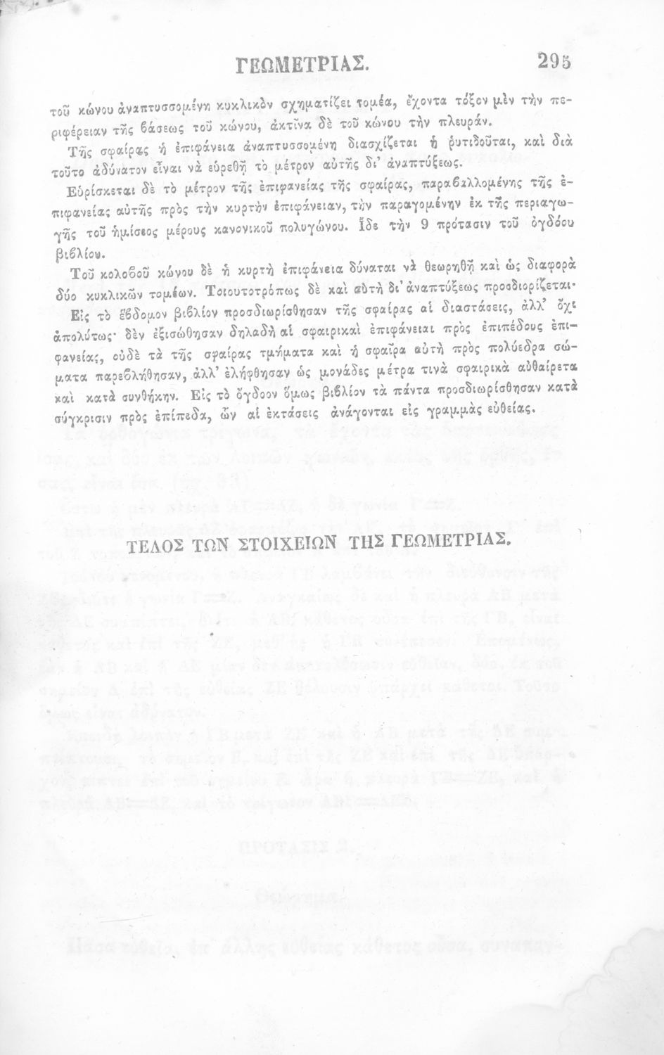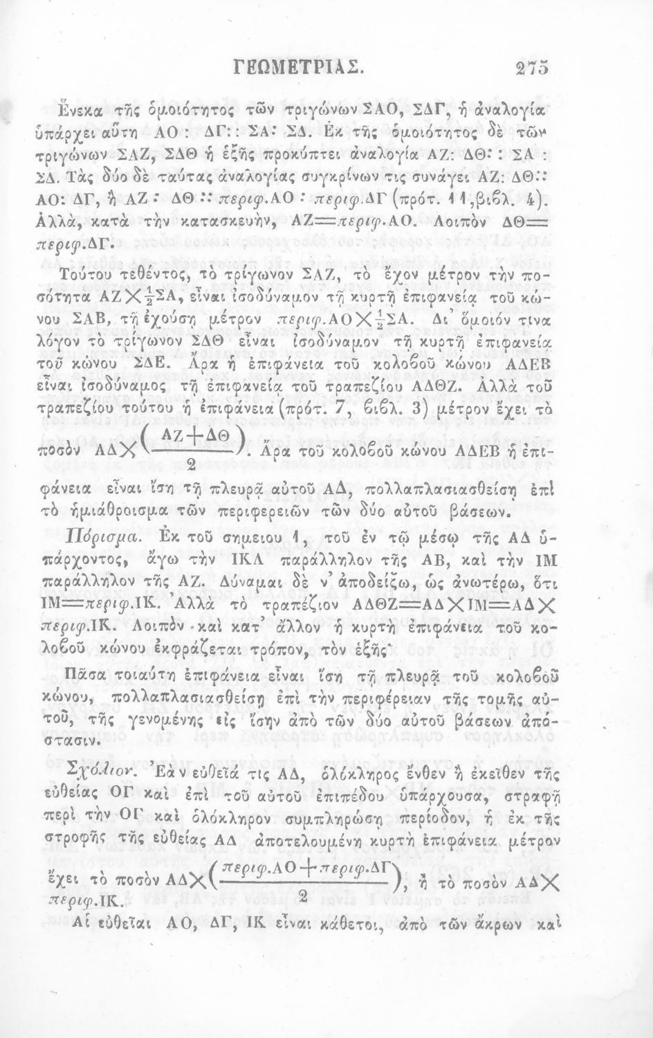 Σχολικό εγχειρίδιο Γεωμετρίας που είναι χωρισμένο σε θεωρήματα και τις λύσεις τους.