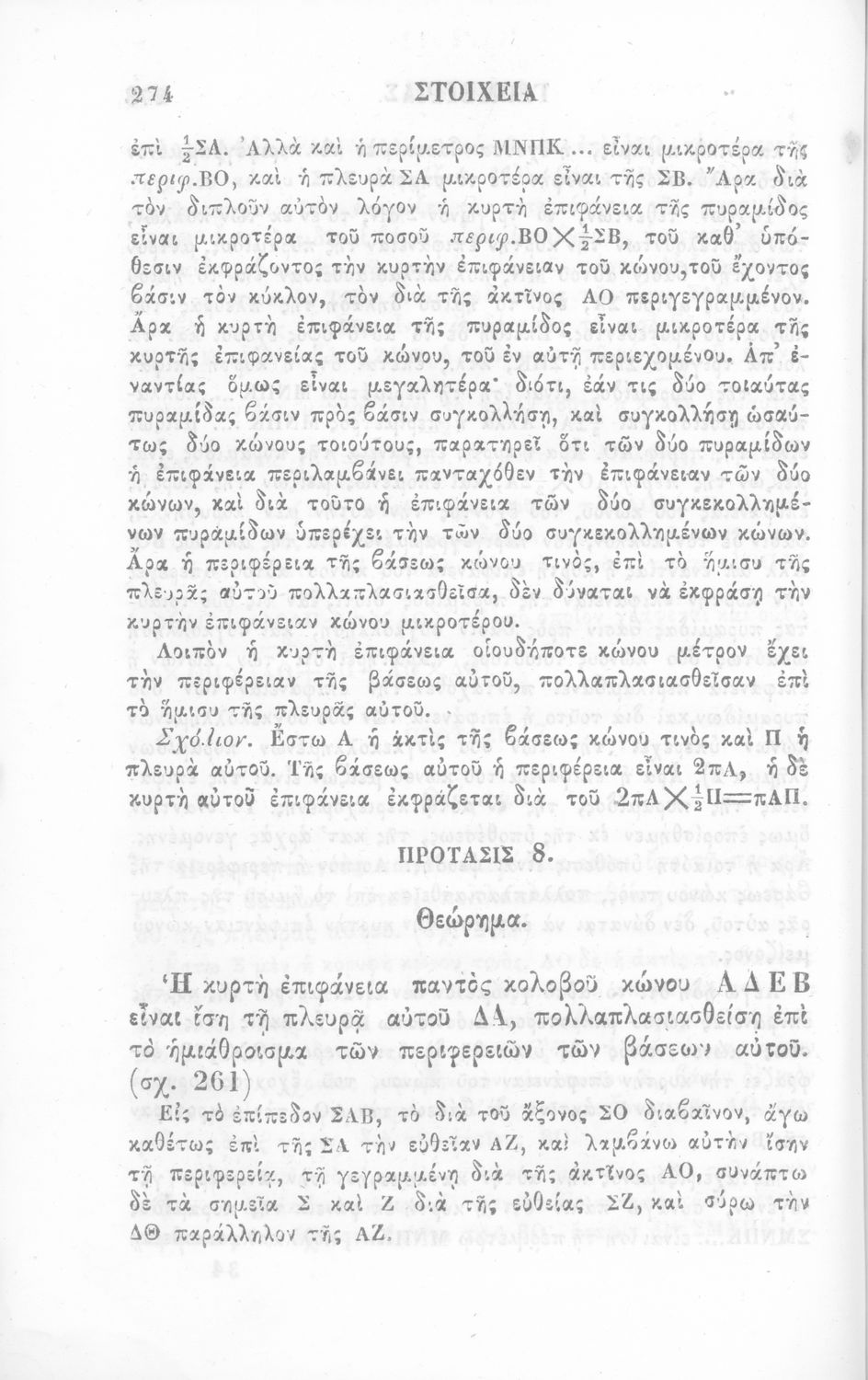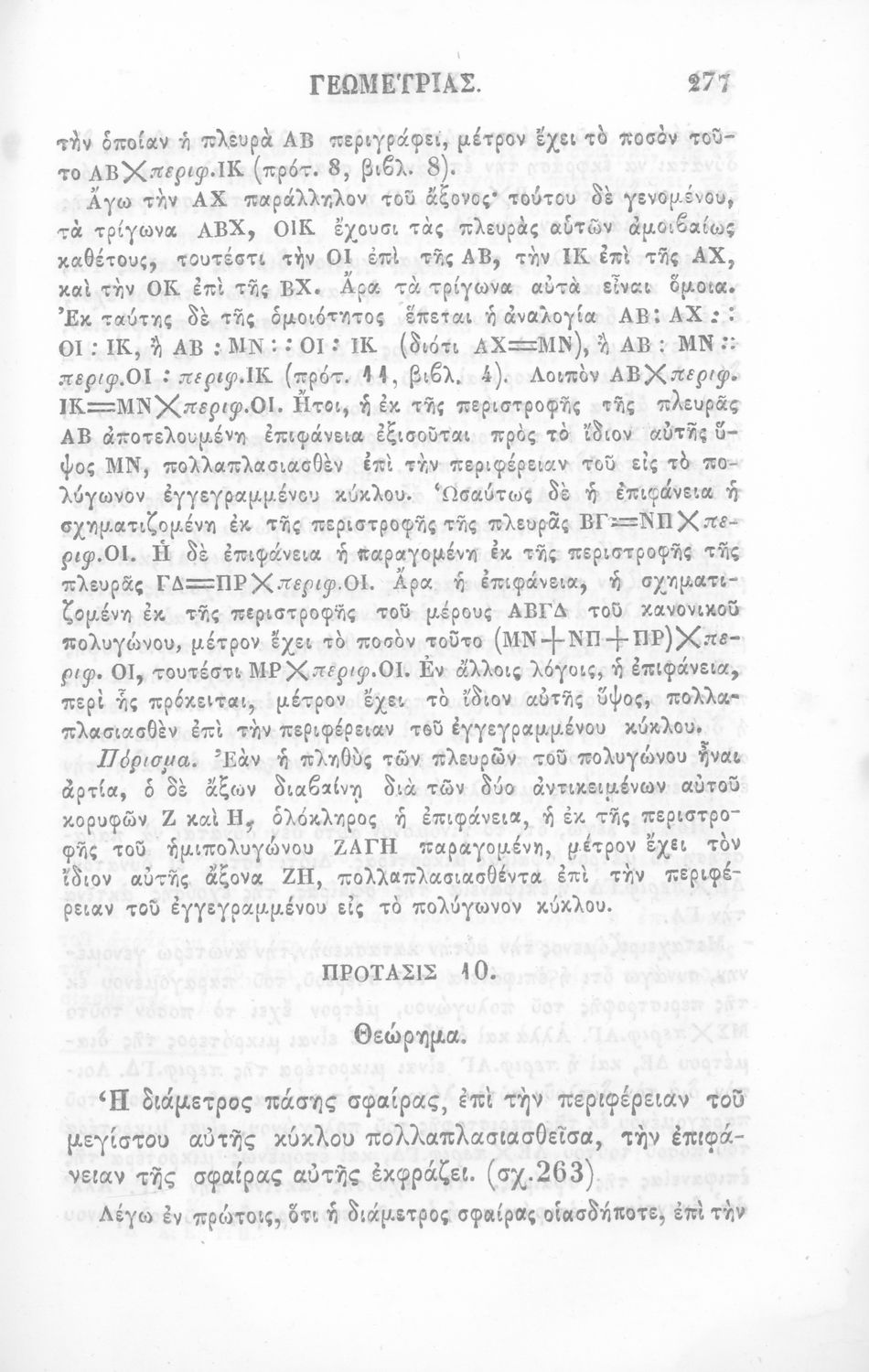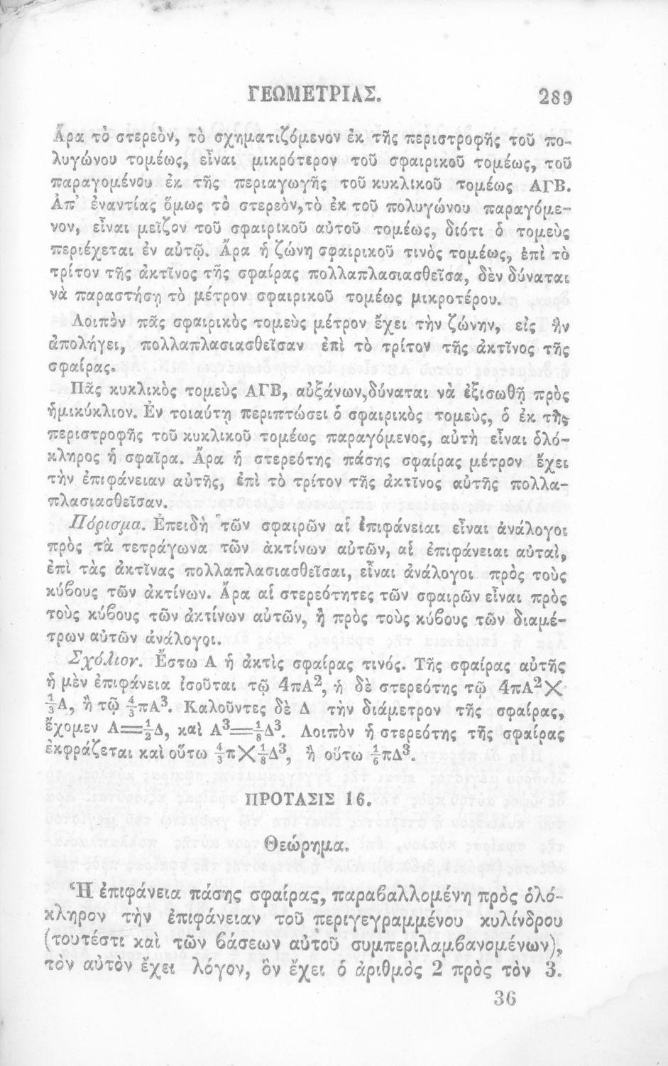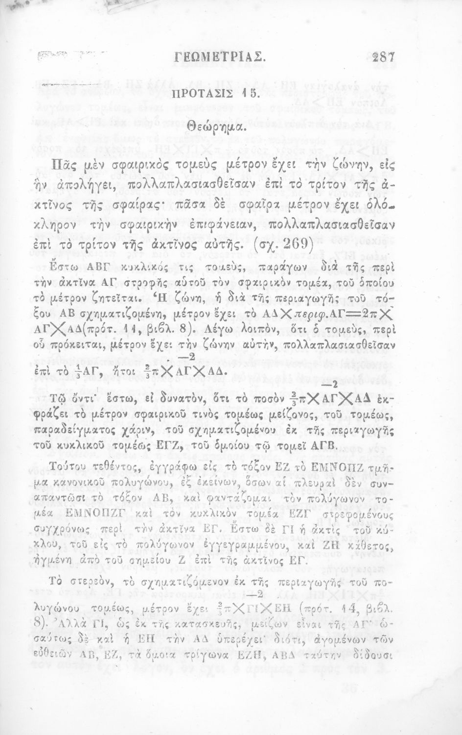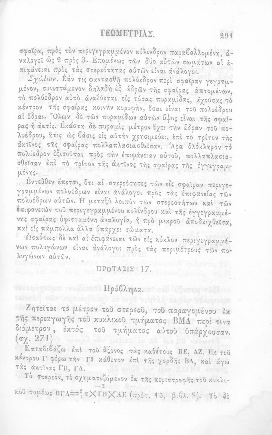 Σχολικό εγχειρίδιο Γεωμετρίας που είναι χωρισμένο σε θεωρήματα και τις λύσεις τους.