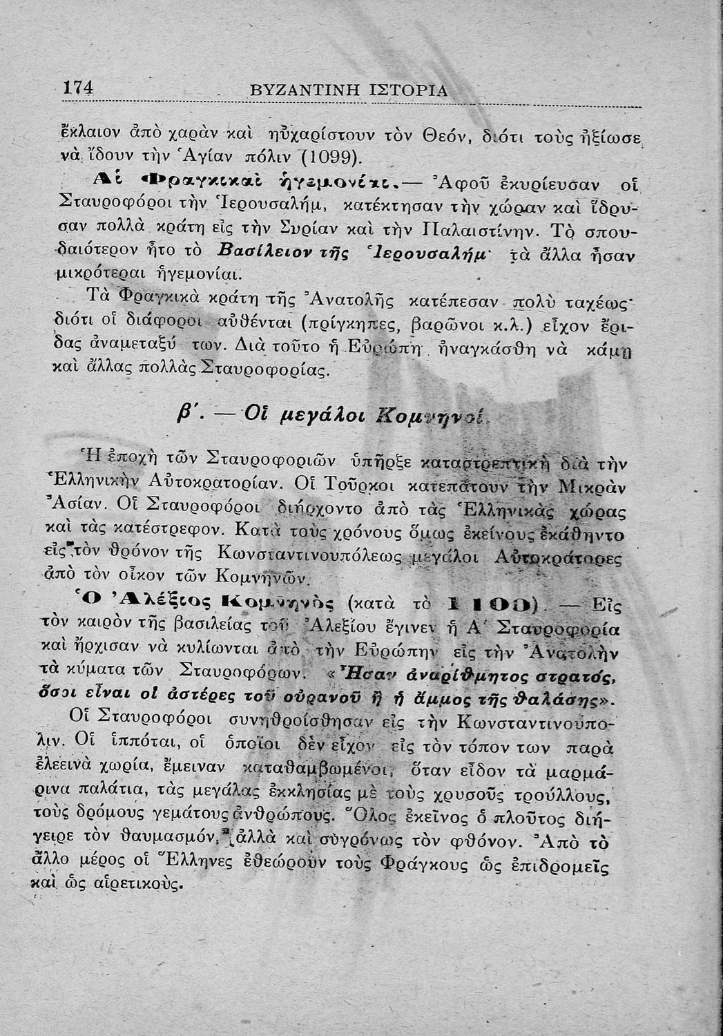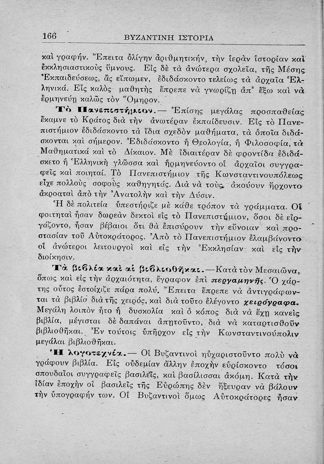 Σχολικό εγχειρίδιο Ιστορίας Β' Ελληνικού Σχολείου που καλύπτει την χρονική περίοδο από τα ελληνιστικά χρόνια, μέχρι την άλωση της Κωνσταντινούπολης από τους Φράγκους. Ο συγγραφέας ήταν Καθηγητής Πανεπιστημίου.