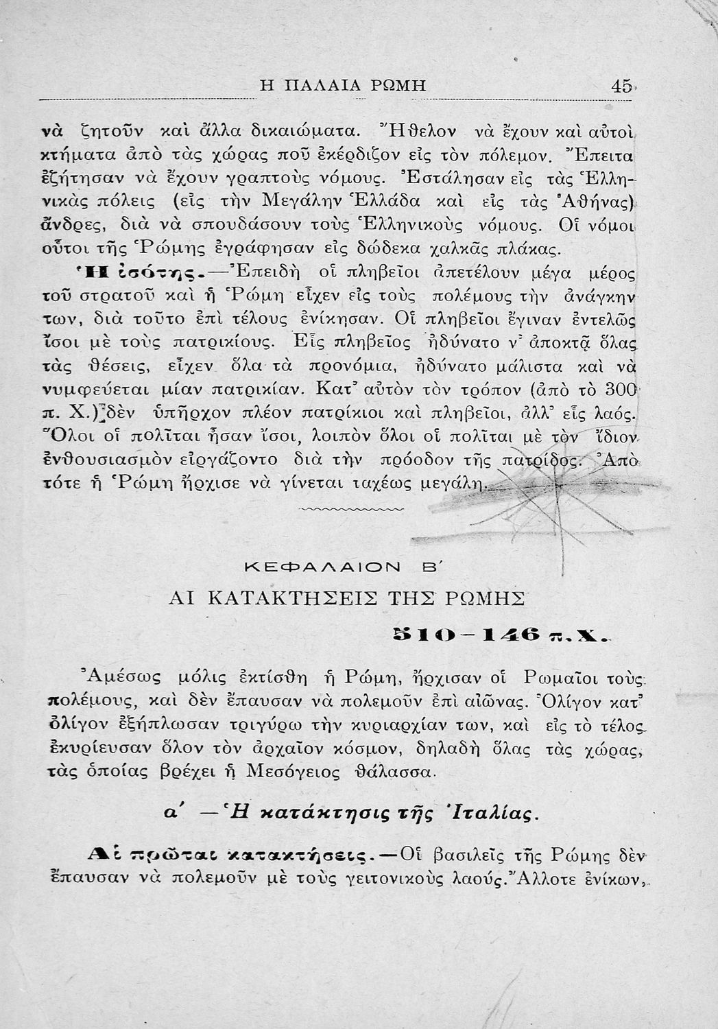 Ελληνική Ιστορία (Ελληνιστικοί-Ρωμαϊκοί και Βυζαντινοί Χρόνοι) δια την Β΄ Τάξιν των Ελληνικών Σχολείων
