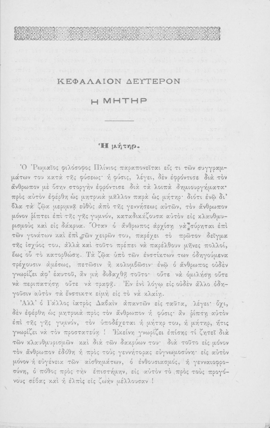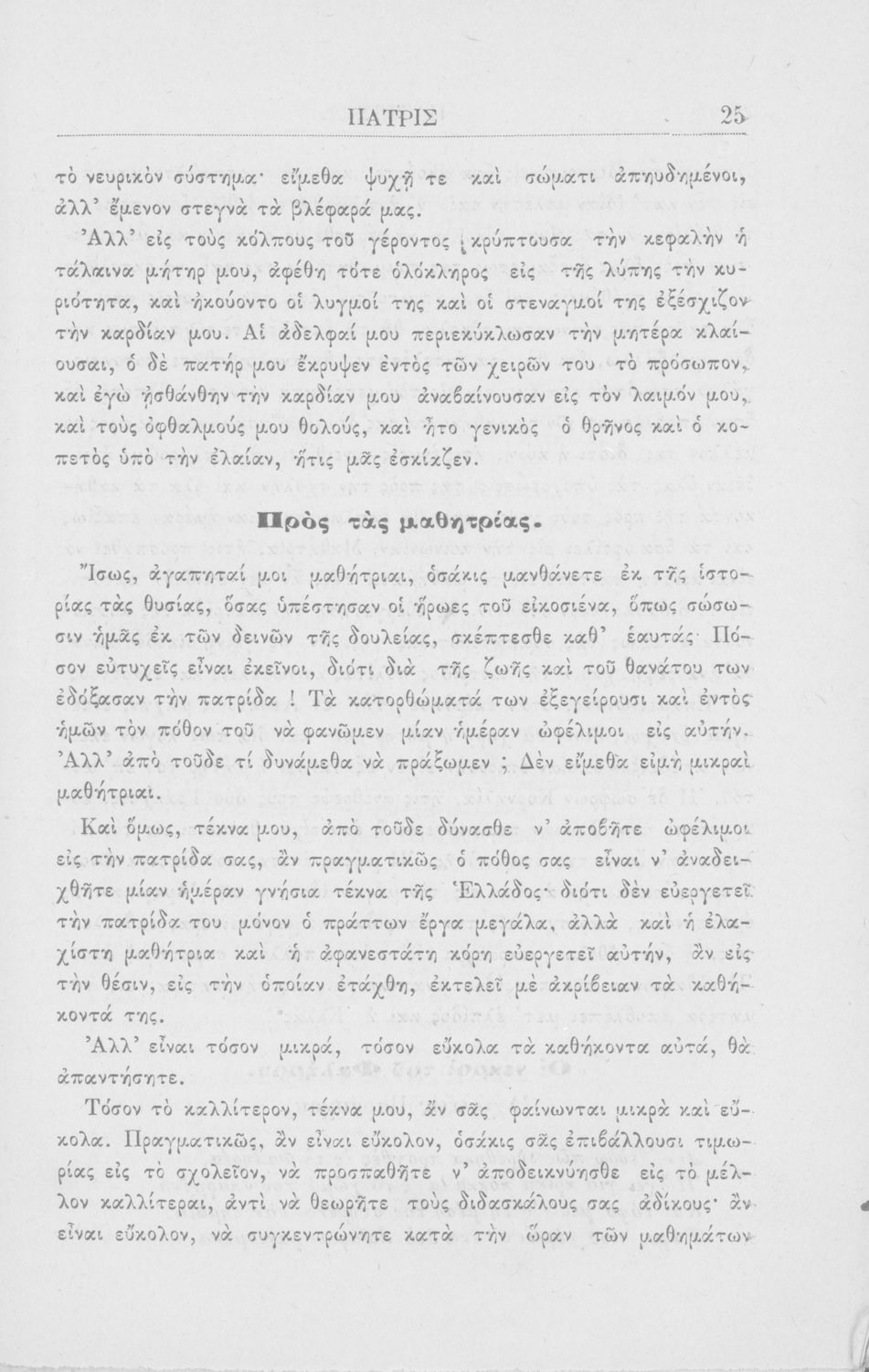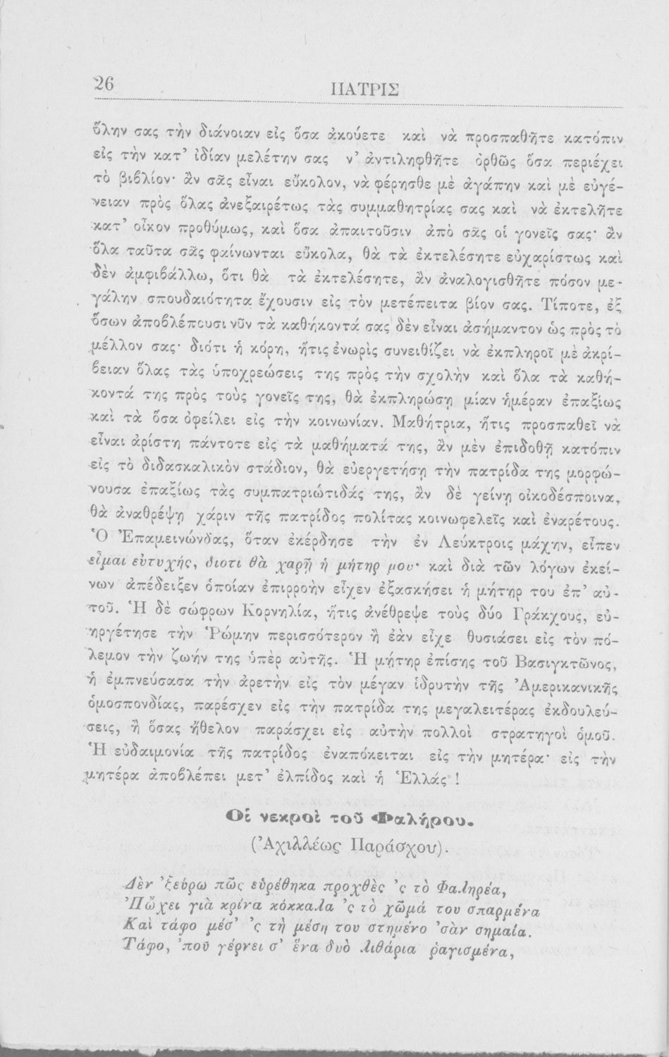 Σχολικό εγχειρίδιο Νέων Ελληνικών για τους μαθητές της Α΄ τάξης του Ελληνικού σχολείου. Περιέχει πεζά και ποιήματα Ελλήνων λογοτεχνών για την εκμάθηση της Ελληνικής γλώσσας. Στο τέλος του βιβλίου υπάρχουν βιογραφικές σημειώσεις των συγγραφέων.