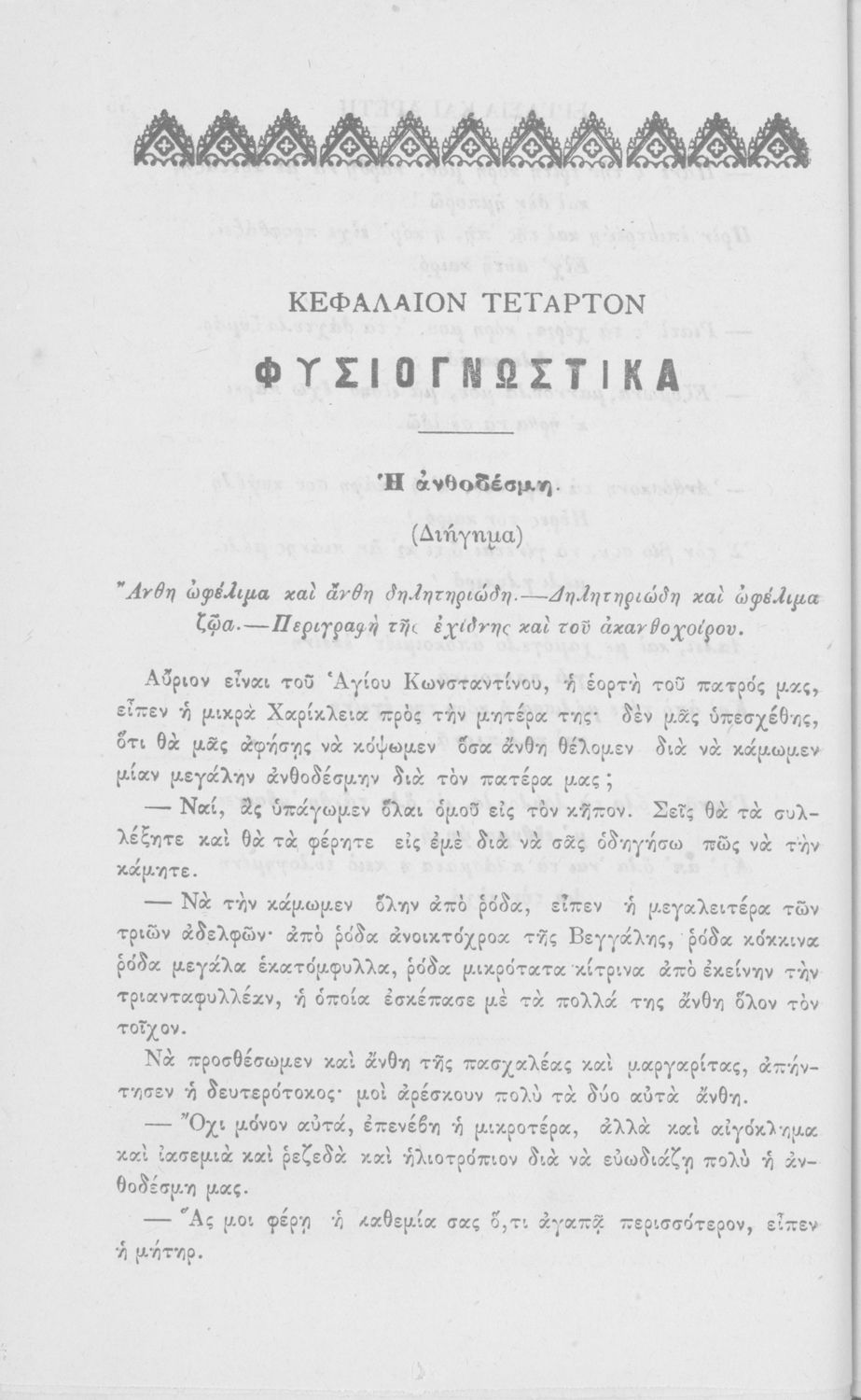 Σχολικό εγχειρίδιο Αρχαίων Ελληνικών για τις Α' Ελληνικού Σχολείου και Παρθεναγωγείου και την Ε΄ Δημοτικού που περιέχει κείμενα στην αρχαία ελληνική εμπνευσμένα από την ελληνική μυθολογία, και γραμματικές, ...