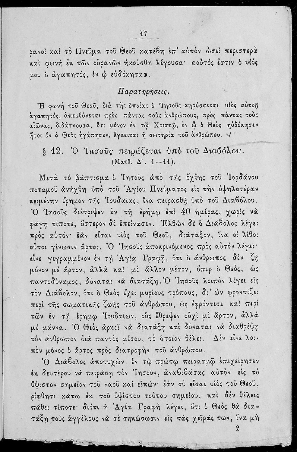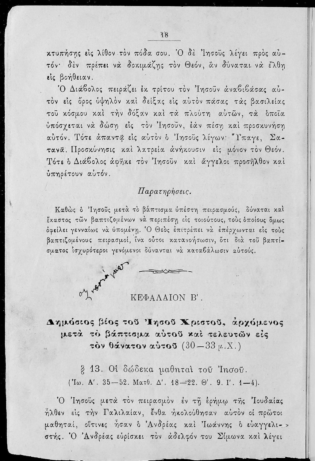 Σχολικό εγχειρίδιο Θρησκευτικών για τα Ελληνικά Σχολεία και τα Παρθεναγωγεία που περιλαμβάνει την ιστορία της Καινής Διαθήκης από τον Ευαγγελισμό της Θεοτόκου μέχρι την ανάληψη του Ιησού Χριστού