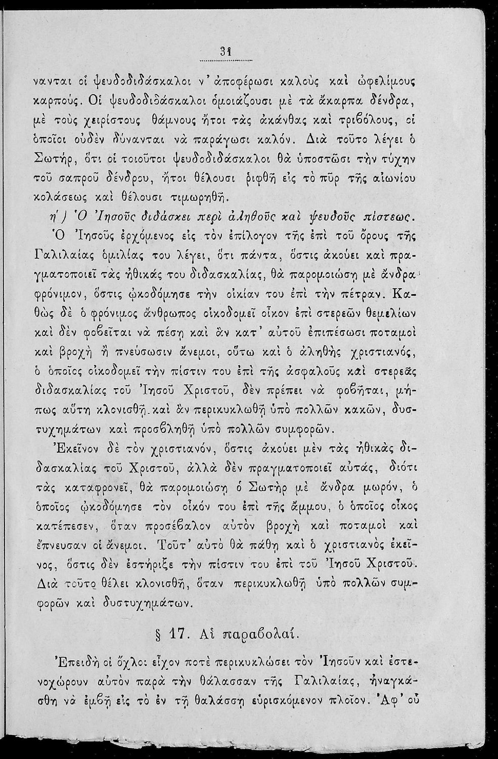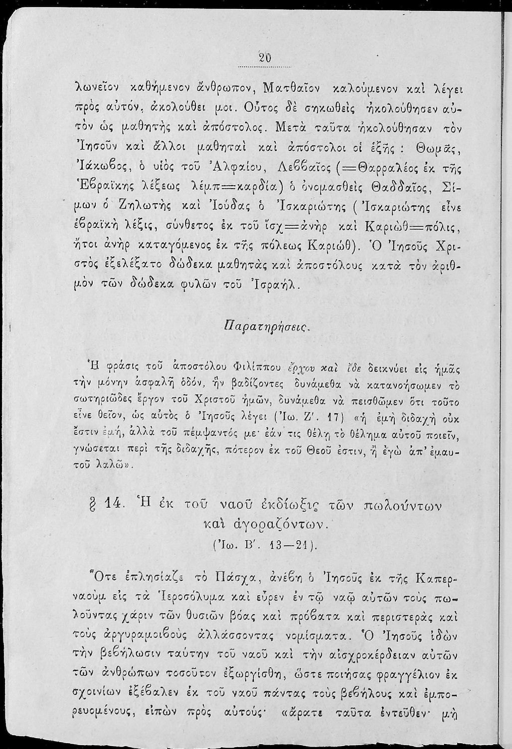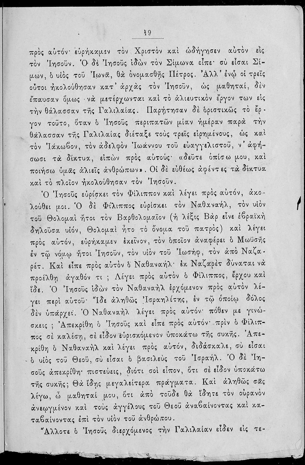 Σχολικό εγχειρίδιο Θρησκευτικών για τα Ελληνικά Σχολεία και τα Παρθεναγωγεία που αποτελεί μια εξιστόρηση της Καινής Διαθήκης από την γέννηση του Ιησού Χριστού ως το έργο των Αποστόλων