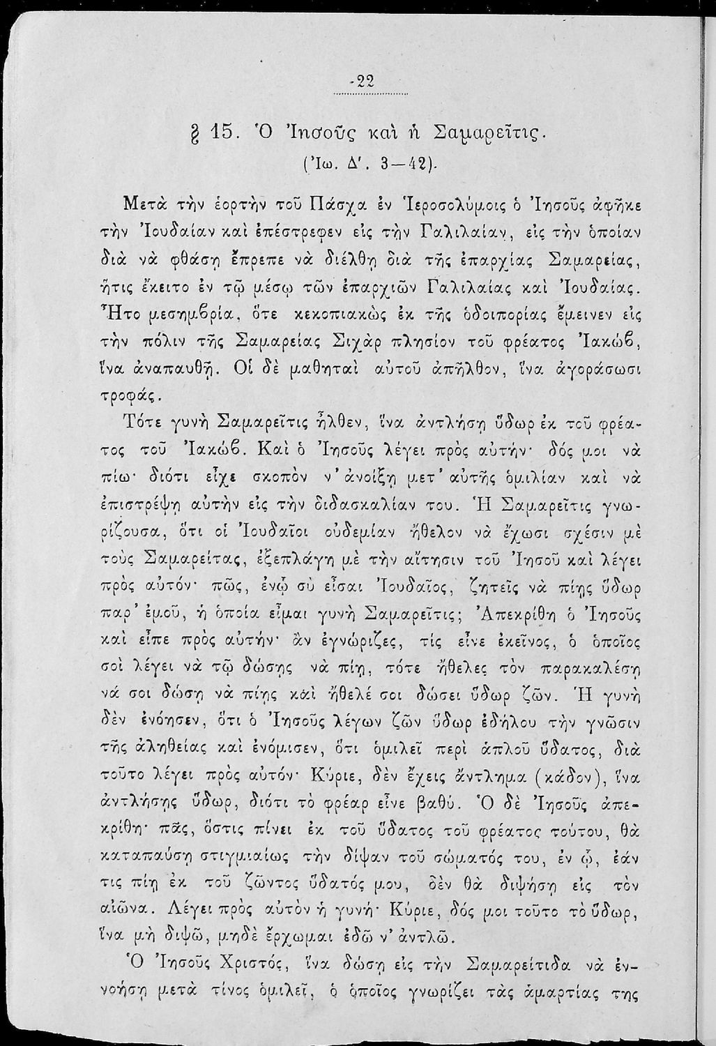 Σχολικό εγχειρίδιο Θρησκευτικών για τα Ελληνικά Σχολεία και Παρθεναγωγεία που συνιστά μία εξιστόρηση της Καινής Διαθήκης από τη γέννηση της Θεοτόκου ως την ανάληψη του Χριστού και τη δράση των Αποστόλων.