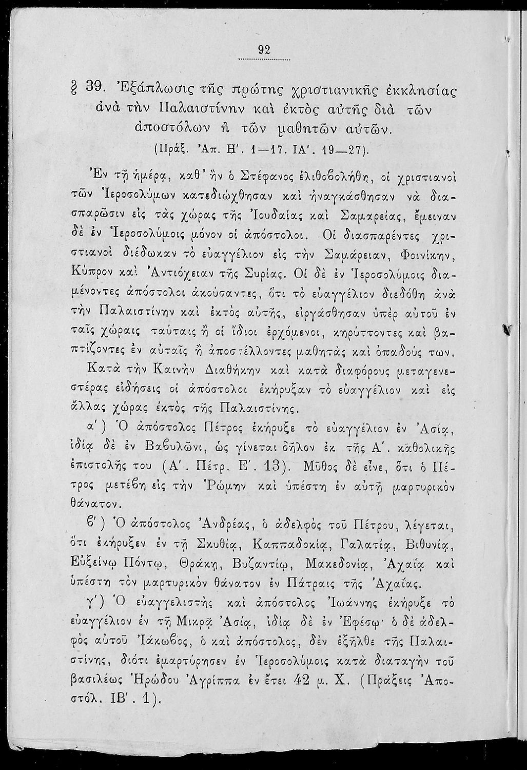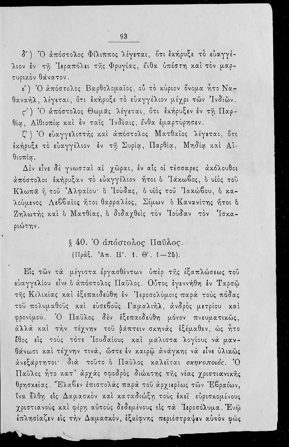 Σχολικό εγχειρίδιο Θρησκευτικών για τα Ελληνικά Σχολεία και τα Παρθεναγωγεία που αποτελεί μια εξιστόρηση της Καινής Διαθήκης από την γέννηση του Ιησού Χριστού ως το έργο των Αποστόλων