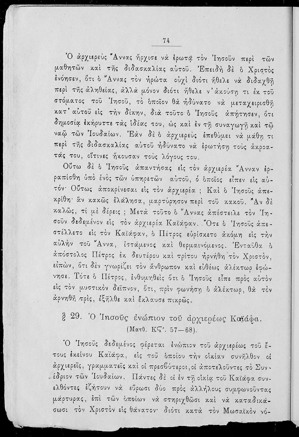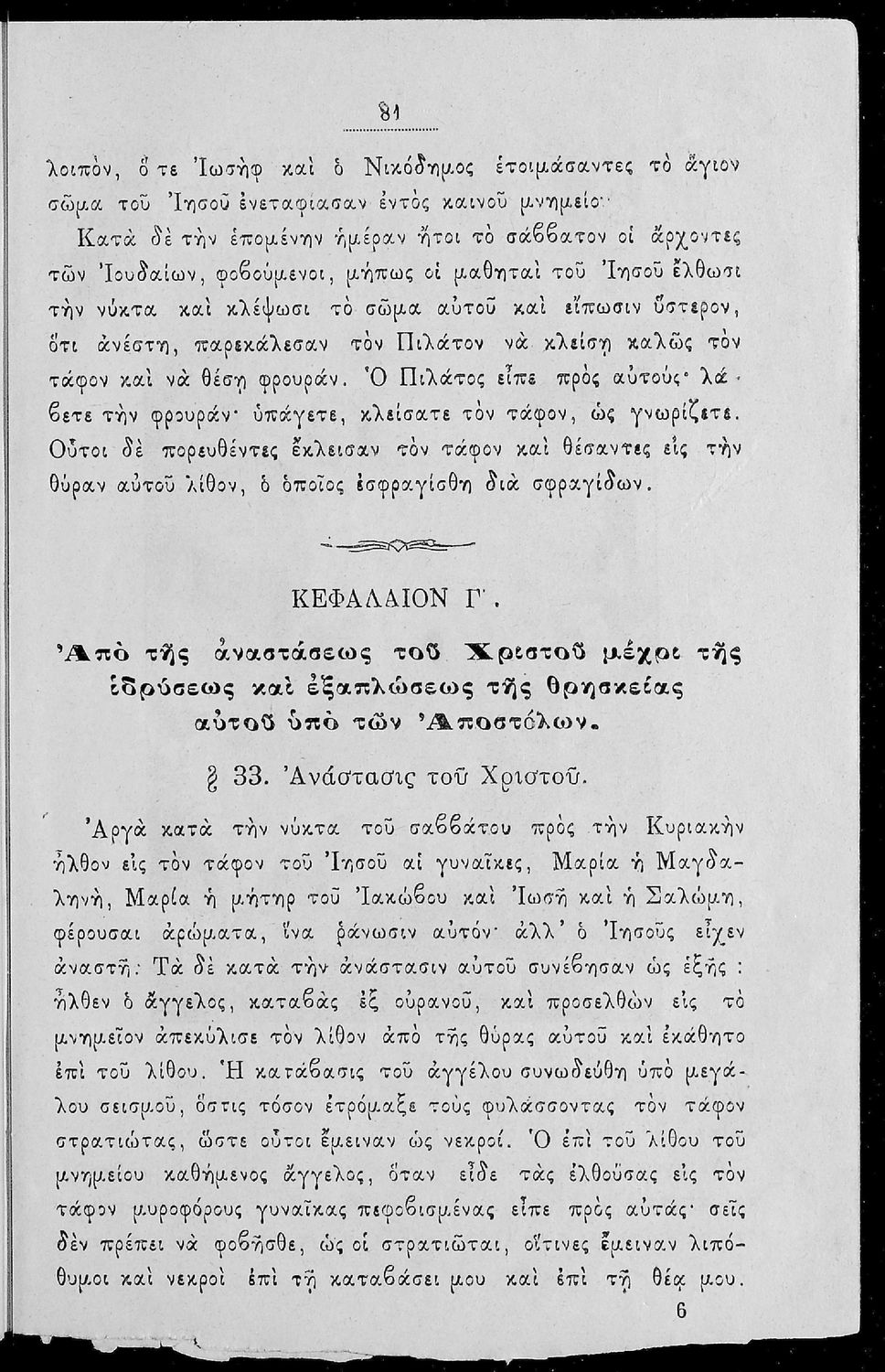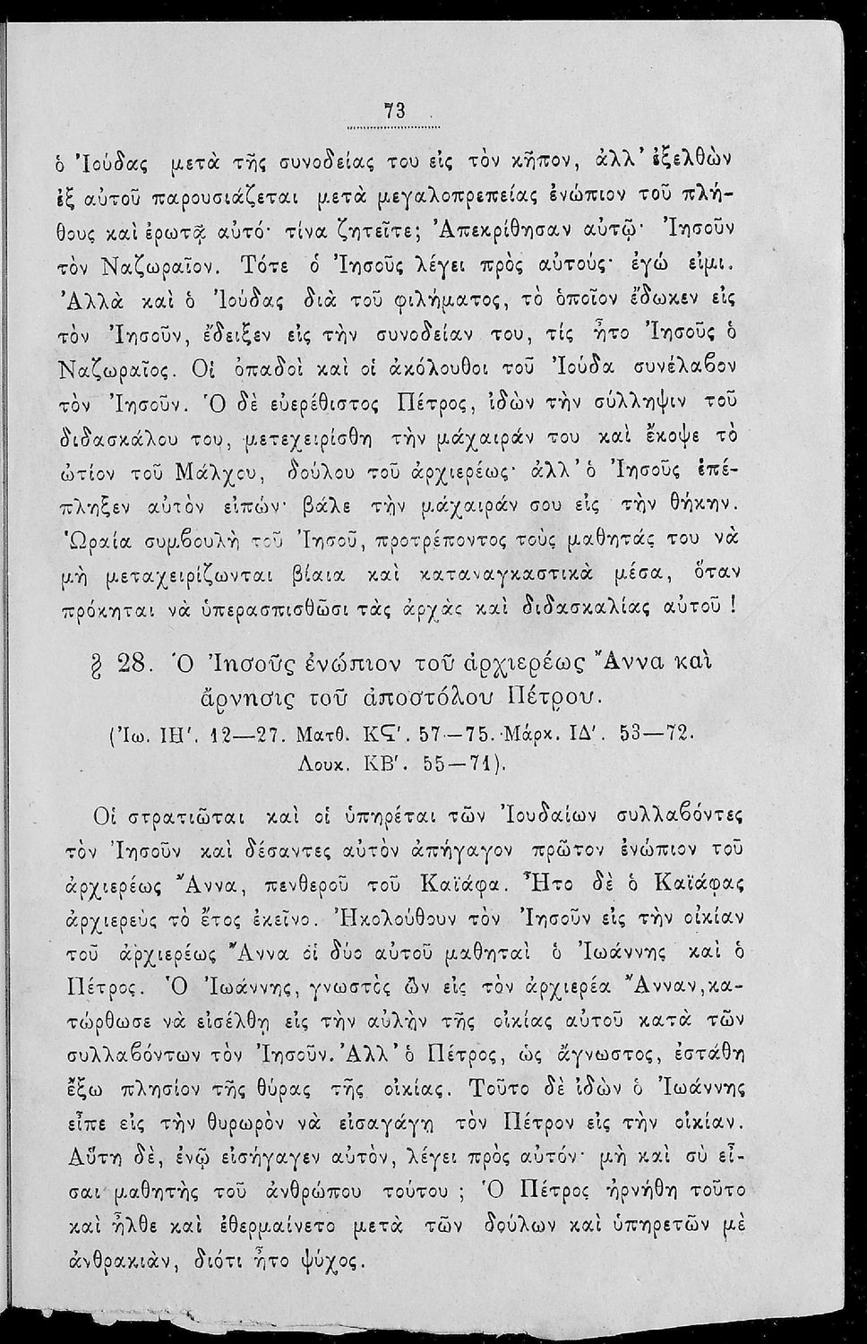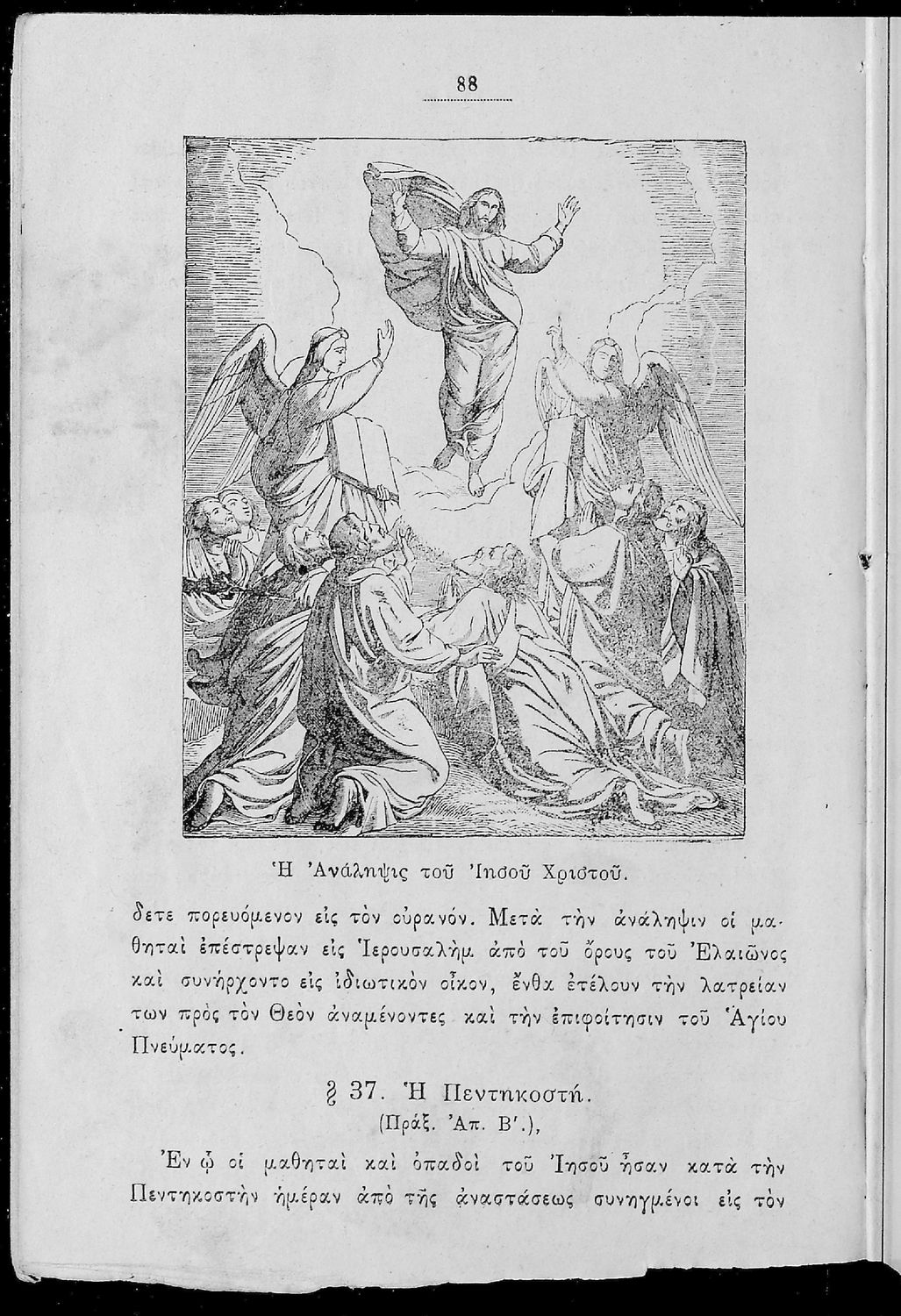 Σχολικό εγχειρίδιο Θρησκευτικών για τα Ελληνικά Σχολεία και τα Παρθεναγωγεία που περιλαμβάνει την ιστορία της Καινής Διαθήκης από τον Ευαγγελισμό της Θεοτόκου μέχρι την ανάληψη του Ιησού Χριστού