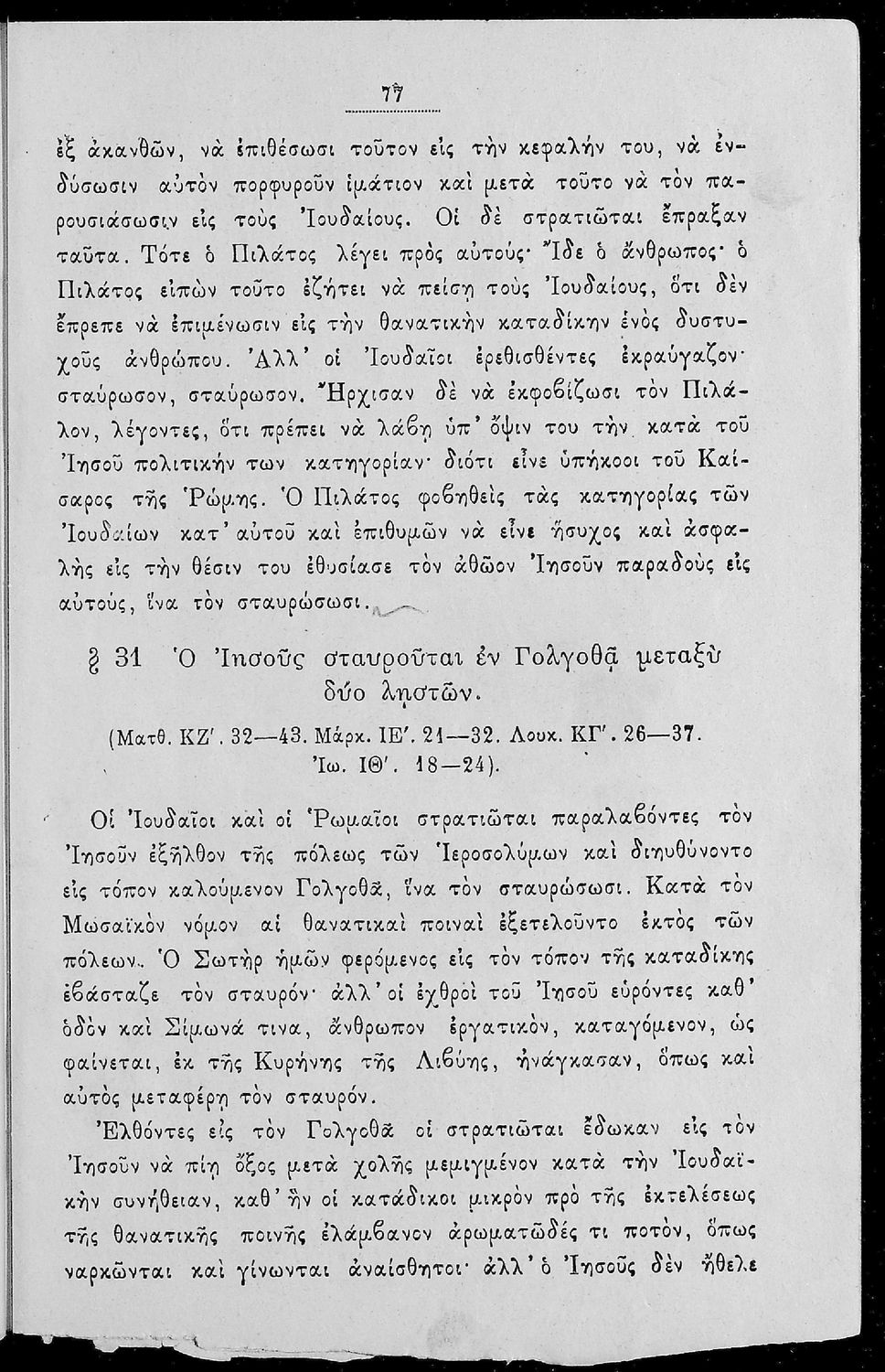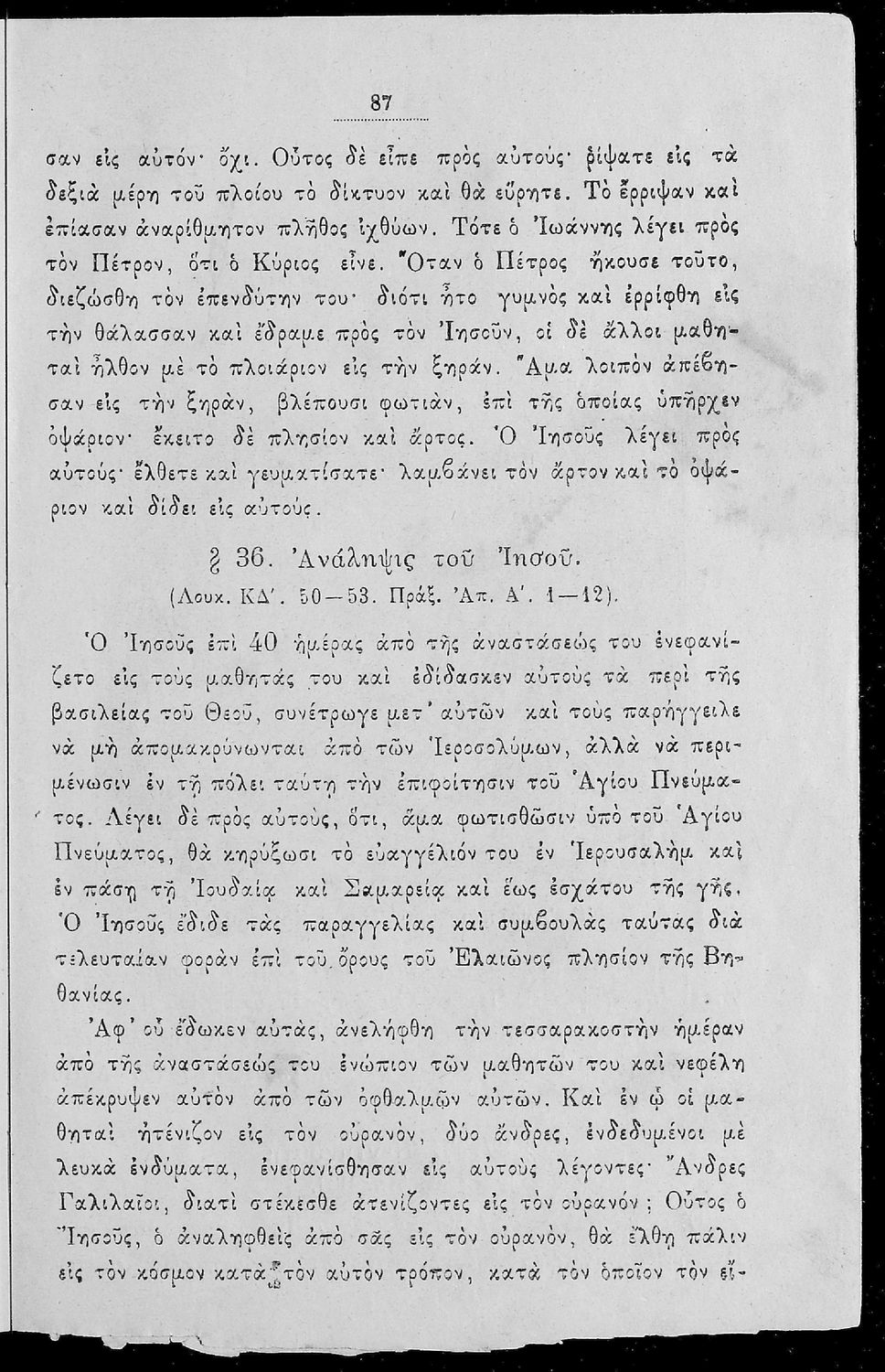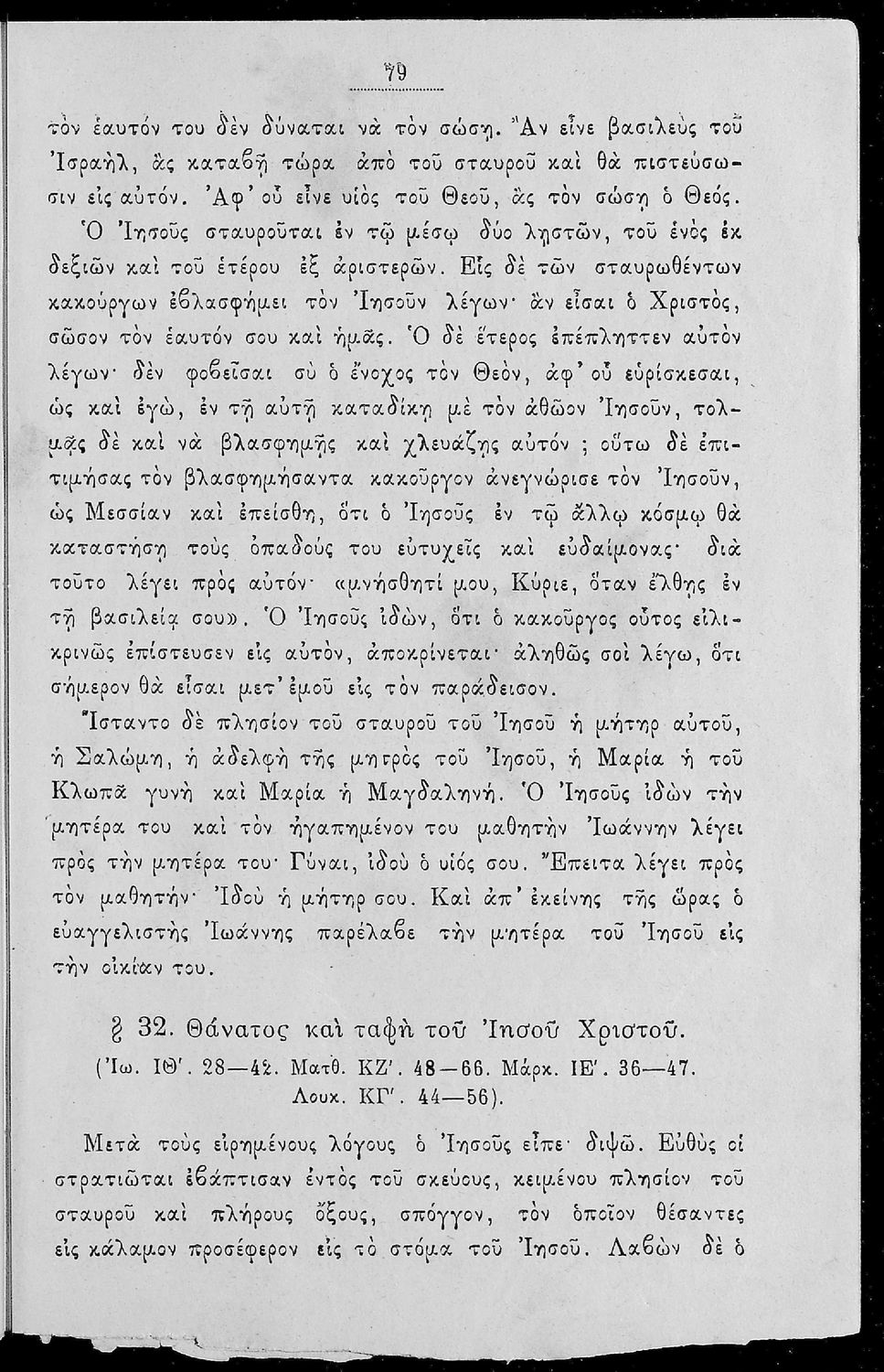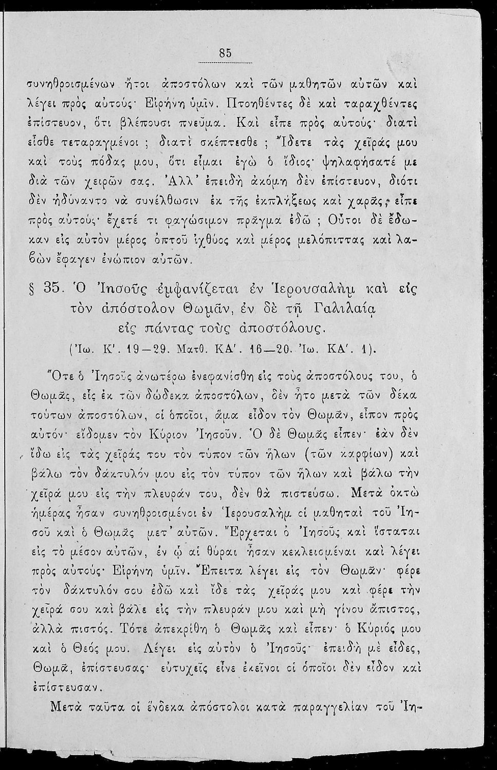 Σχολικό εγχειρίδιο Θρησκευτικών για τα Ελληνικά Σχολεία και τα Παρθεναγωγεία που περιλαμβάνει την ιστορία της Καινής Διαθήκης από τον Ευαγγελισμό της Θεοτόκου μέχρι την ανάληψη του Ιησού Χριστού