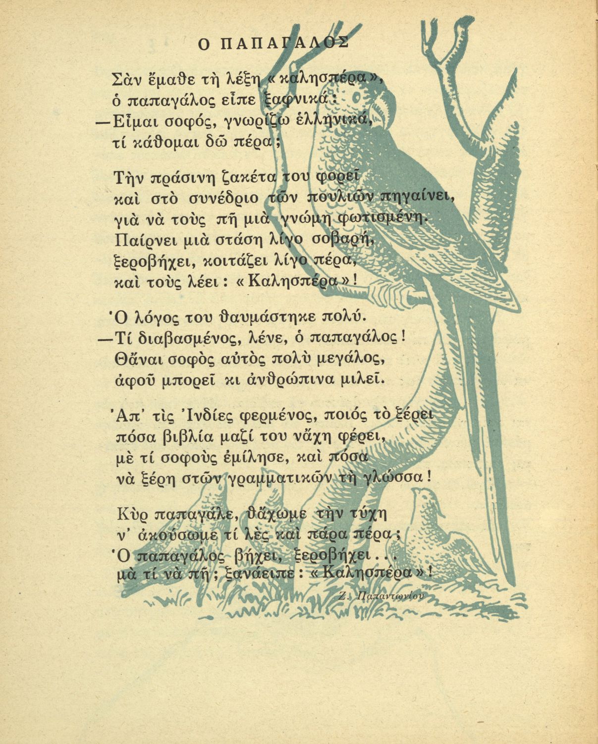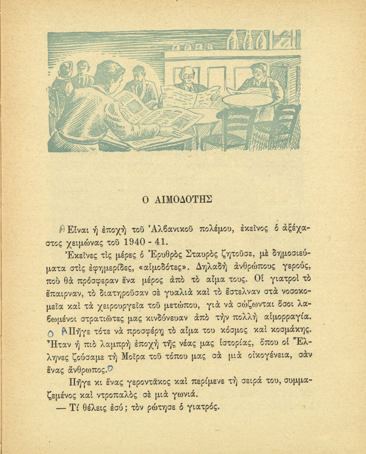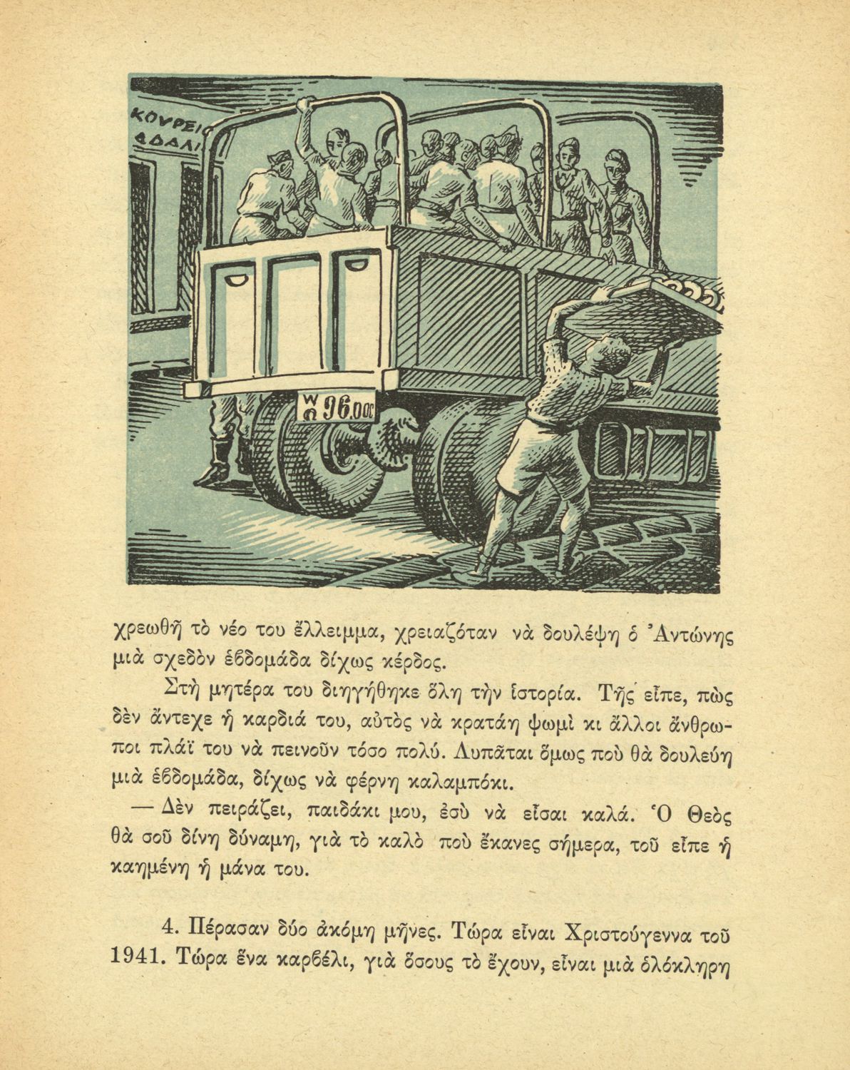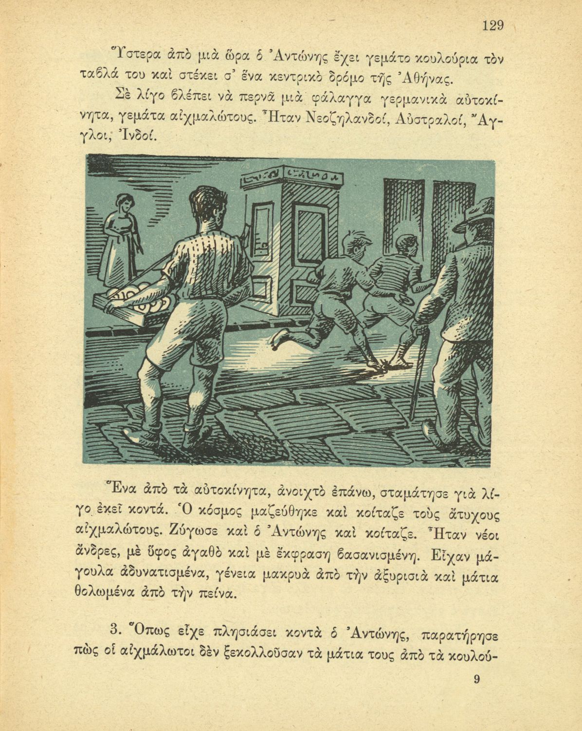 Αναγνωστικό Δ΄ Δημοτικού που περιέχει πεζά και ποιήματα εμπνευσμένα από την ελληνική ιστορία και μυθολογία, την κοινωνική ζωή και την ελληνική φύση.