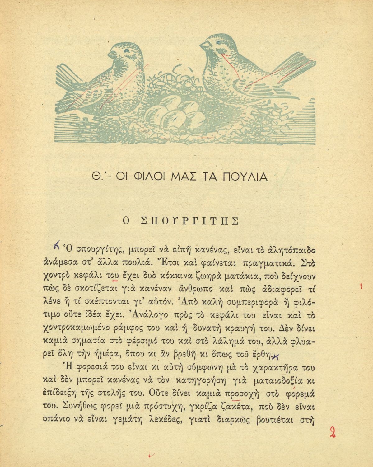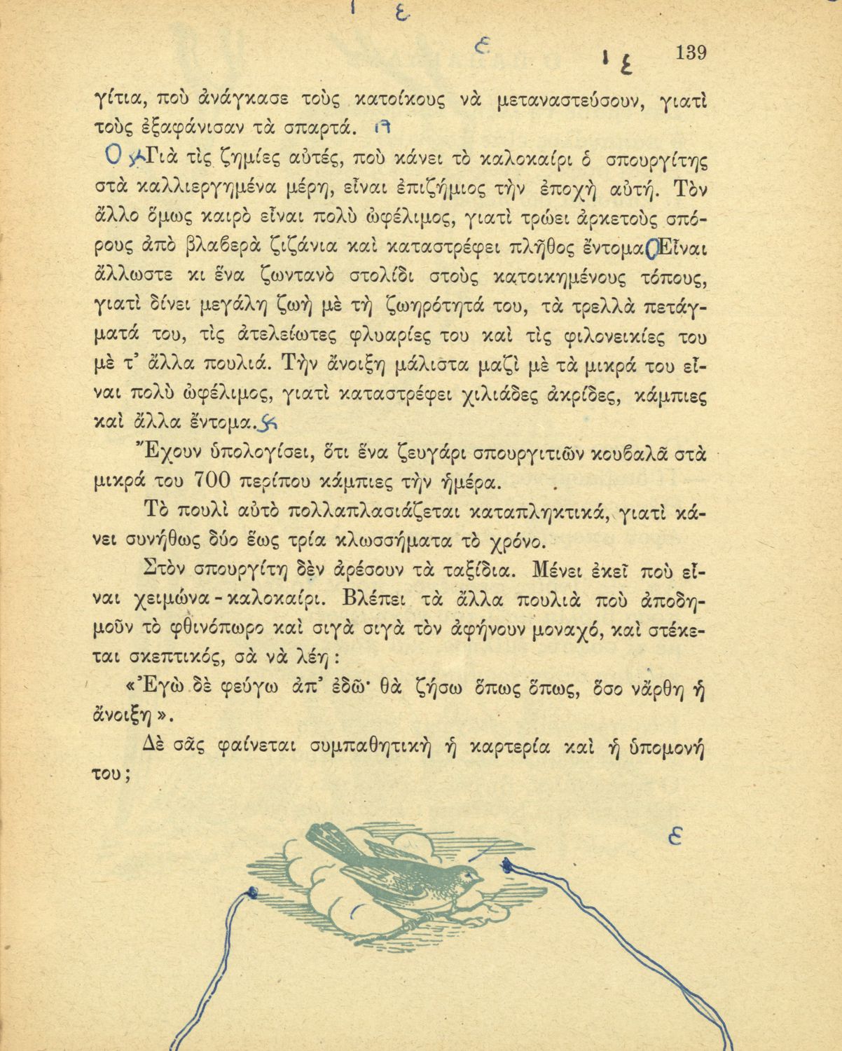 Αναγνωστικό Δ' Δημοτικού που περιέχει πεζά και ποιήματα εμπνευσμένα από τη θρησκευτική, εθνική, κοινωνική και ατομική ζωή, την ελληνική φύση ιστορία και μυθολογία και τις σχέσεις μεταξύ των λαών.