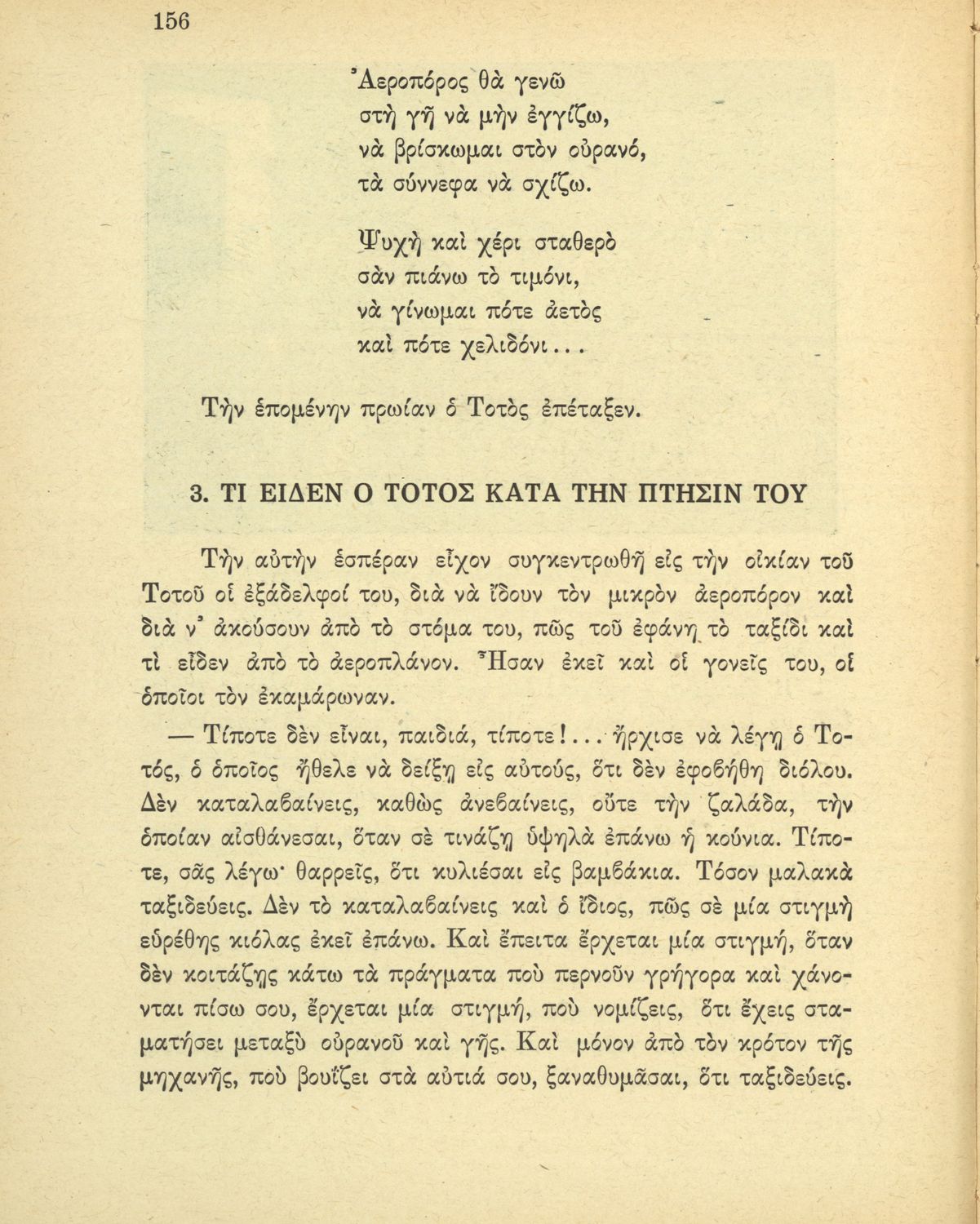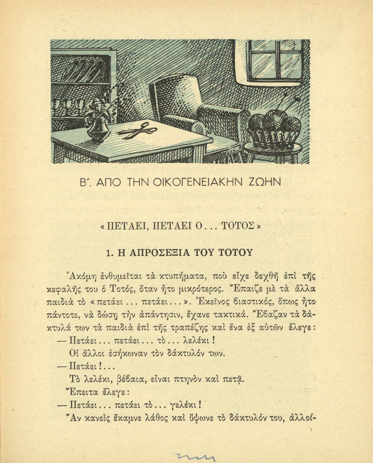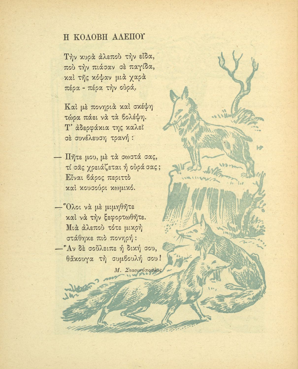 Αναγνωστικό Δ΄ Δημοτικού που περιέχει πεζά και ποιήματα εμπνευσμένα από την ελληνική ιστορία και μυθολογία, την κοινωνική ζωή και την ελληνική φύση.