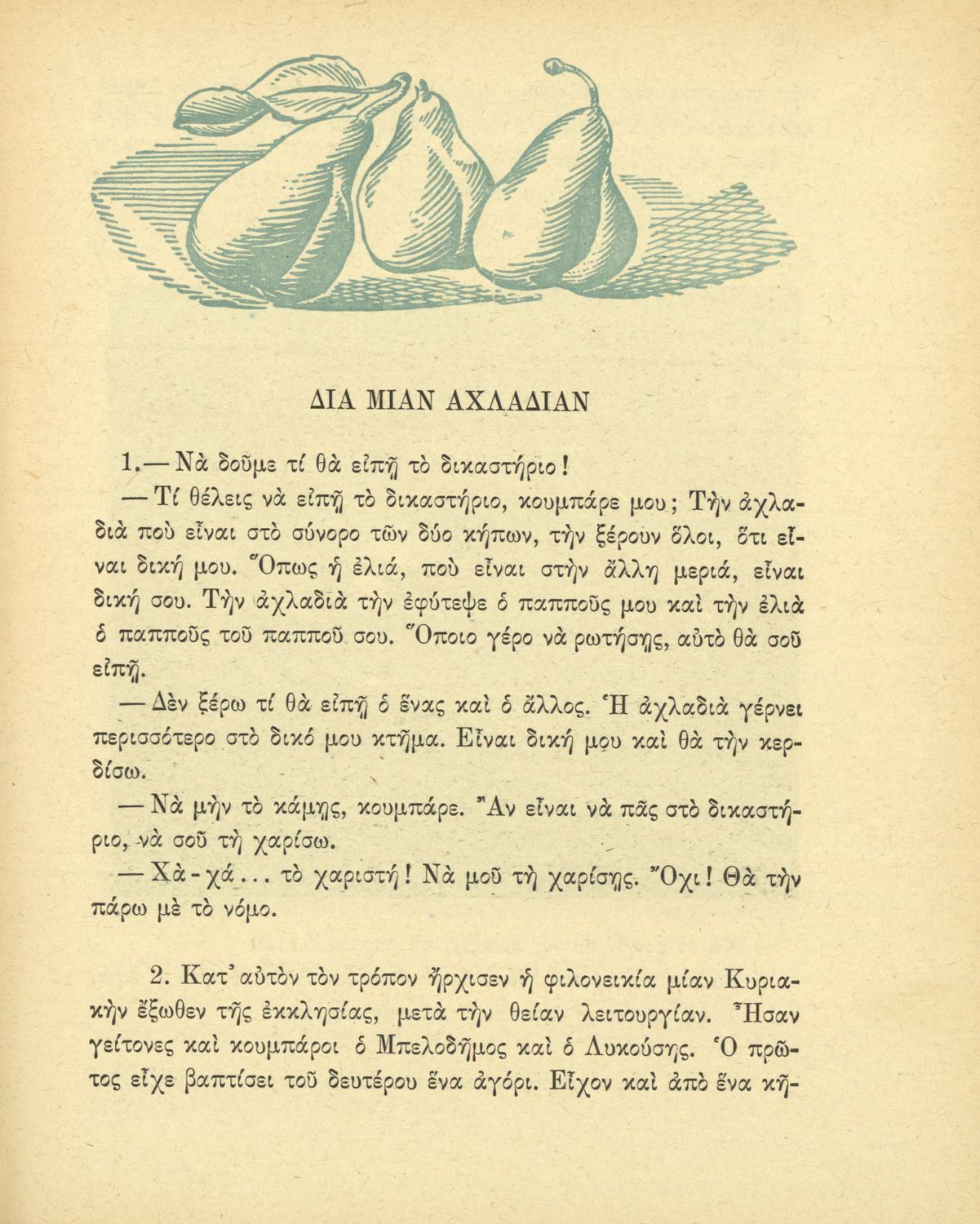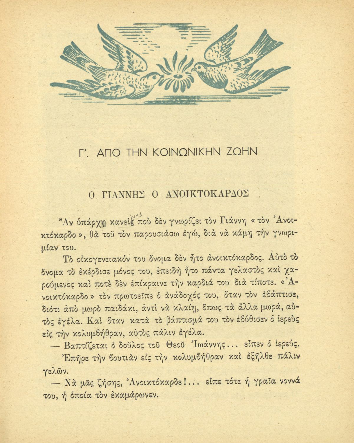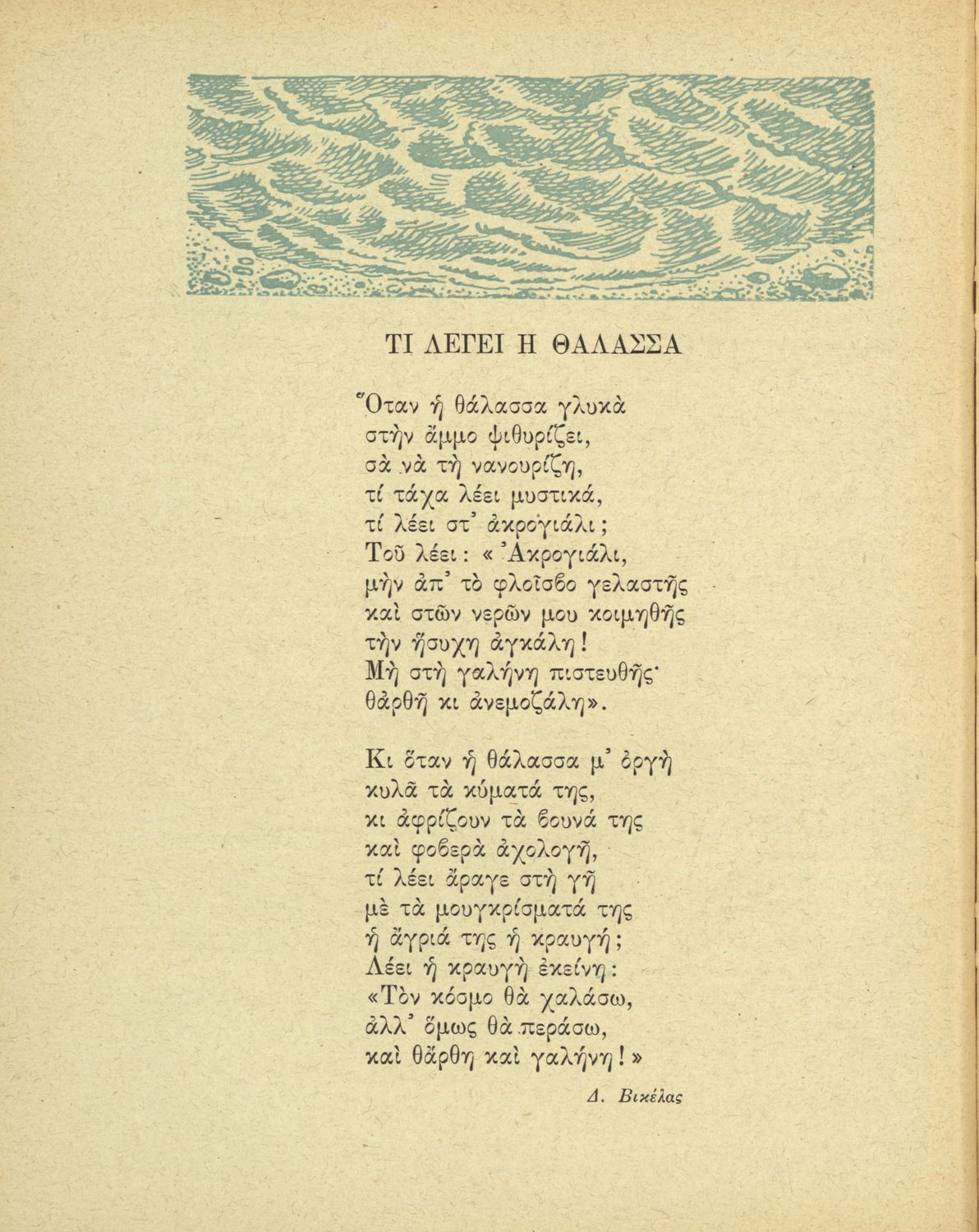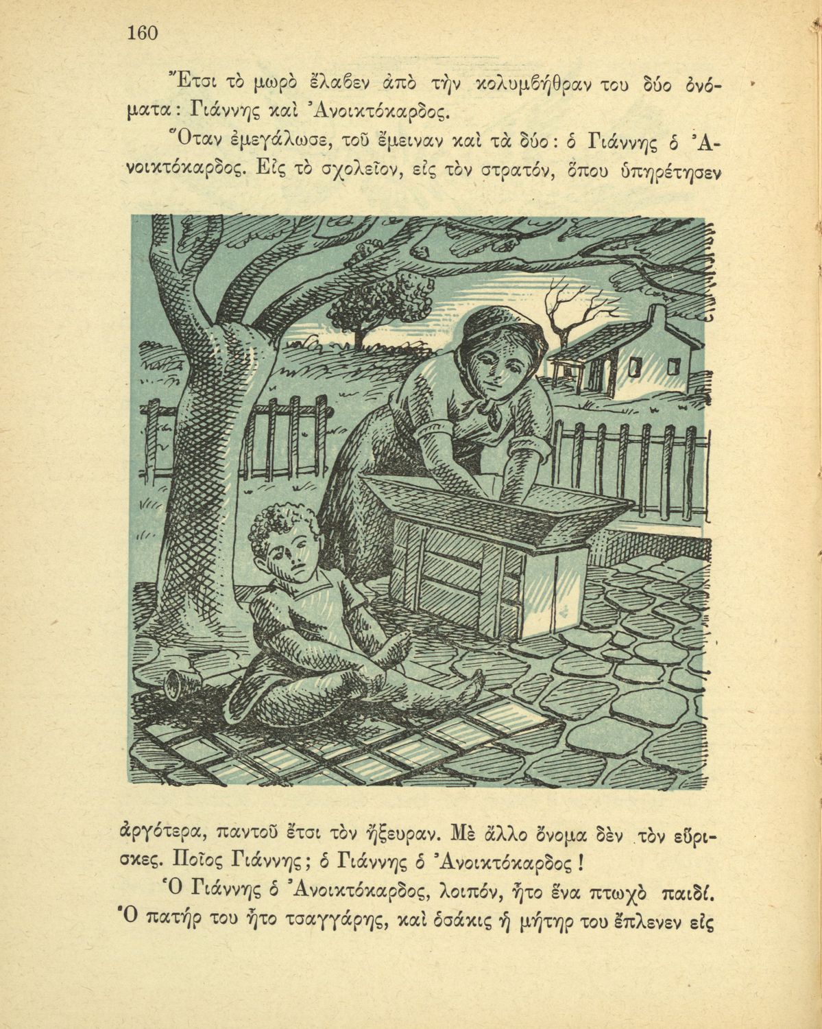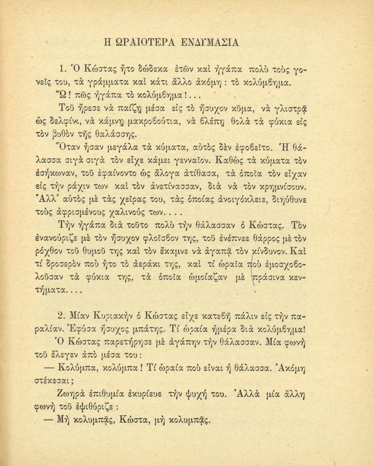 Αναγνωστικό Δ΄ Δημοτικού που περιέχει πεζά και ποιήματα εμπνευσμένα από την ελληνική ιστορία και μυθολογία, την κοινωνική ζωή και την ελληνική φύση.