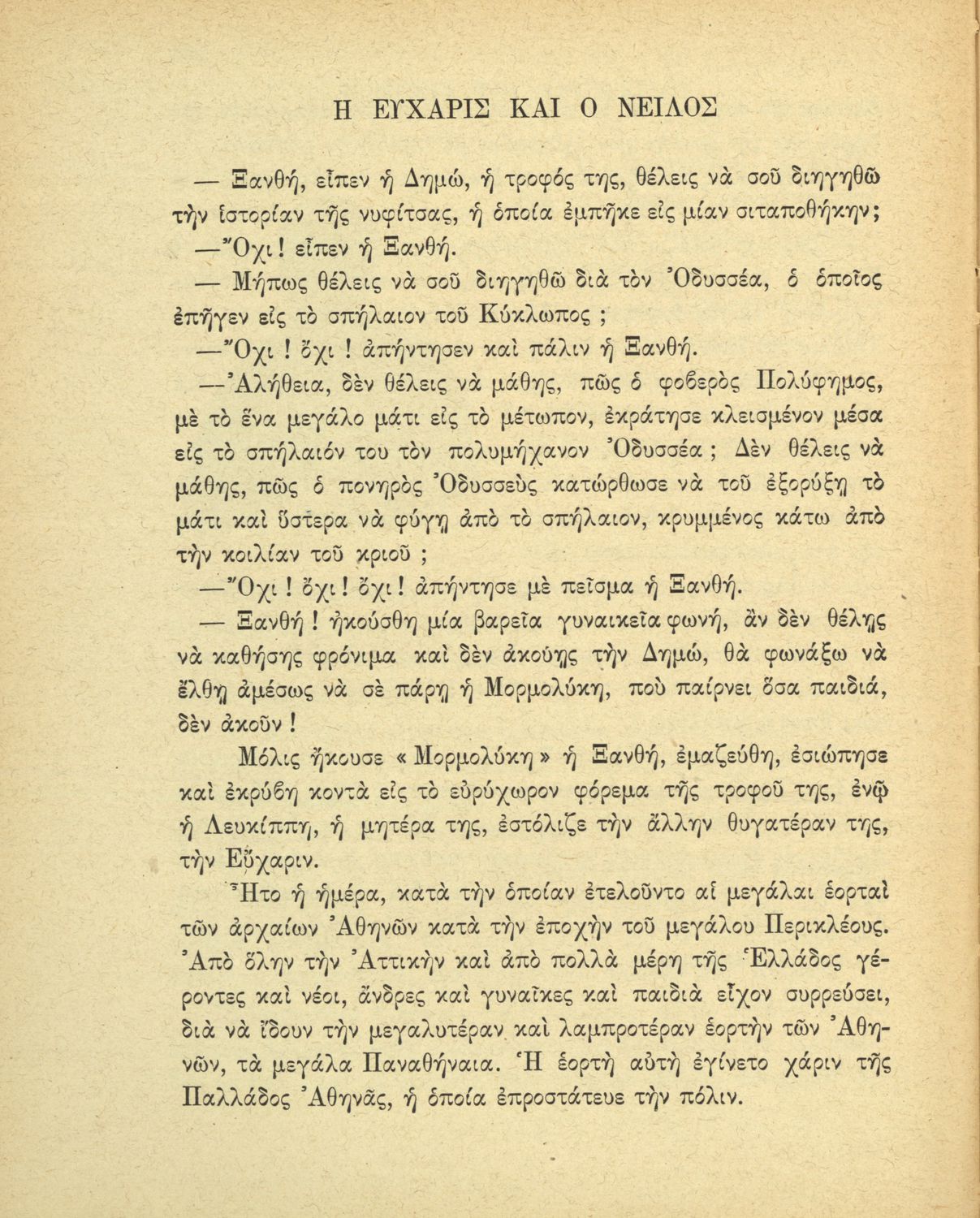 Αναγνωστικό Δ΄ Δημοτικού που περιέχει πεζά και ποιήματα εμπνευσμένα από την ελληνική ιστορία και μυθολογία, την κοινωνική ζωή και την ελληνική φύση.
