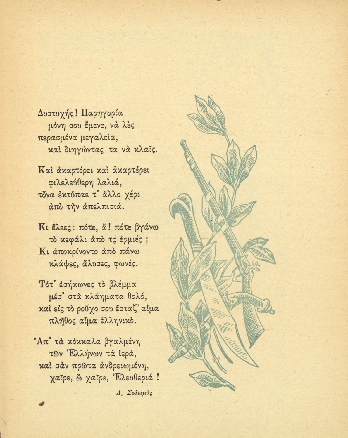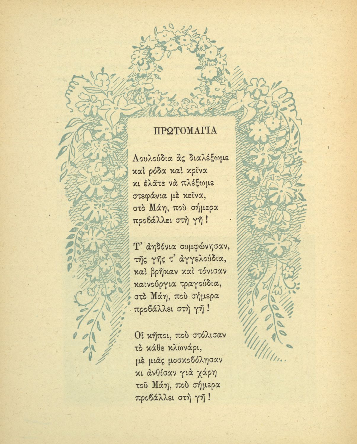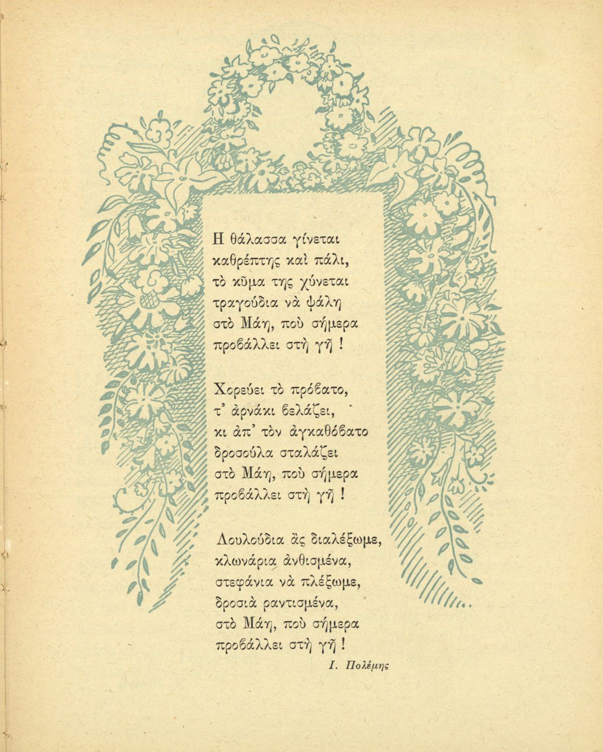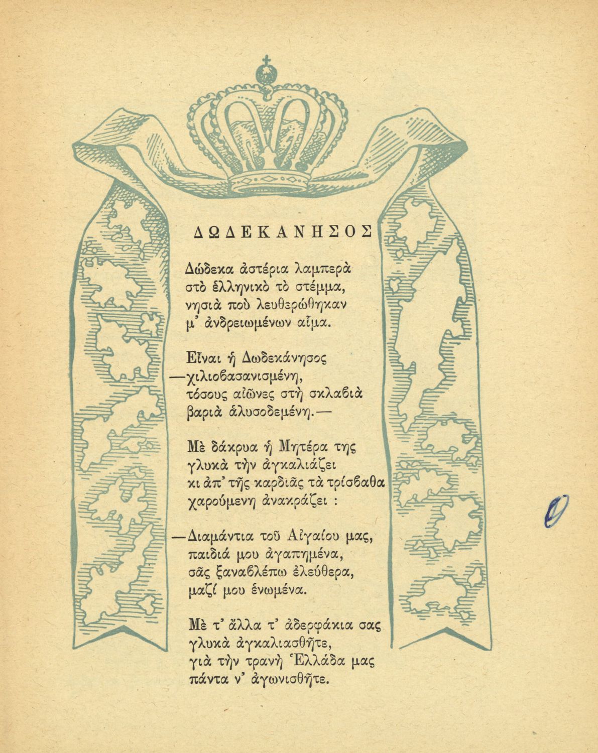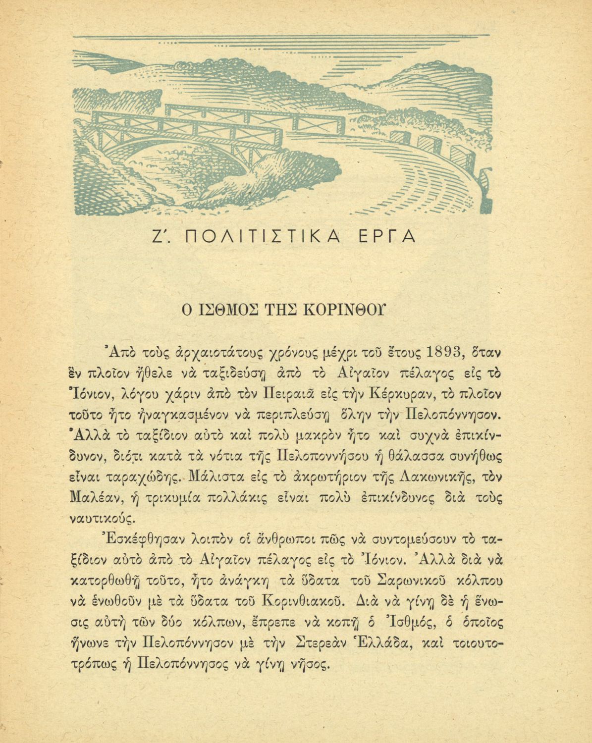 Αναγνωστικό Δ΄ Δημοτικού που περιέχει πεζά και ποιήματα εμπνευσμένα από την ελληνική ιστορία και μυθολογία, την κοινωνική ζωή και την ελληνική φύση.