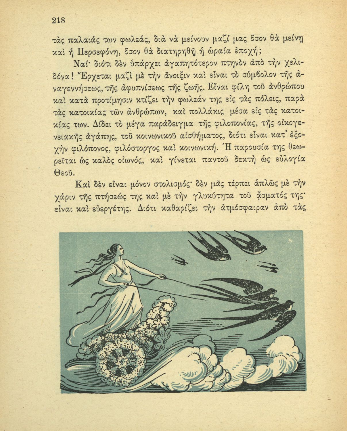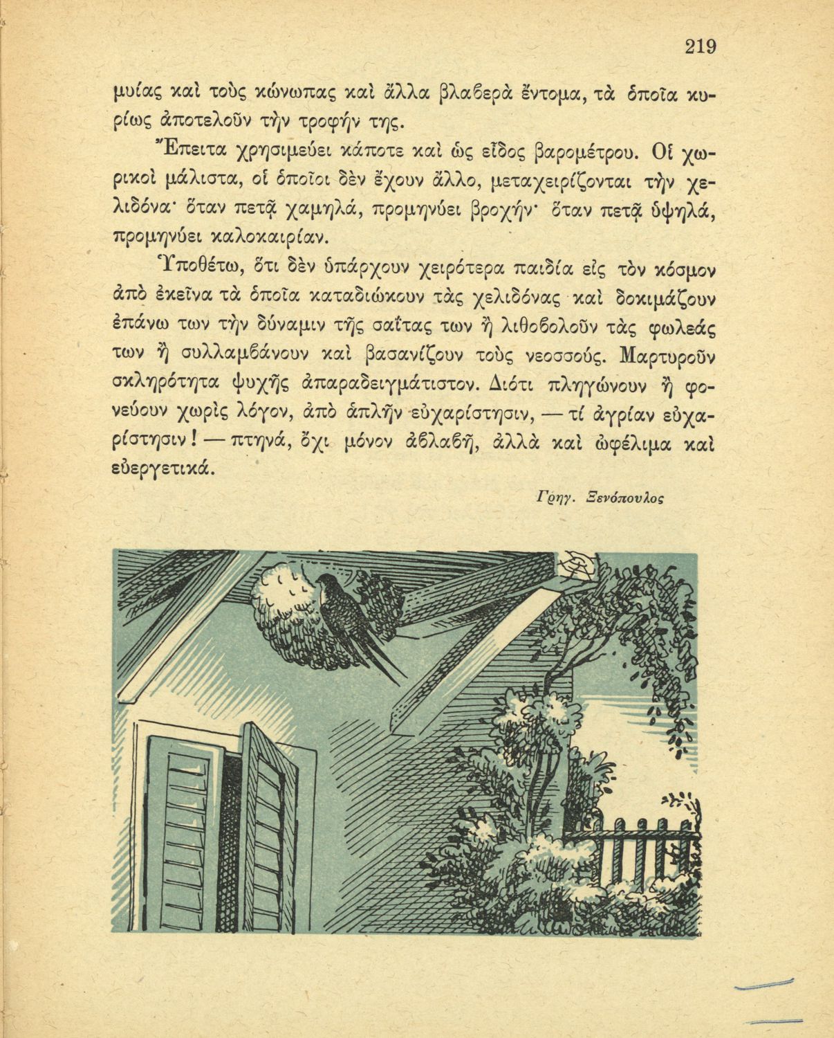 Αναγνωστικό Δ' Δημοτικού που περιέχει πεζά και ποιήματα εμπνευσμένα από τη θρησκευτική, εθνική, κοινωνική και ατομική ζωή, την ελληνική φύση ιστορία και μυθολογία και τις σχέσεις μεταξύ των λαών.
