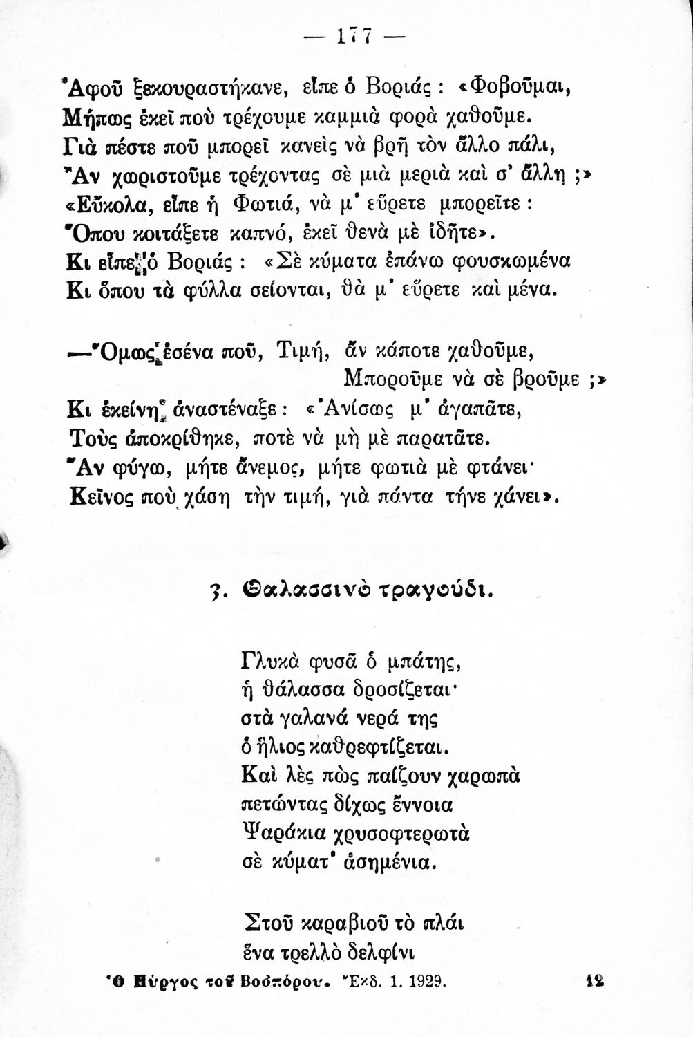Αναγνωστικό Ε΄ Δημοτικού που περιέχει πεζά και ποιήματα εμπνευσμένα από τη θρησκευτική, εθνική, κοινωνική ζωή καθώς και από τις ασχολίες των Ελλήνων, την αρχαία και σύγχρονη ελληνική ιστορία και τον πολιτισμό.