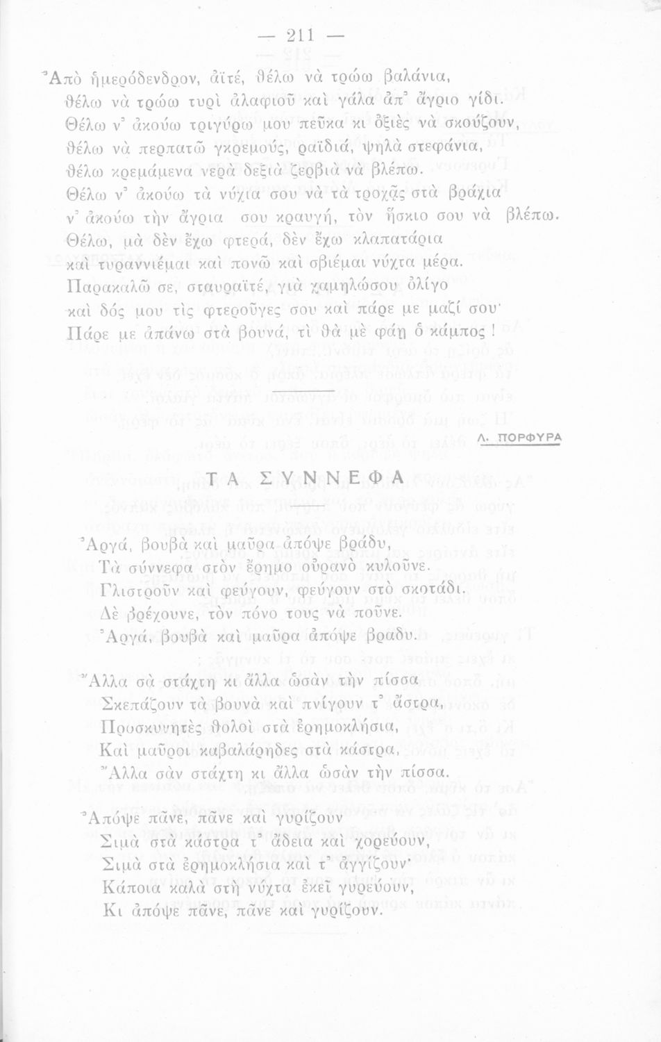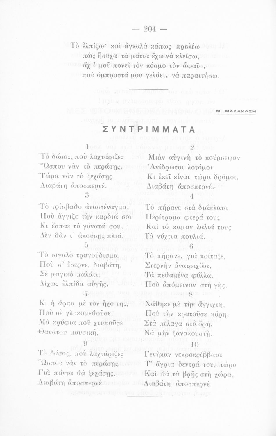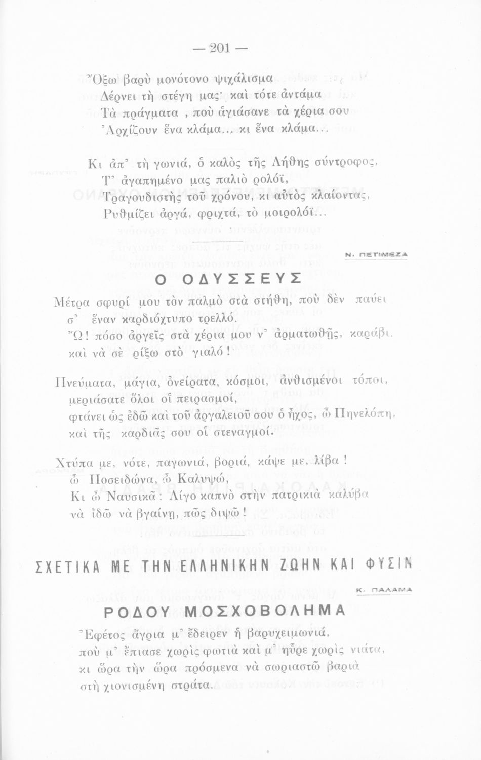 Σχολικό εγχειρίδιο για την Β΄ Γυμνασίου και την Γ΄ Αστικού Θηλέων για το μάθημα των Νέων Ελληνικών. Το εγχειρίδιο αποτελείται από κείμενα πεζού λόγου, επικολυρικά ποιήματα, ωδές, ηθογραφικά διηγήματα, ρητορικά