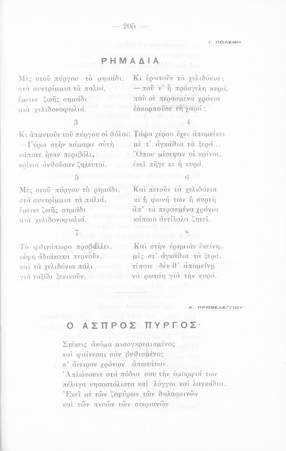 Σχολικό εγχειρίδιο Νέων Ελληνικών Β΄ Τετραταξίου Γυμνασίου και Γ΄ Αστικού Σχολείου Θηλέων που περιλαμβάνει ποιήματα και πεζά Ελλήνων συγγραφέων εμπνευσμένα από την σύγχρονη ελληνική ιστορία. Περιέχει και ...