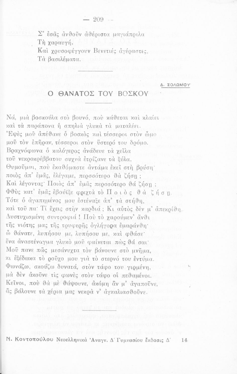 Σχετιζόμενοι όροι:  Λάμπρος, Σολωμός, Κάλβος, Κοραής, Παλαμάς