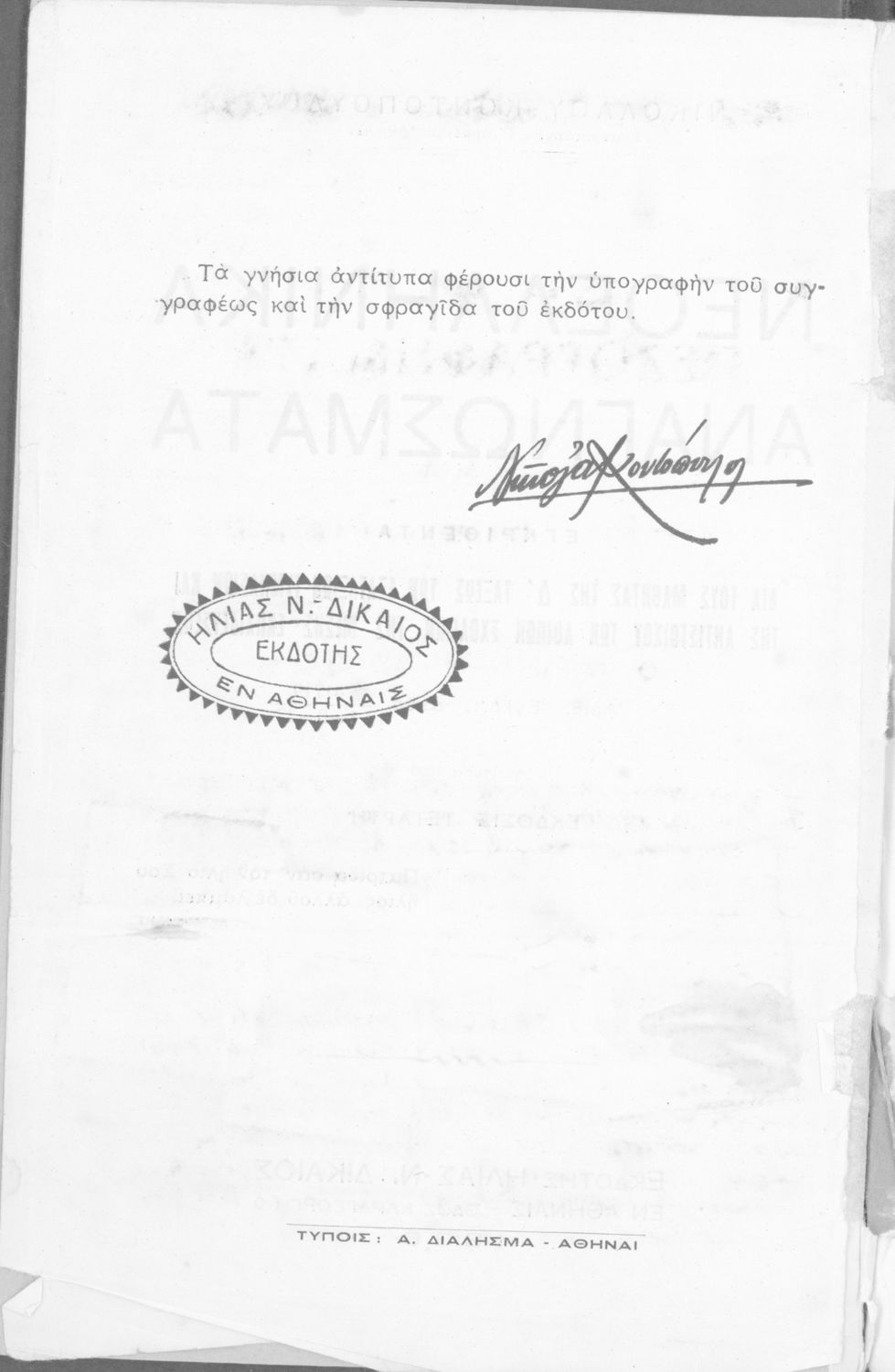 Νεοελληνικά αναγνώσματα διά τους μαθητάς της Δ΄ τάξεως των Εξαταξίων Γυμνασίων και της αντιστοίχου των λοιπών της Μέσης Εκπαιδεύσεως
