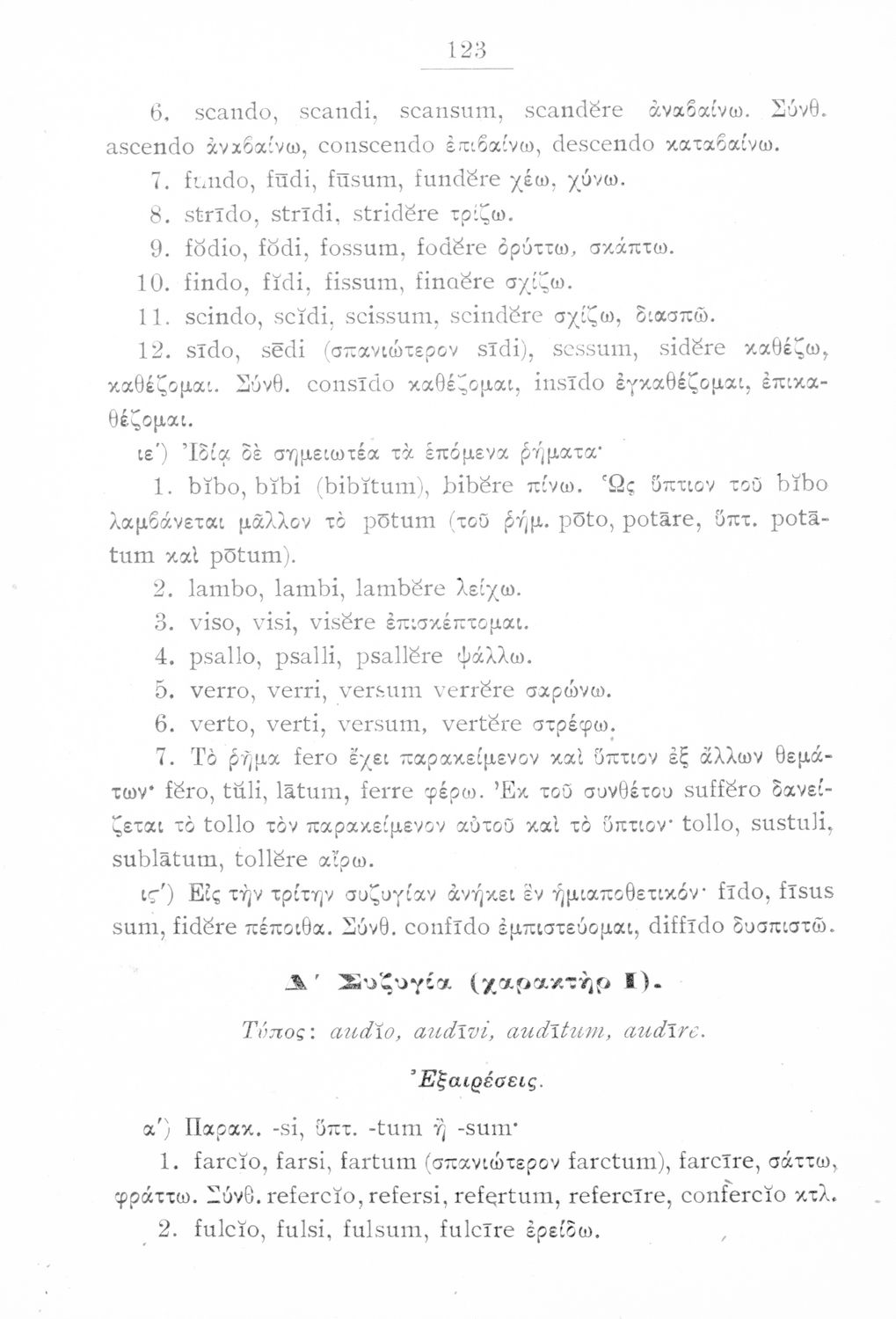 Σχολικό εγχειρίδιο Λατινικών Α΄, Β΄, Γ' Γυμνασίου που περιλαμβάνει γραμματική και συντακτικό και είναι χωρισμένο σε φθογγολογικό, τυπολογικό και ετυμολογικό μέρος.