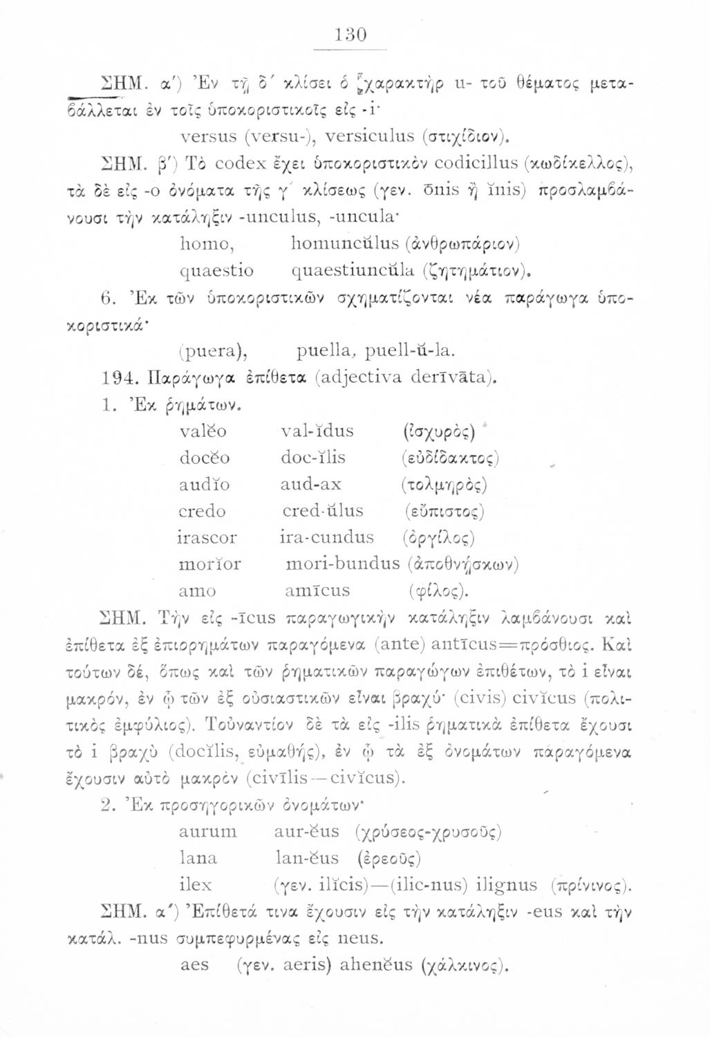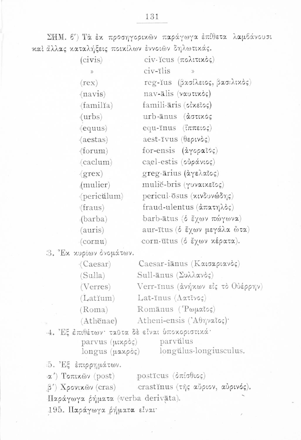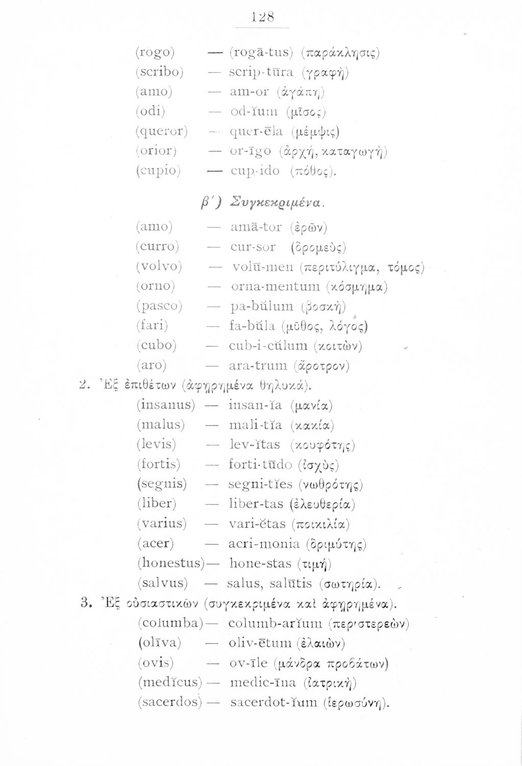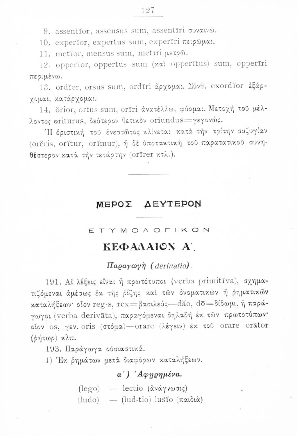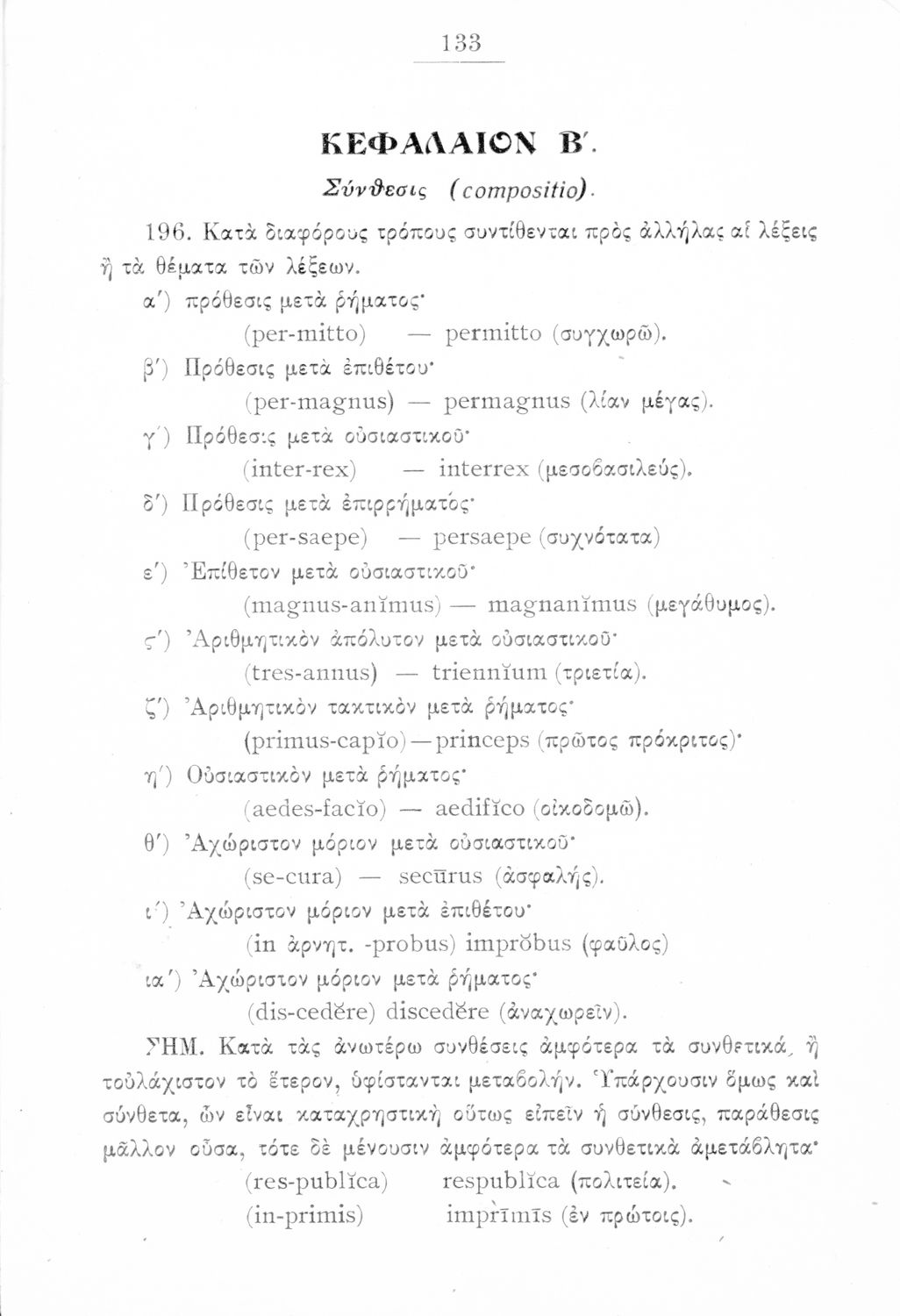 Σχολικό εγχειρίδιο Λατινικών που περιλαμβάνει τη γραμματική της λατινικής και είναι χωρισμένο στο τεχνολογικό, το τυπολογικό και το ετυμολογικό μέρος.