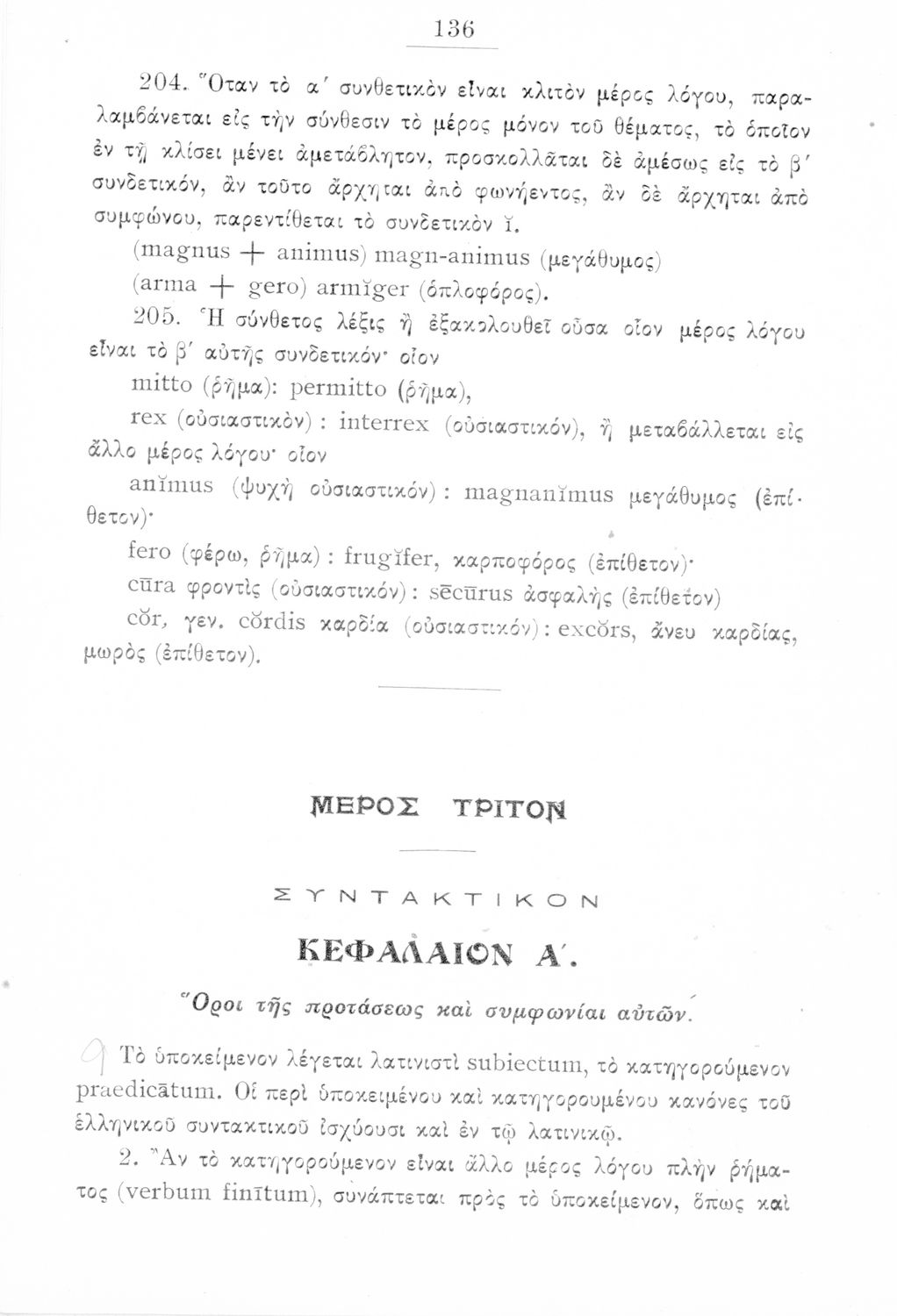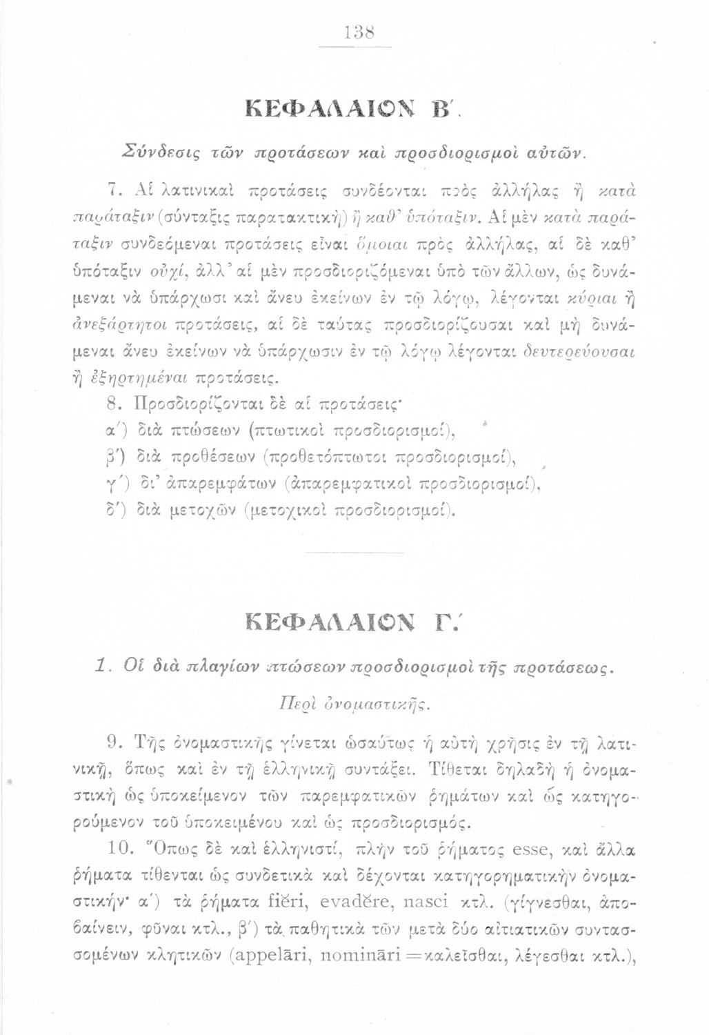 Γραμματικής της λατινικής γλώσσας για τα Ελληνικά Σχολεία και Γυμνάσια που περιέχει δύο τμήματα: το τεχνολογικό που εστιάζει στα μέρη του λόγου και το συντακτικό που ασχολείται με τις πτώσεις, τις εγκλίσεις, ...
