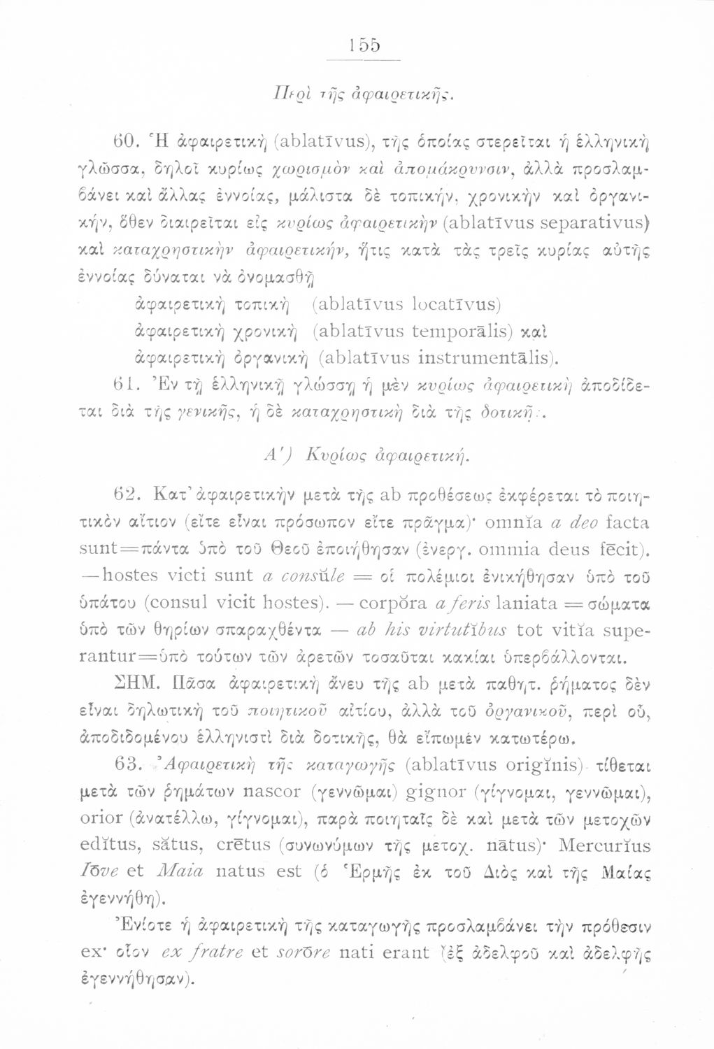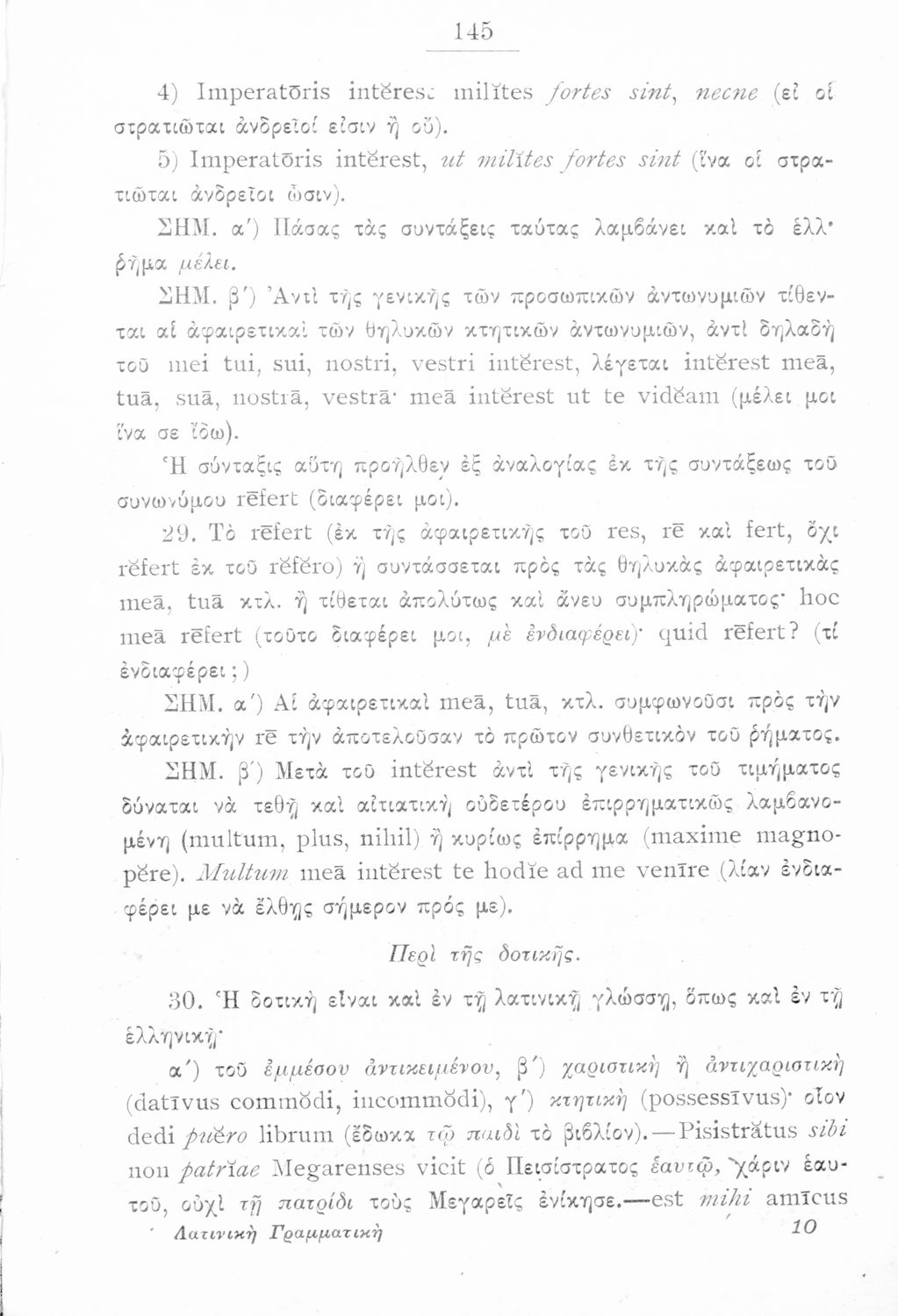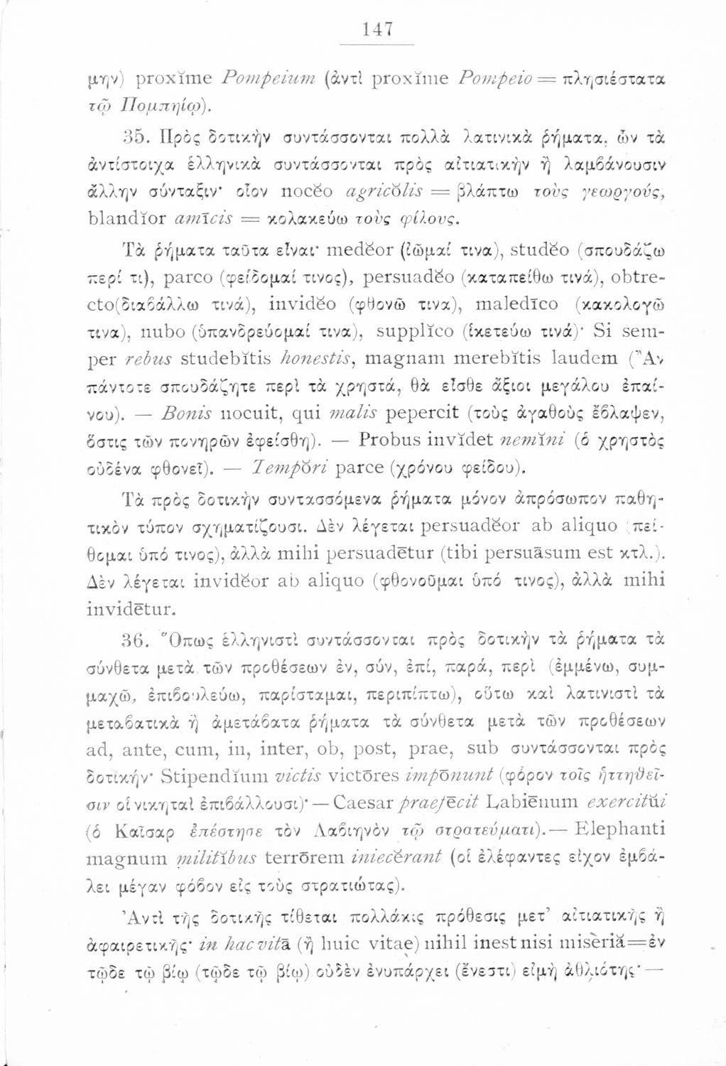 Γραμματικής της λατινικής γλώσσας για τα Ελληνικά Σχολεία και Γυμνάσια που περιέχει δύο τμήματα: το τεχνολογικό που εστιάζει στα μέρη του λόγου και το συντακτικό που ασχολείται με τις πτώσεις, τις εγκλίσεις, ...