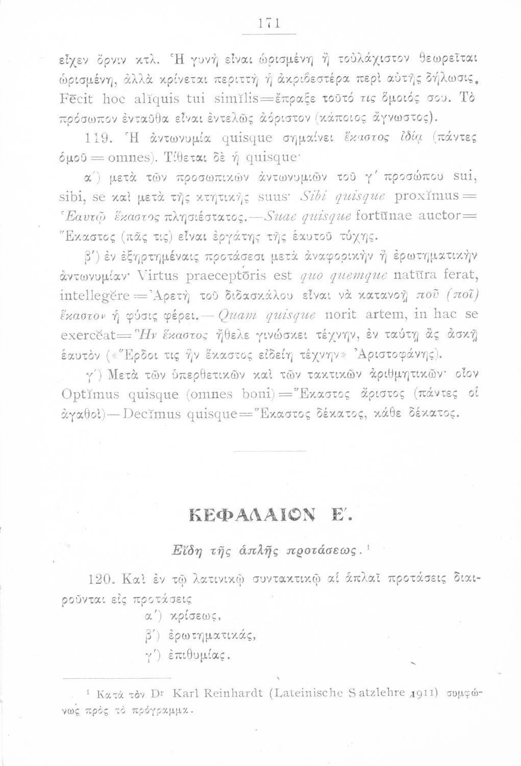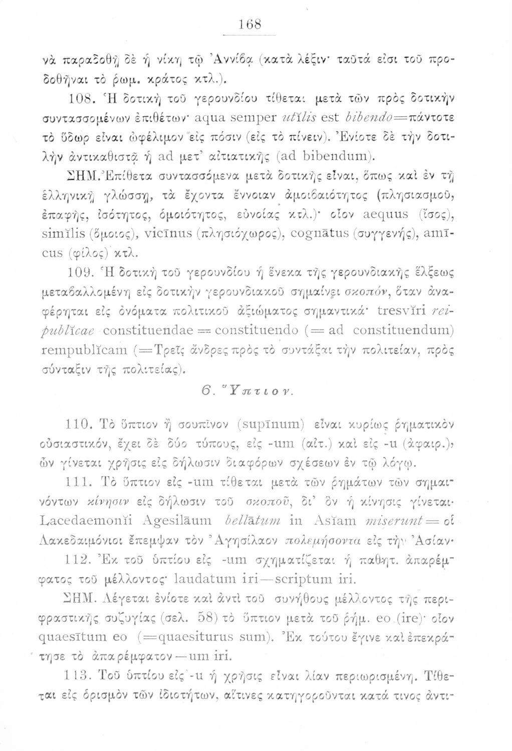 Σχολικό εγχειρίδιο Λατινικών που περιλαμβάνει τη γραμματική της λατινικής και είναι χωρισμένο στο φθογγολογικό, το τυπολογικό και το ετυμολογικό μέρος. Περιέχει και τους συντακτικούς κανόνες και επίμετρο με θέμα την προσωδία. Ο συγγραφέας ήταν καθηγητής της Λατινικής Φιλολογίας στο Εθνικό Πανεπιστήμιο.