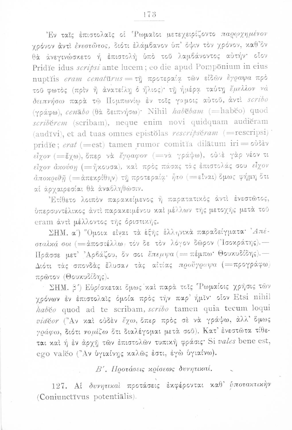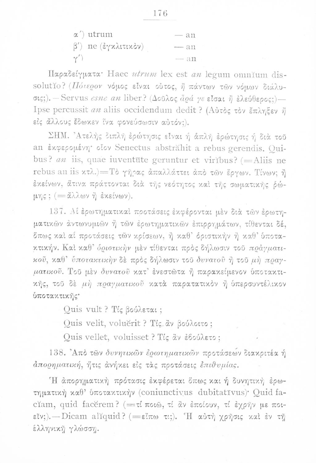 LDR 01334 2200205 4500 035 ## _a01-18271 040 ## _aΙνστιτούτο Εκπαιδευτικής Πολιτικής 041 ## _ael 100 ## _aΣπ. Κ. Σακελλαρόπουλος 110 ## _a18271 245 0# _aΛατινική γραμματική προς χρήσιν των Γυμνασίων 250 ## _a2η Έκδοση 260 ## _aΑθήνα _bΜιχαήλ Μαντζαβελάκης _c1913 300 ## _a248 _c19 520 ## _aΣχολικό εγχειρίδιο Λατινικών που περιλαμβάνει τη γραμματική της λατινικής και είναι χωρισμένο στο φθογγολογικό, το τυπολογικό και το ετυμολογικό μέρος. Περιέχει και τους συντακτικούς κανόνες και επίμετρο με θέμα την προσωδία. Ο συγγραφέας ήταν καθηγητής της Λατινικής Φιλολογίας στο Εθνικό Πανεπιστήμιο. 521 ## _aΓυμνάσιο 522 ## _aΕλλάδα 546 ## _aΚαθαρεύουσα 563 ## _aΣκληρό Εξώφυλλο 650 #4 _aΑντωνυμίες _aΑριθμητικά _aΕπίθετα _aΕπιρρηματικές προτάσεις _aΡήματα