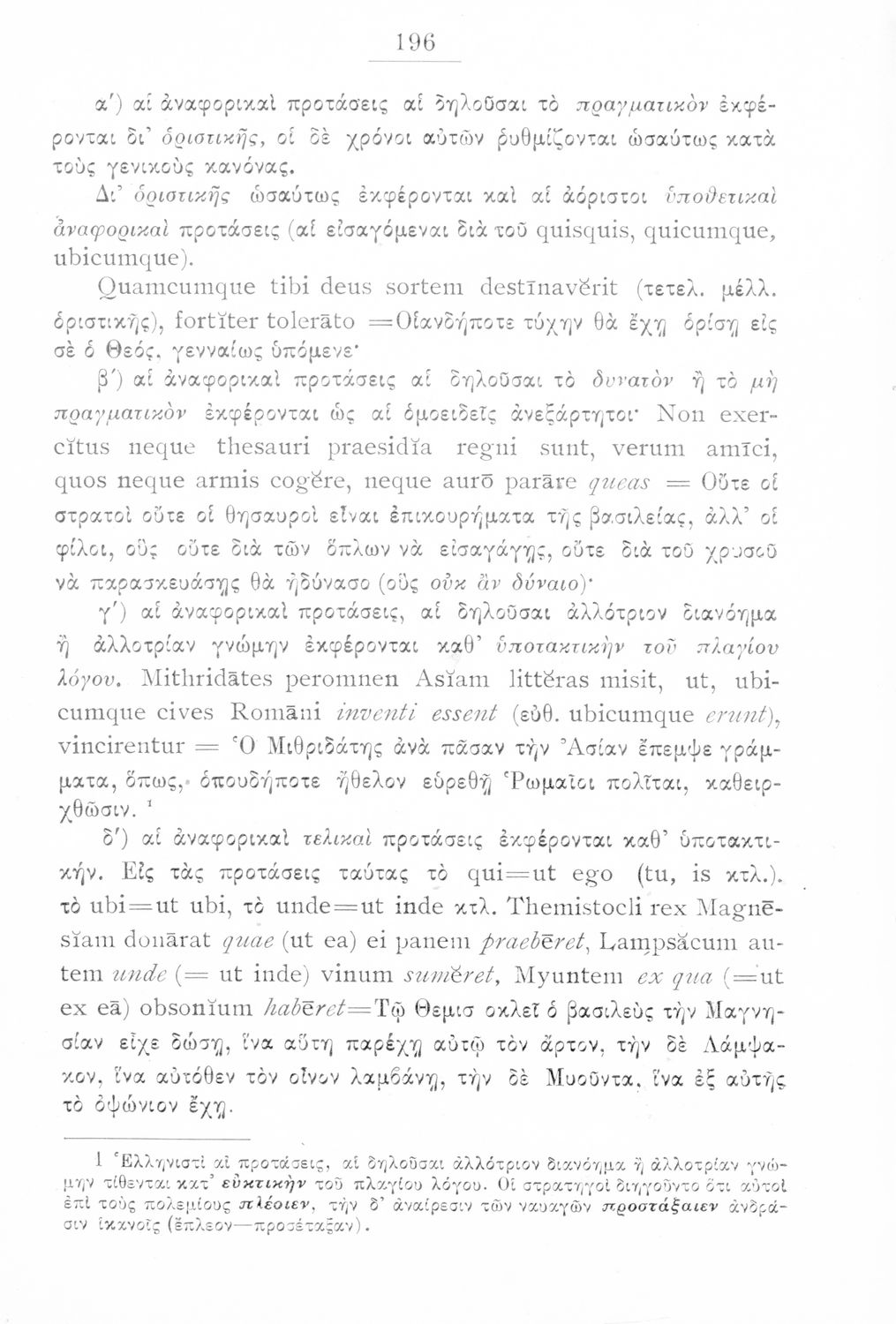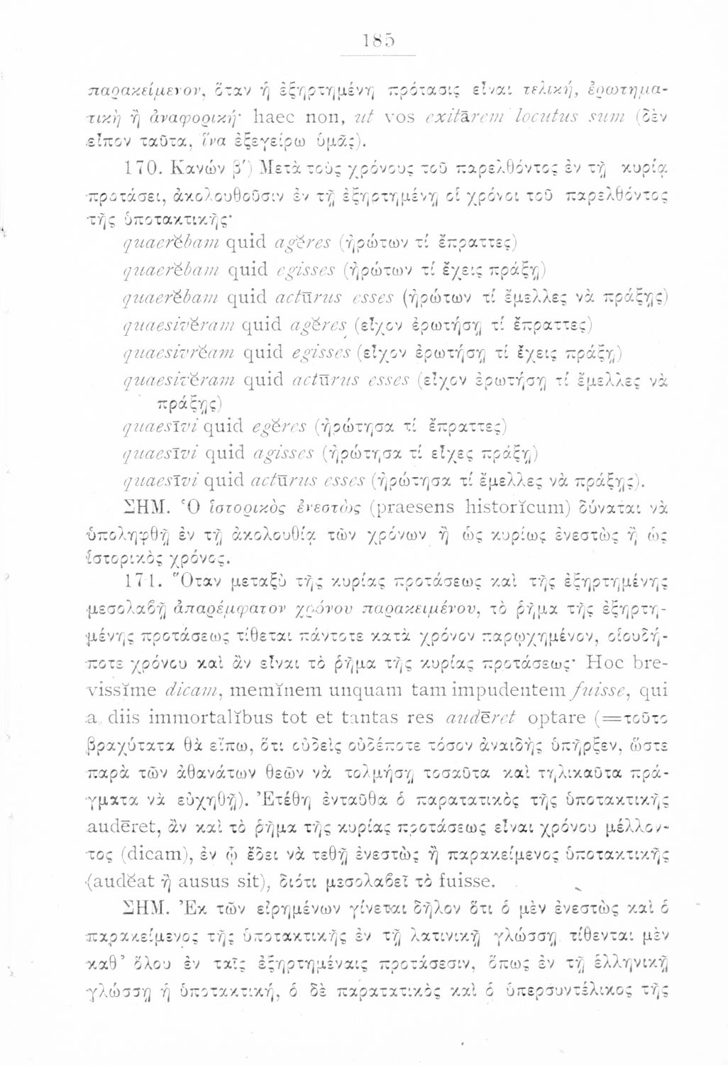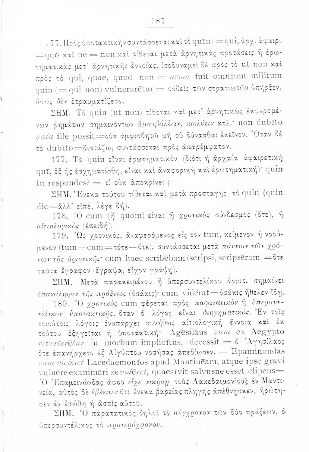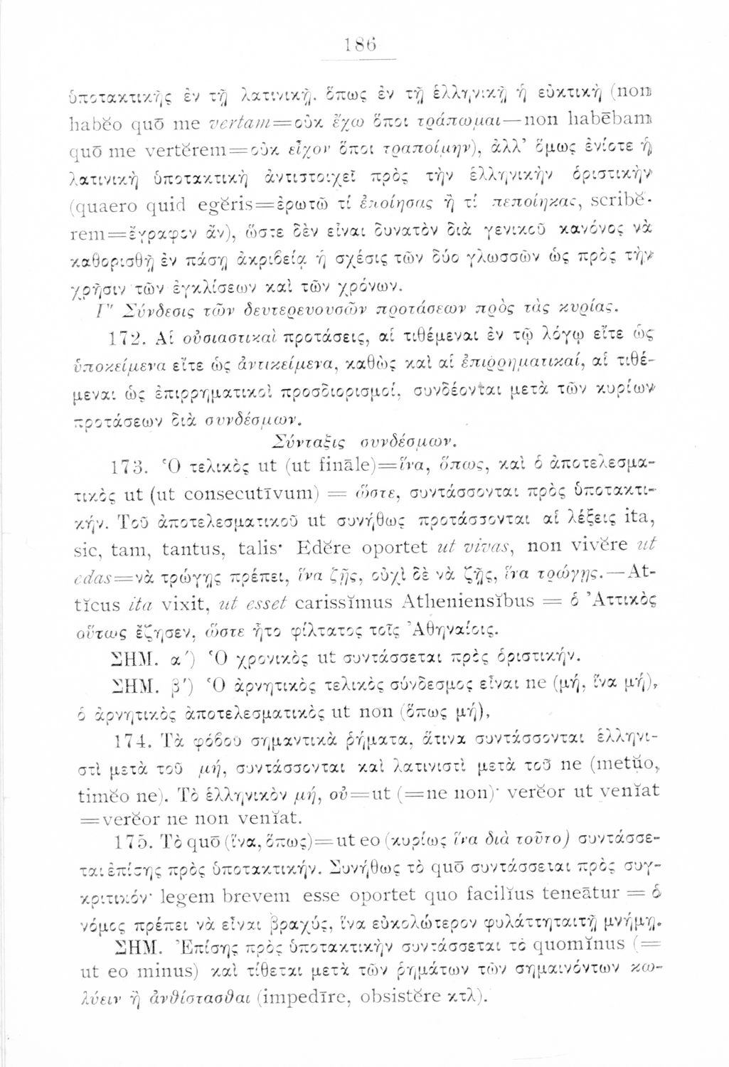 Γραμματικής της λατινικής γλώσσας για τα Ελληνικά Σχολεία και Γυμνάσια που περιέχει δύο τμήματα: το τεχνολογικό που εστιάζει στα μέρη του λόγου και το συντακτικό που ασχολείται με τις πτώσεις, τις εγκλίσεις, ...