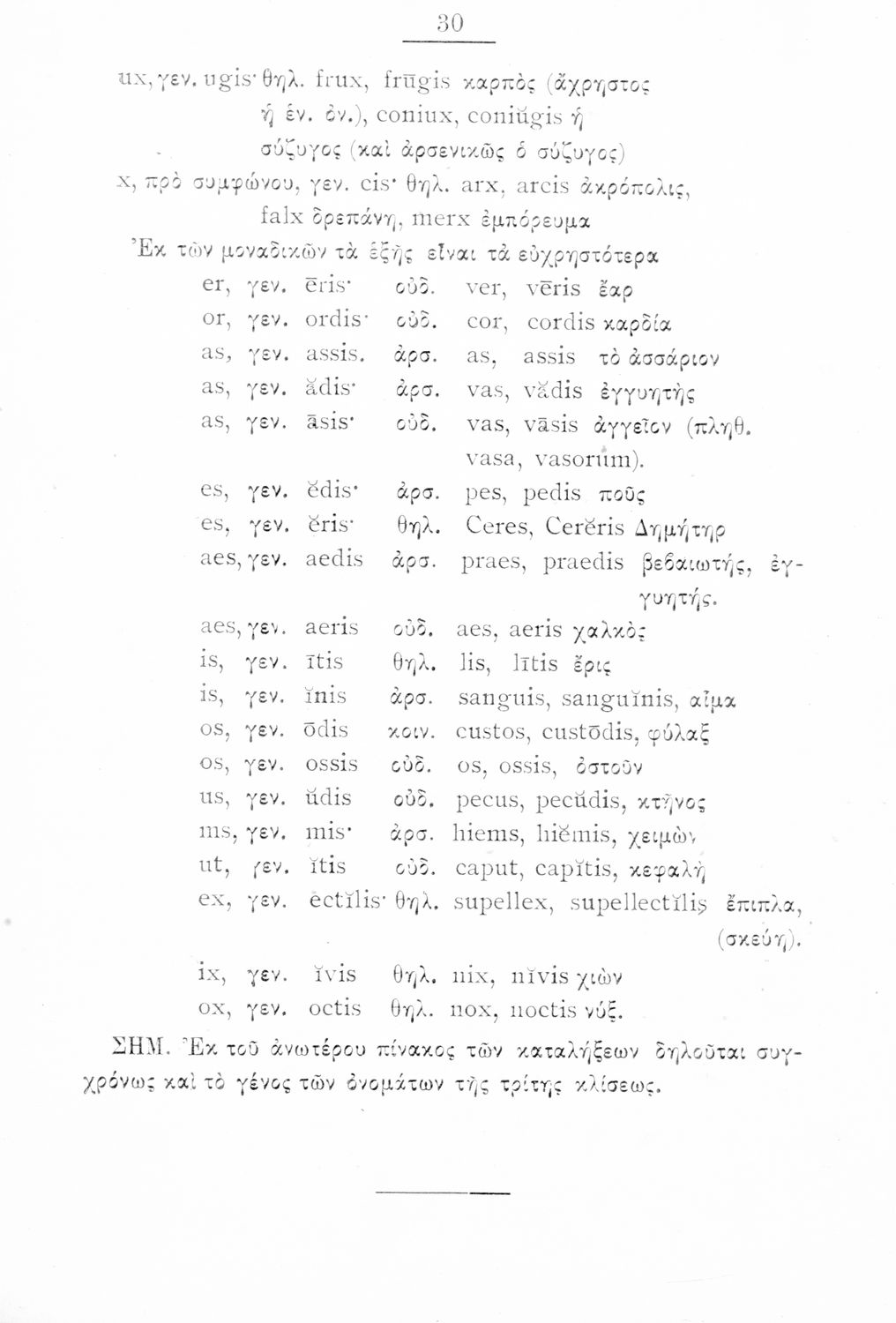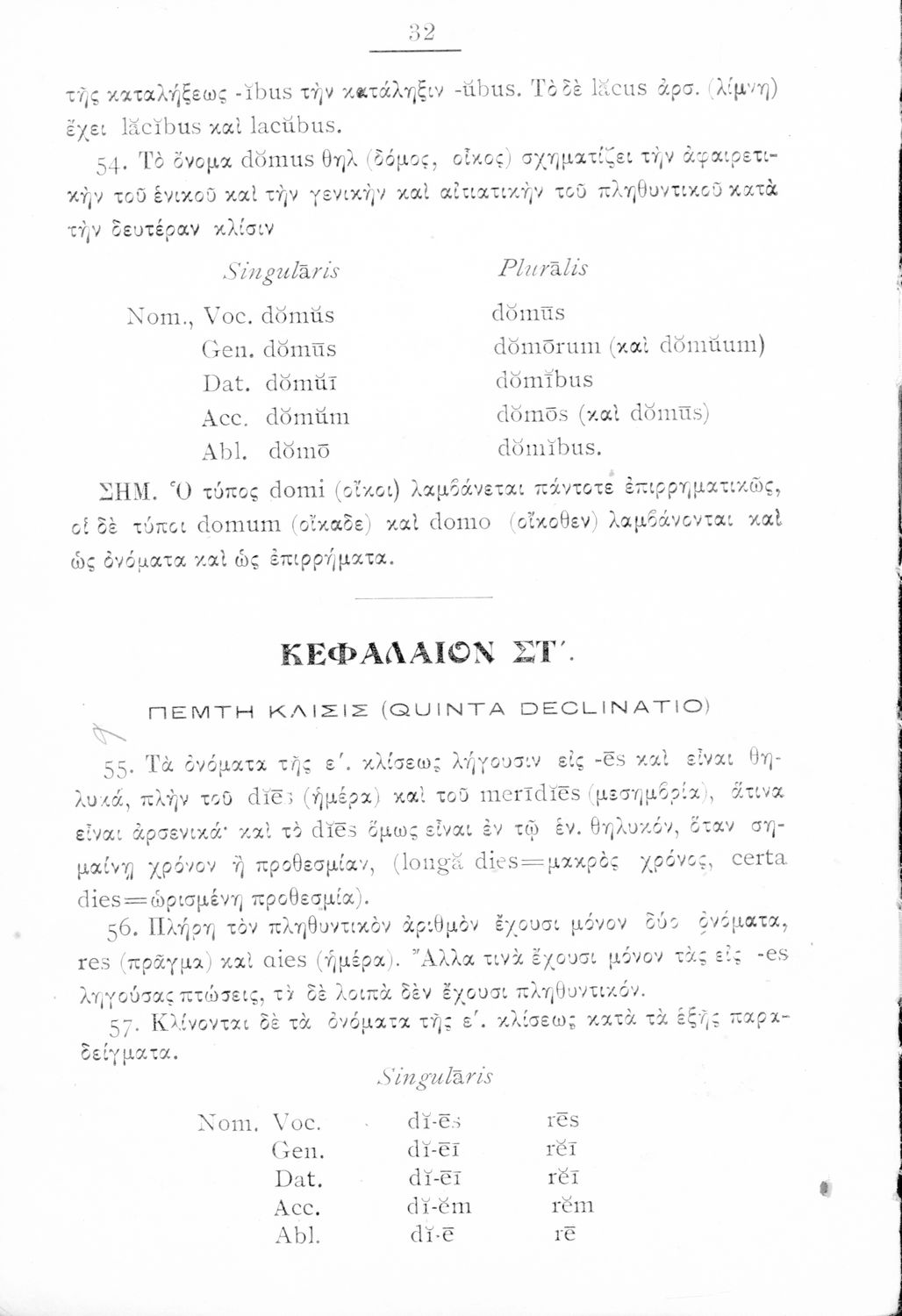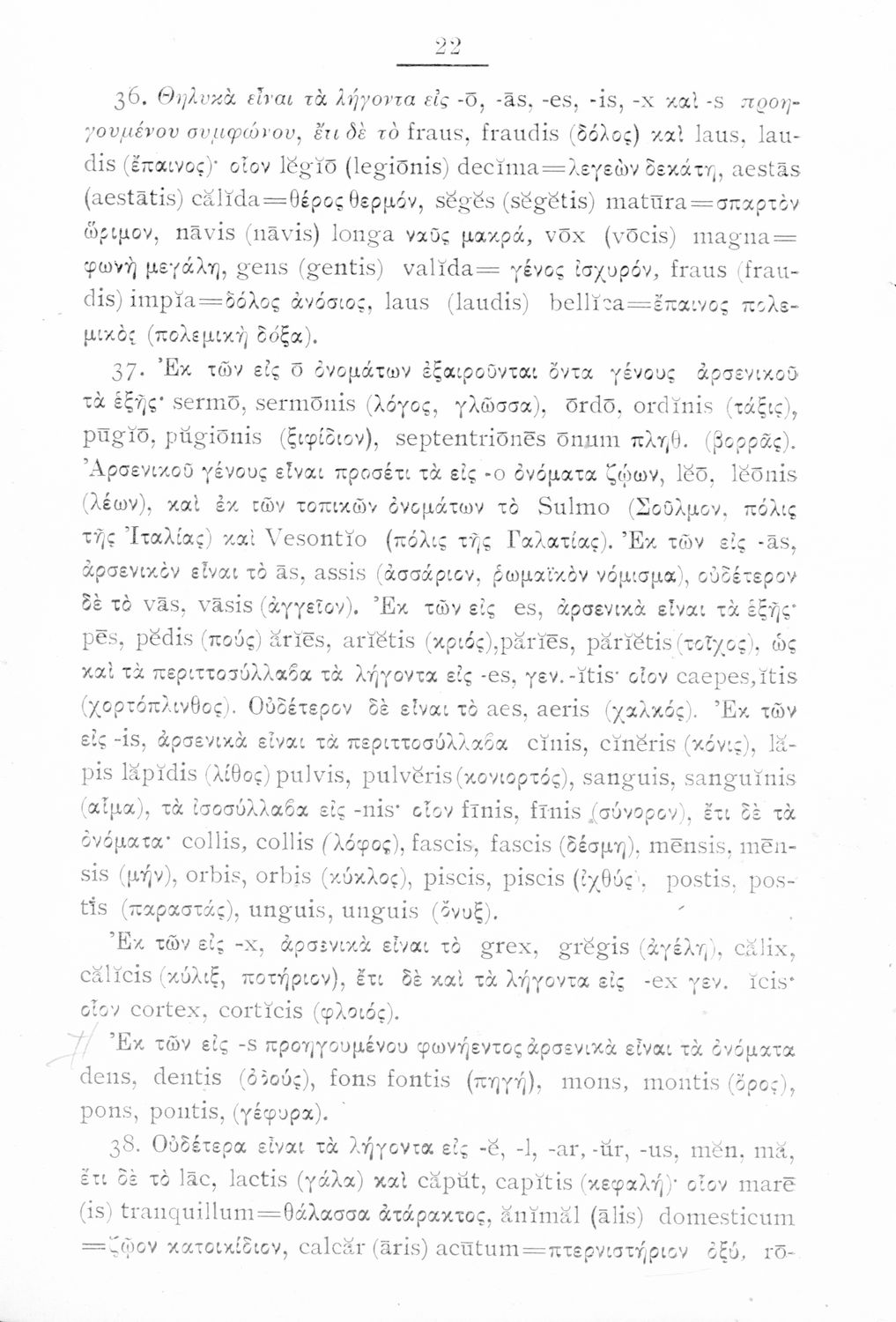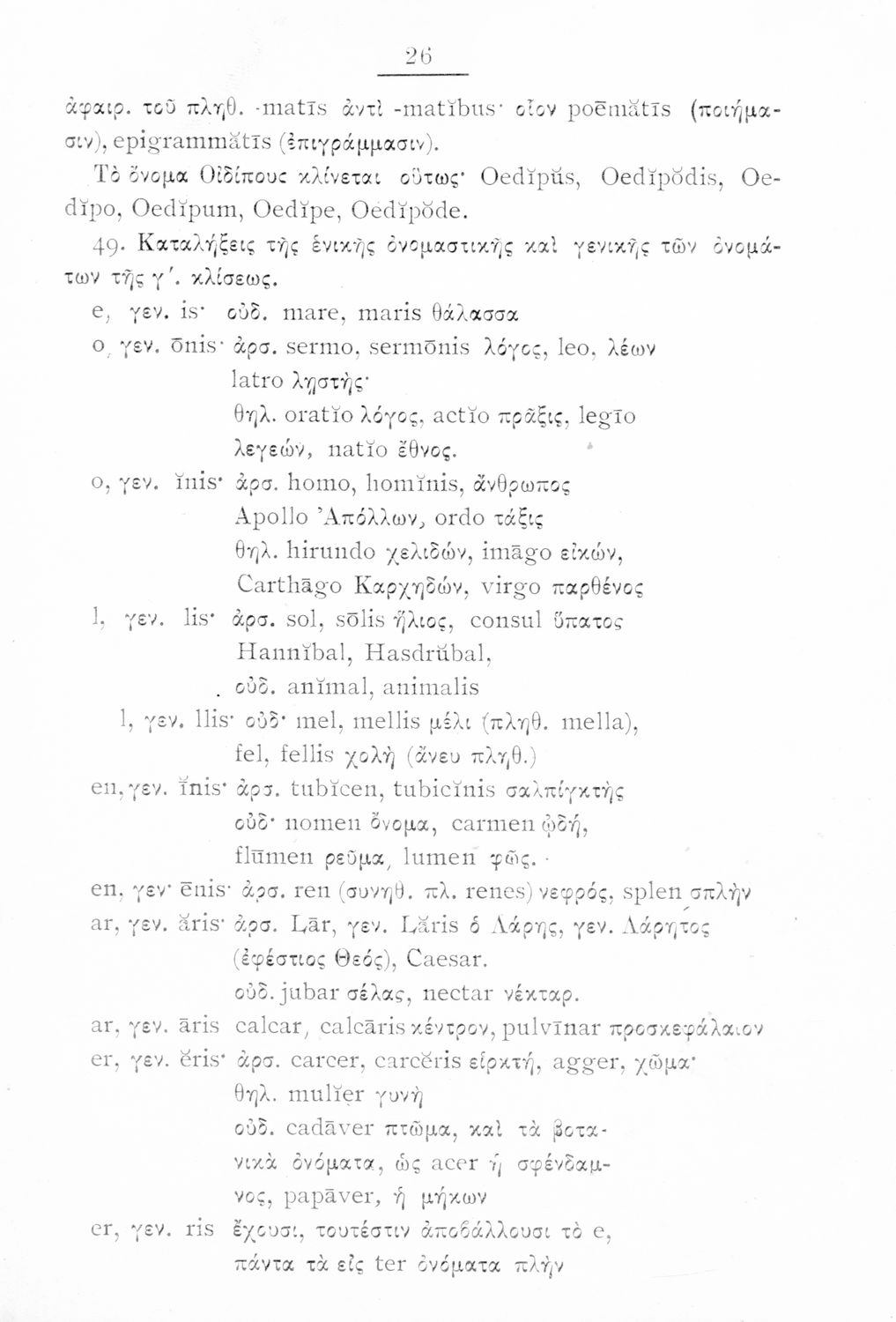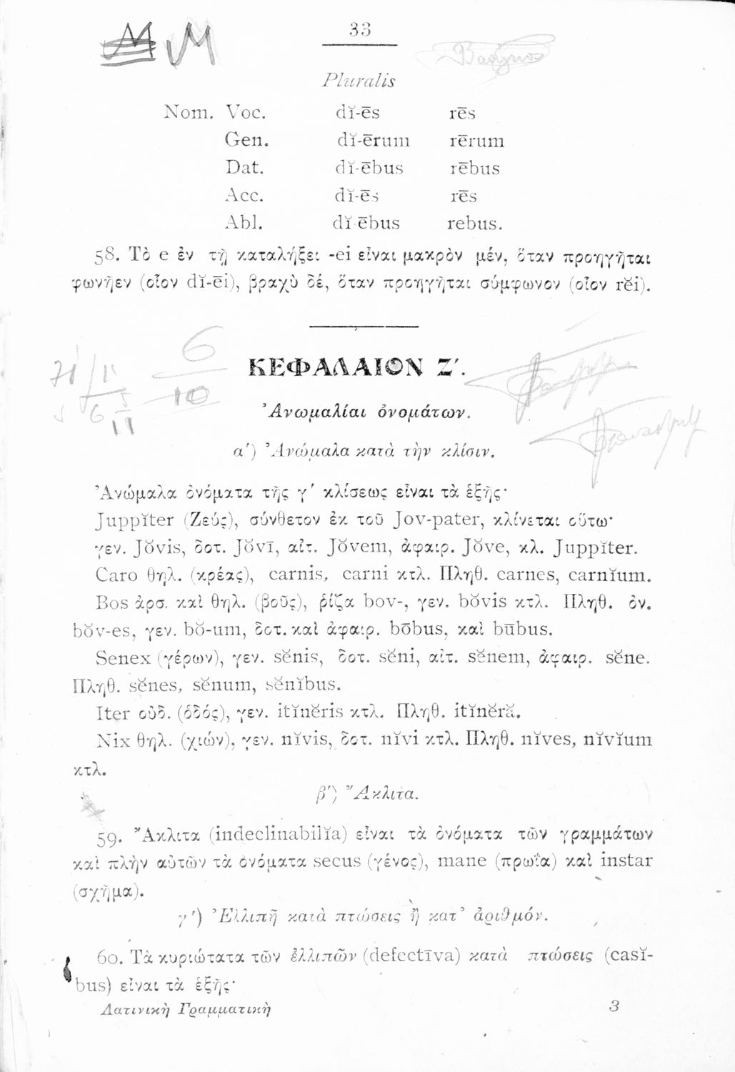 Σχολικό εγχειρίδιο Λατινικών που περιλαμβάνει τη γραμματική της λατινικής και είναι χωρισμένο στο τεχνολογικό, το τυπολογικό και το ετυμολογικό μέρος.