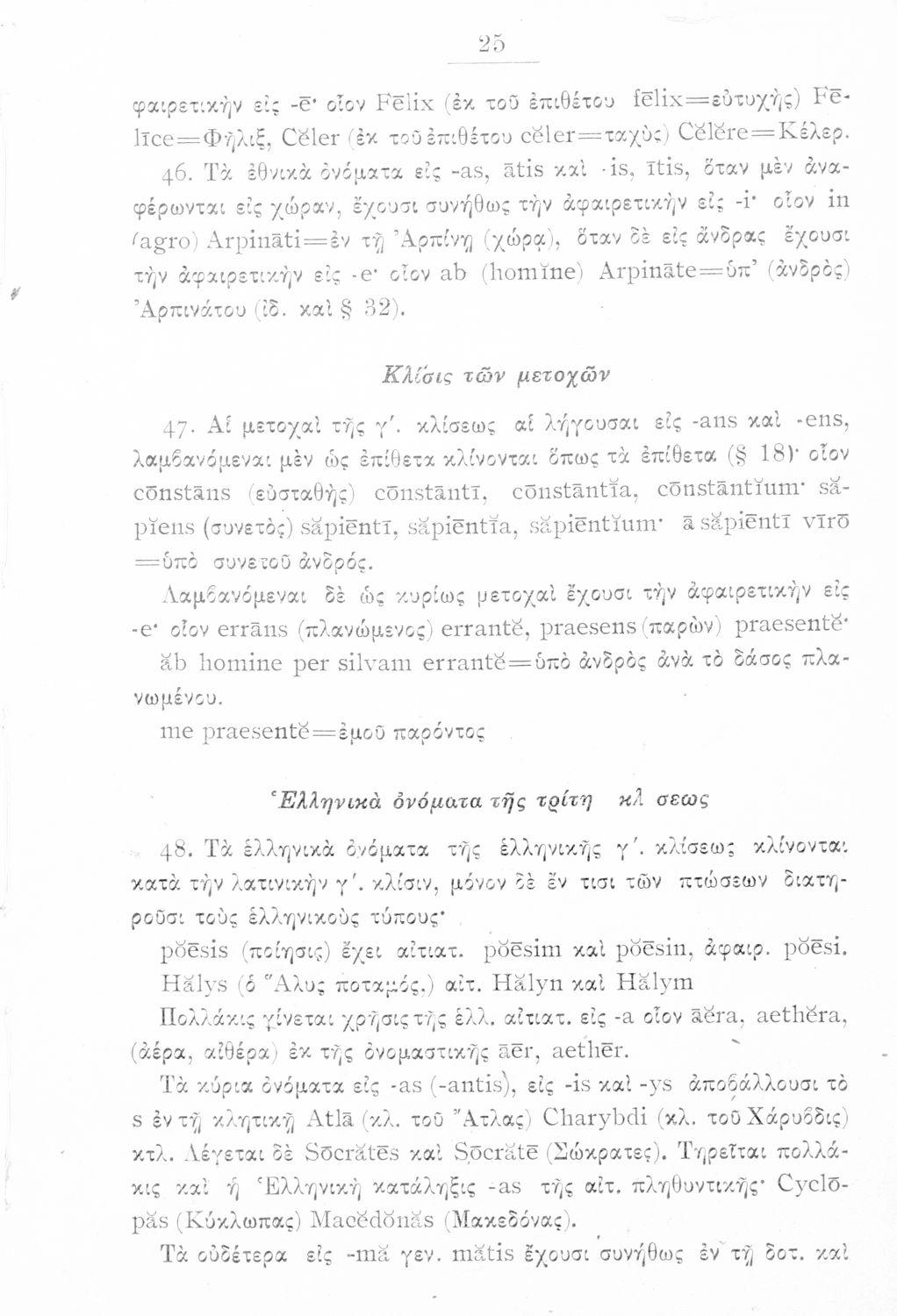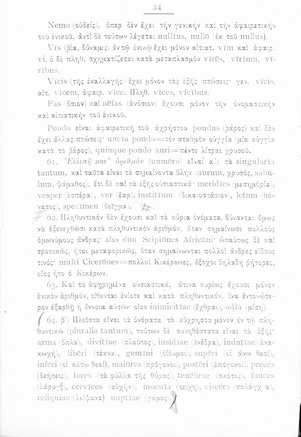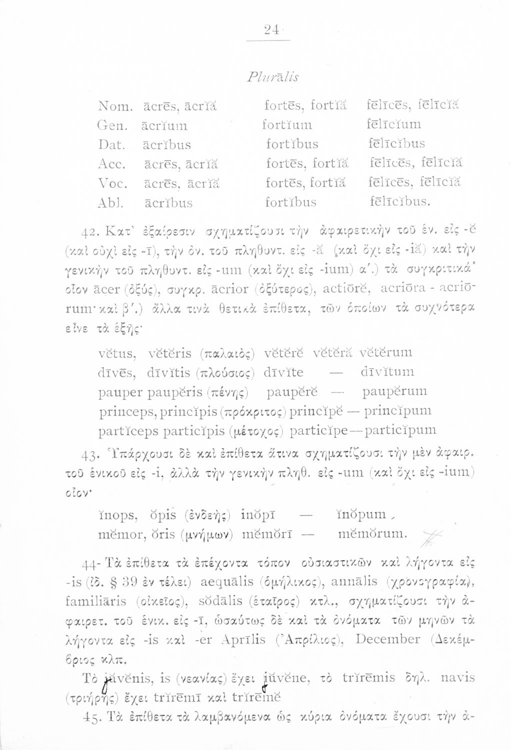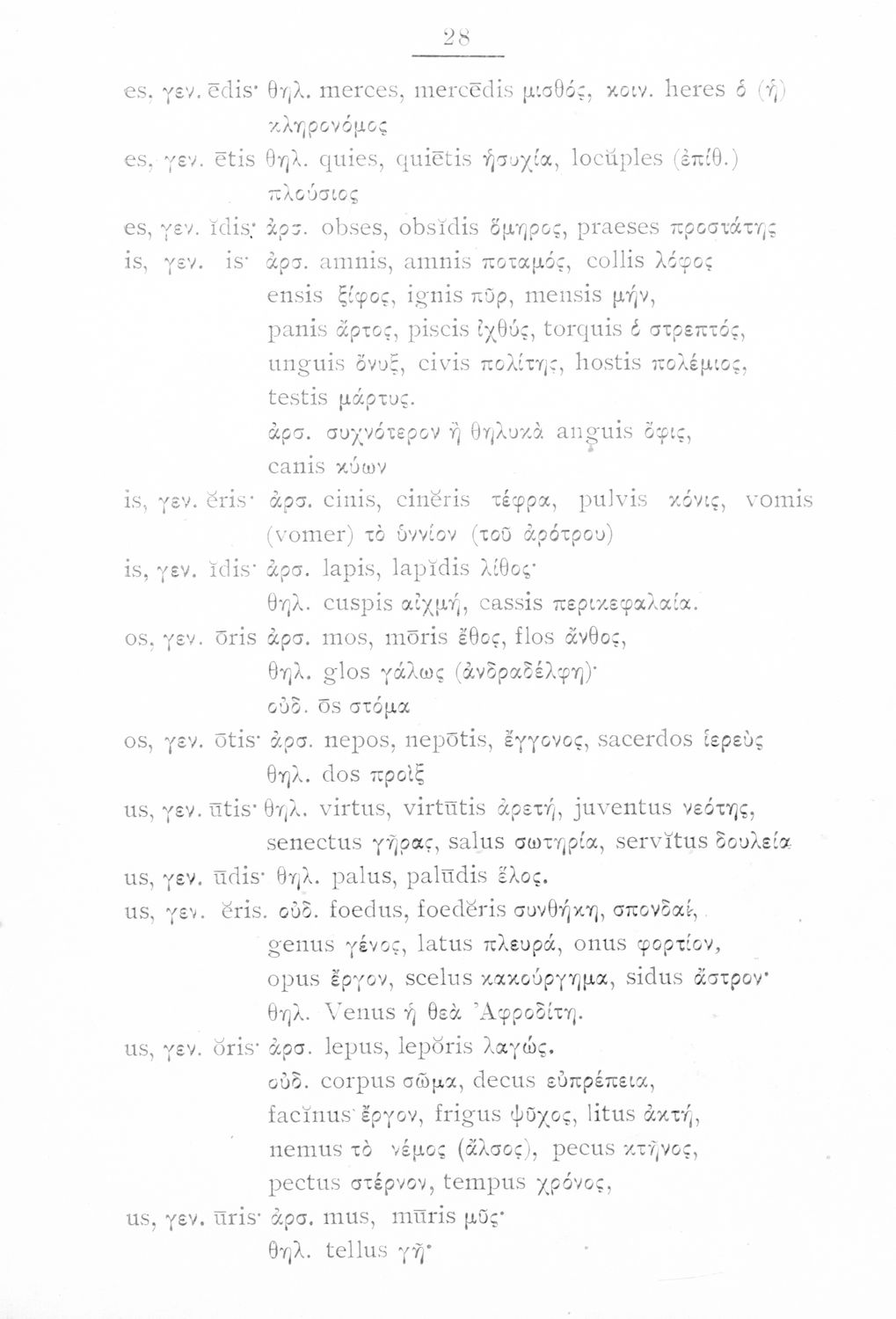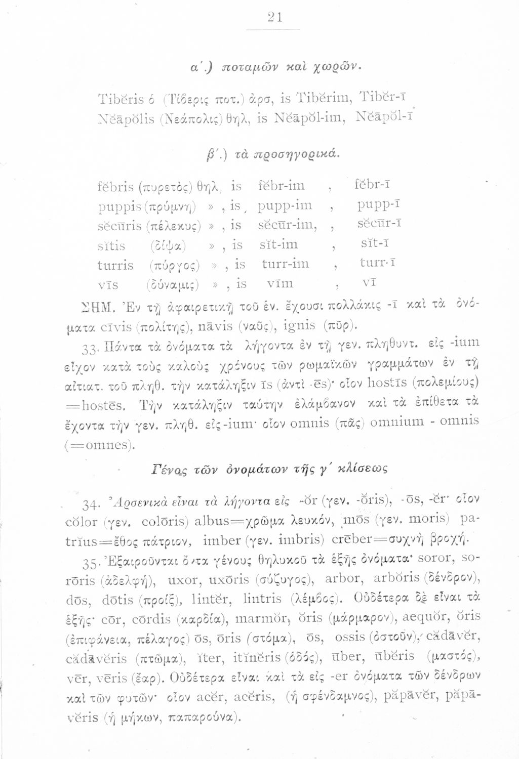 Σχολικό εγχειρίδιο Λατινικών που περιλαμβάνει τη γραμματική της λατινικής και είναι χωρισμένο στο τεχνολογικό, το τυπολογικό και το ετυμολογικό μέρος.