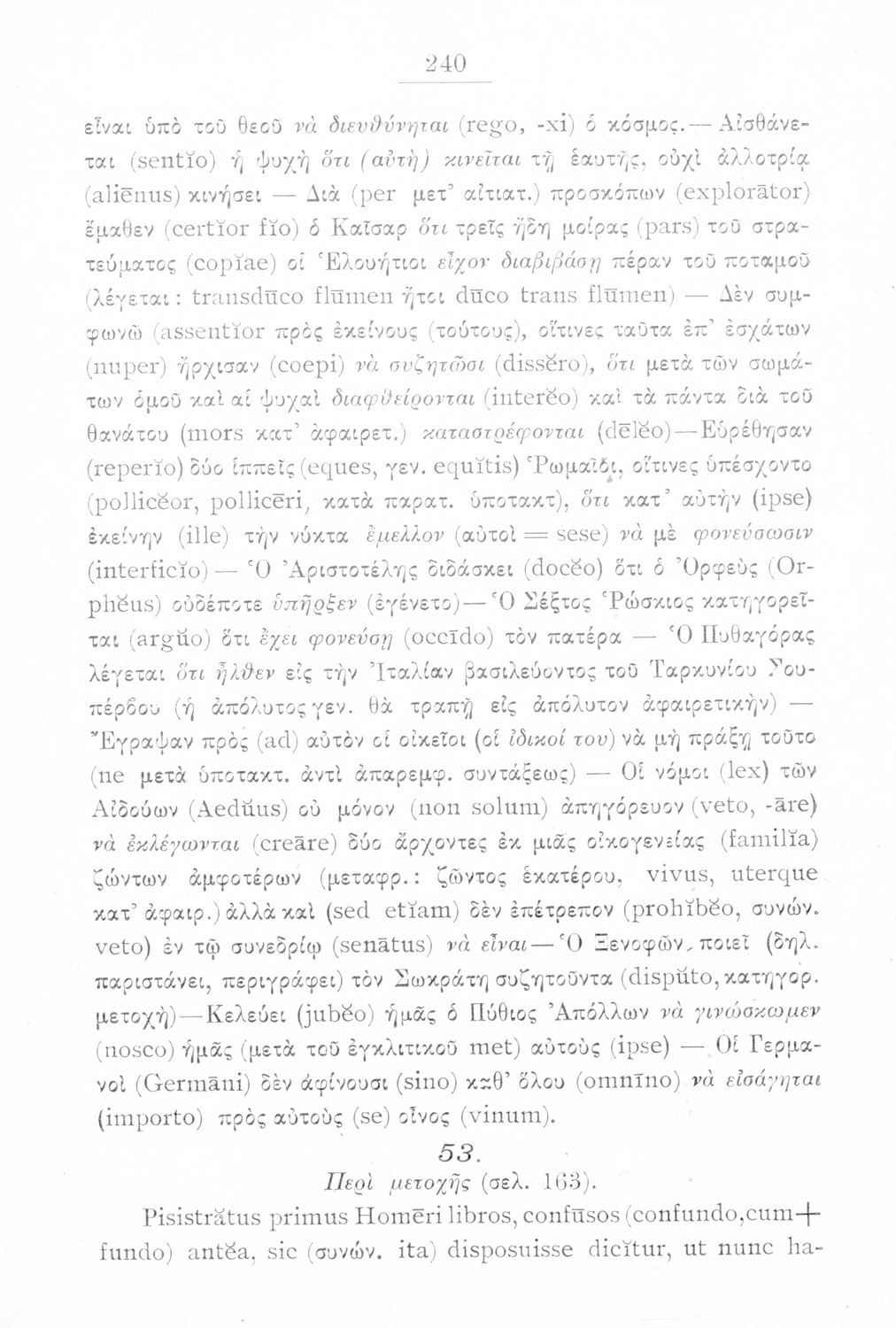 Σχολικό εγχειρίδιο Λατινικών Α΄, Β΄, Γ' Γυμνασίου που περιλαμβάνει γραμματική και συντακτικό και είναι χωρισμένο σε φθογγολογικό, τυπολογικό και ετυμολογικό μέρος.