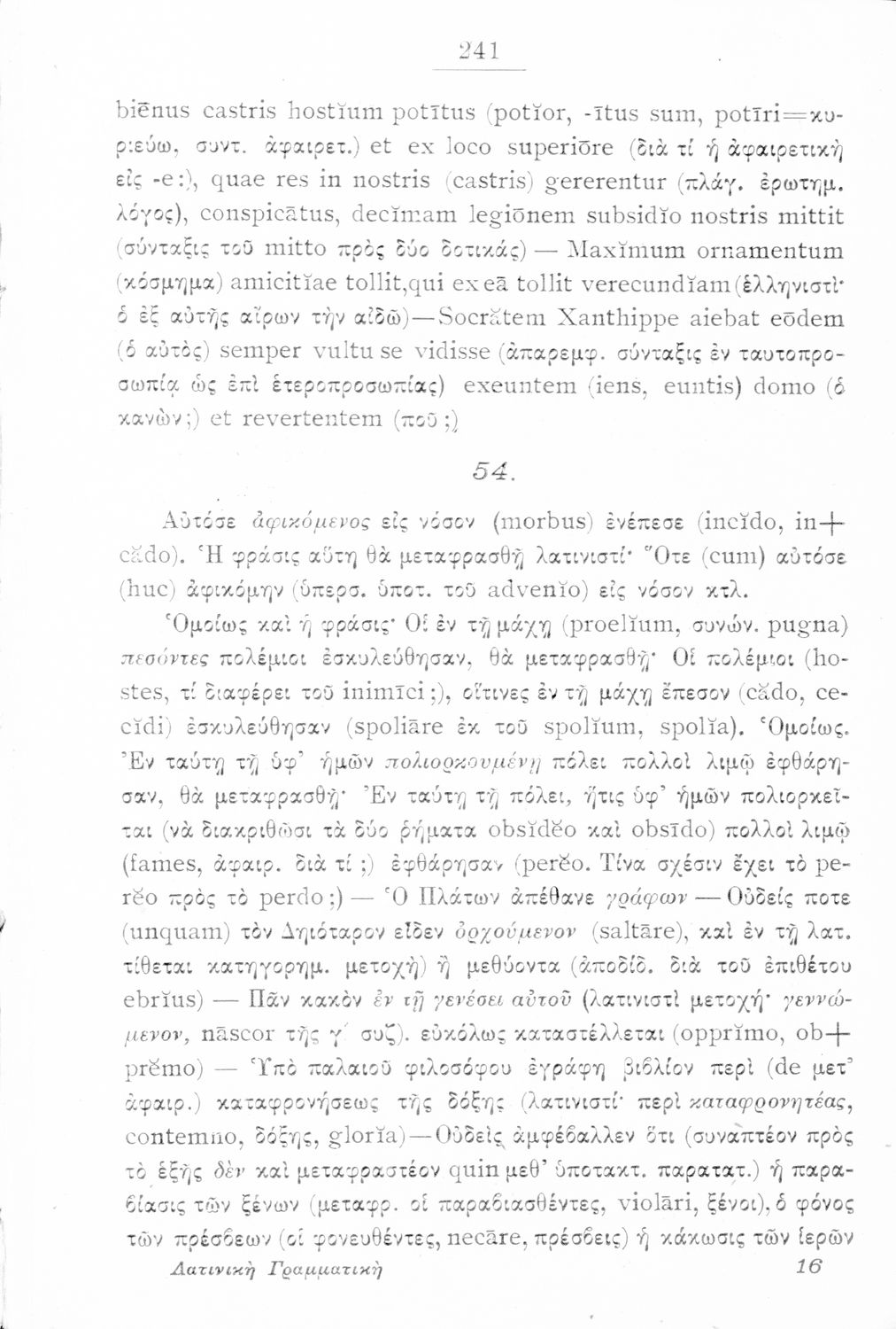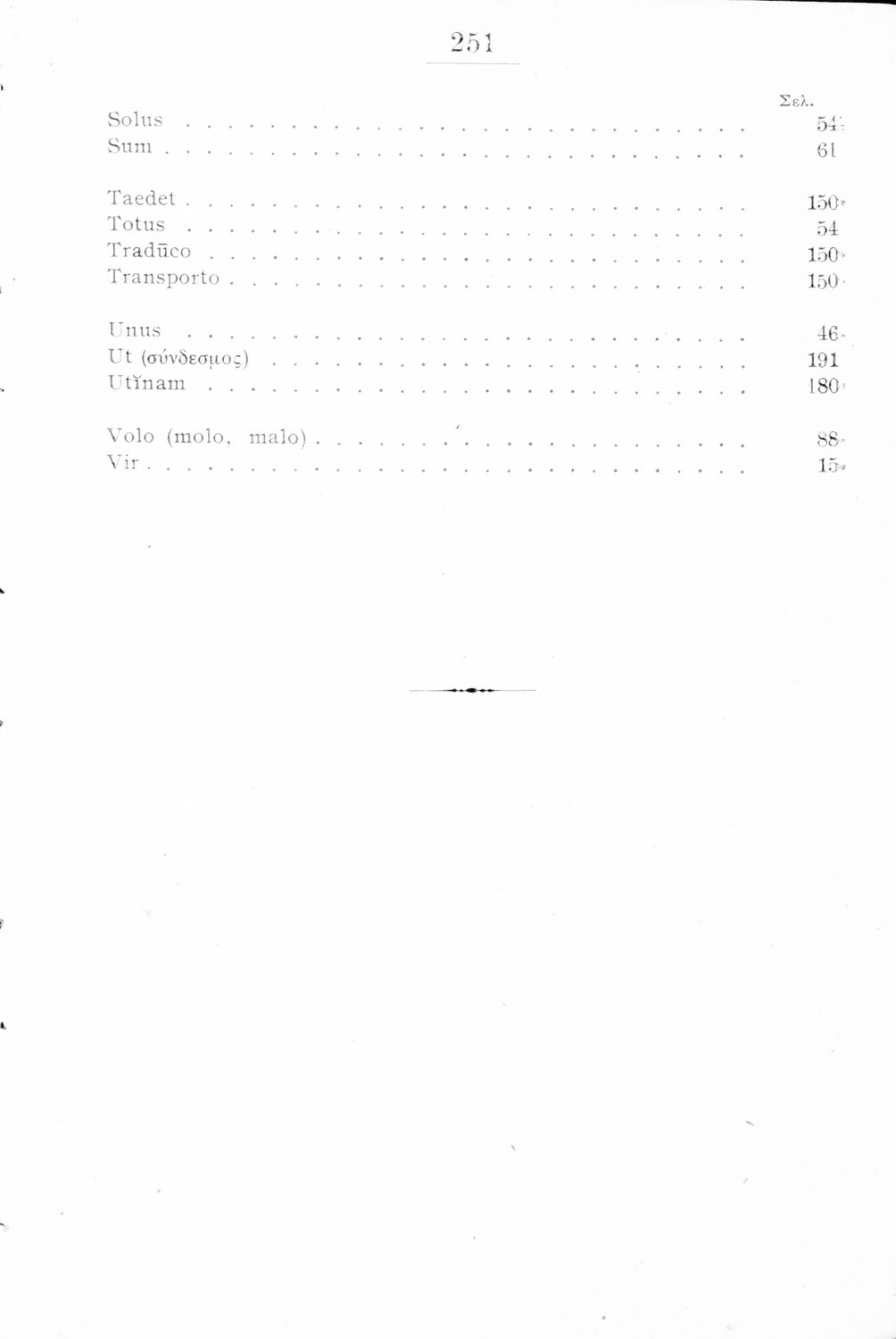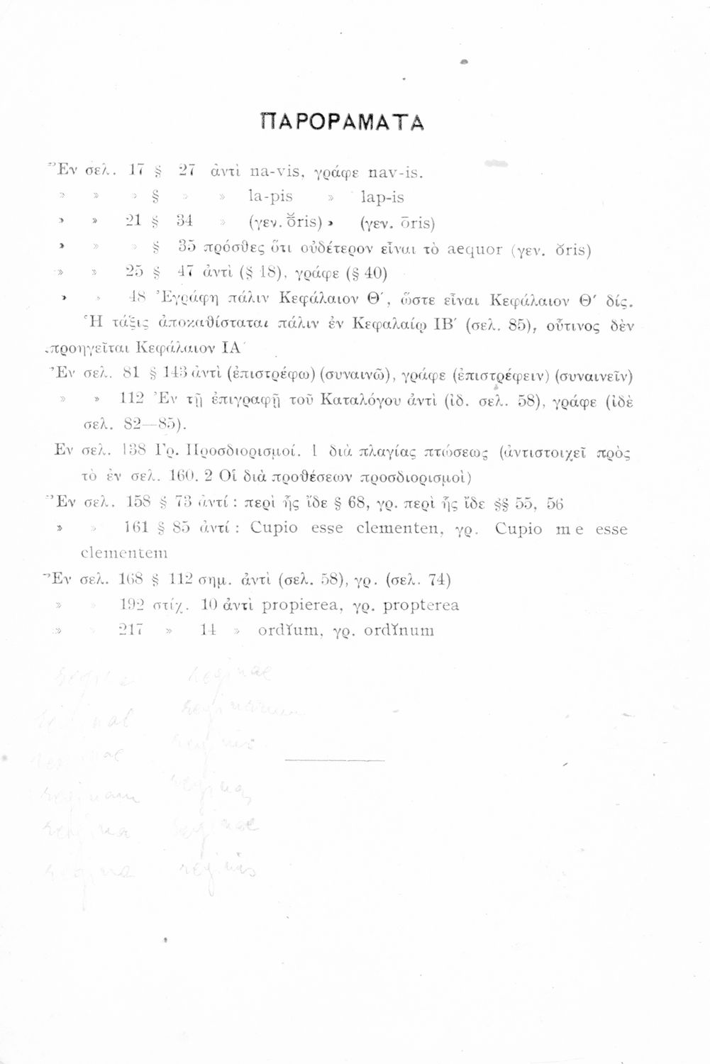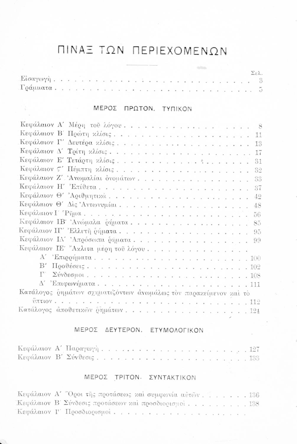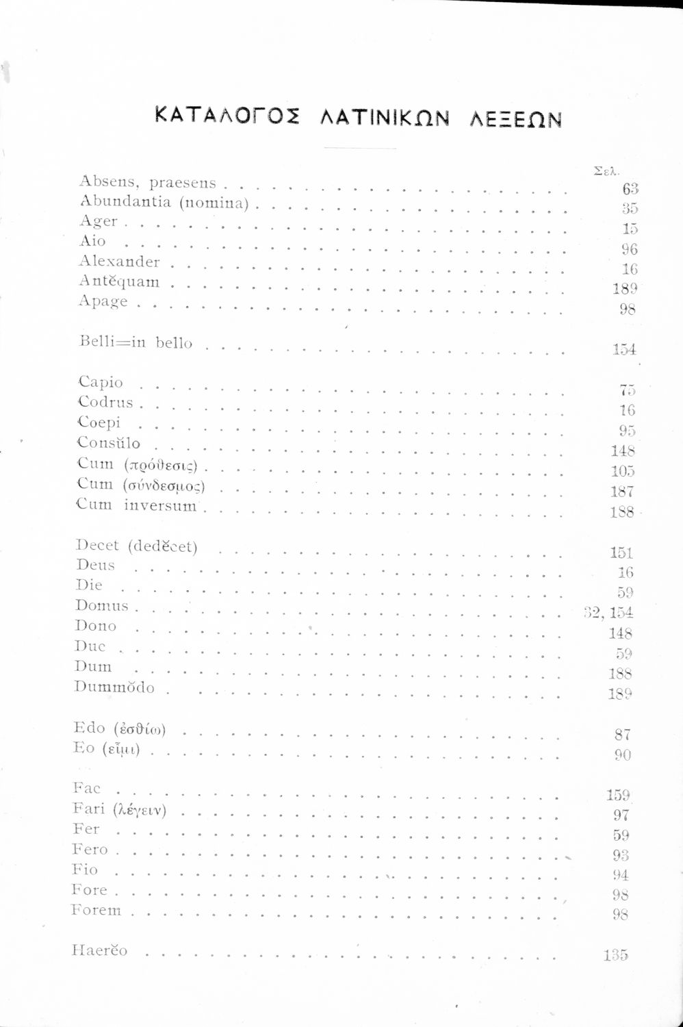 Σχολικό εγχειρίδιο Λατινικών που περιλαμβάνει τη γραμματική της λατινικής και είναι χωρισμένο στο τεχνολογικό, το τυπολογικό και το ετυμολογικό μέρος.