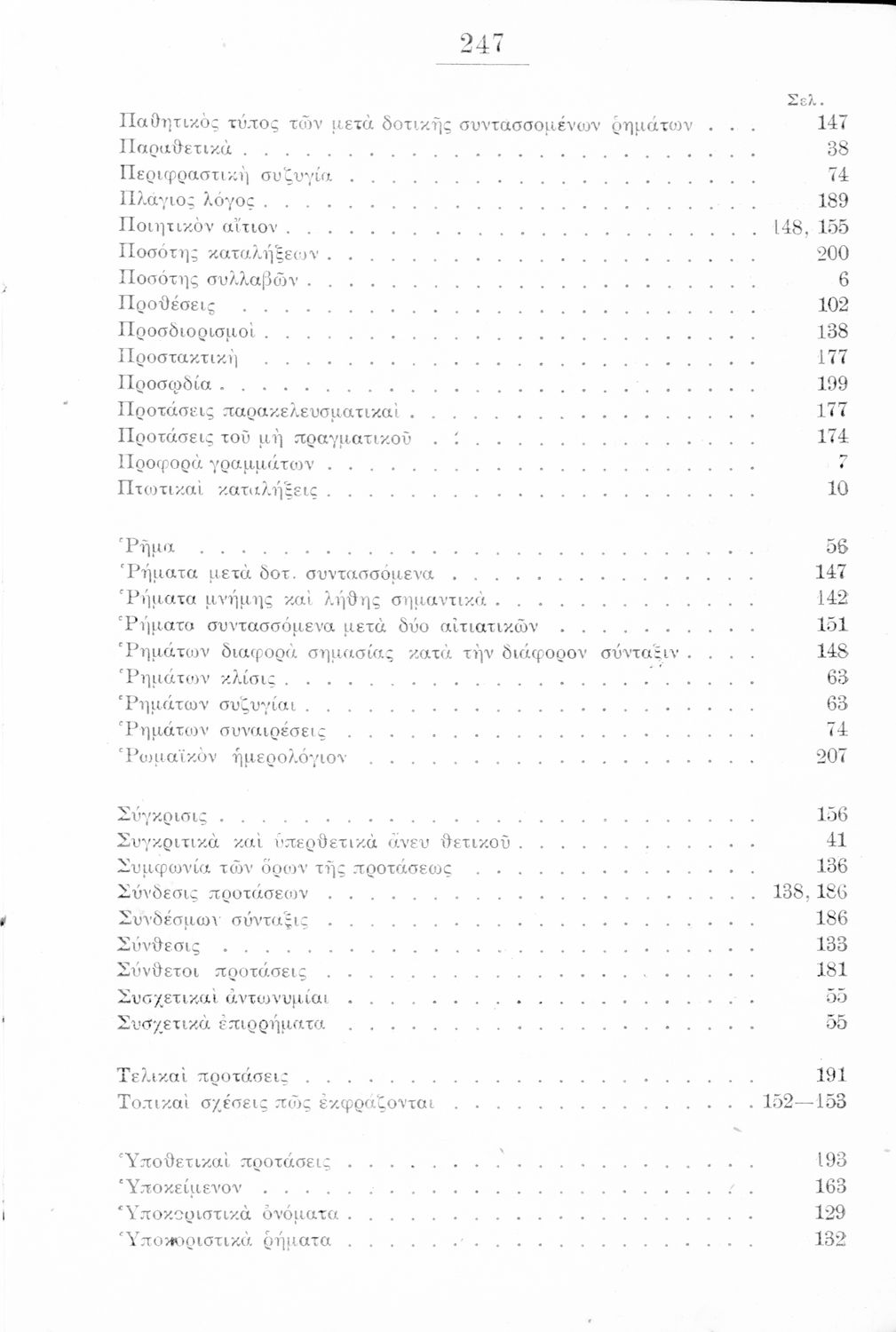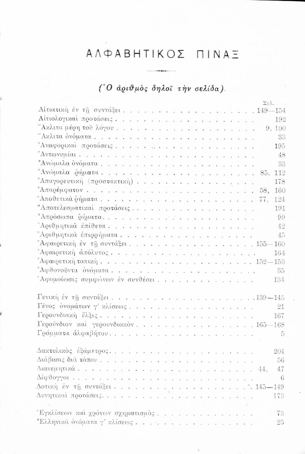 Γραμματικής της λατινικής γλώσσας για τα Ελληνικά Σχολεία και Γυμνάσια που περιέχει δύο τμήματα: το τεχνολογικό που εστιάζει στα μέρη του λόγου και το συντακτικό που ασχολείται με τις πτώσεις, τις εγκλίσεις, ...