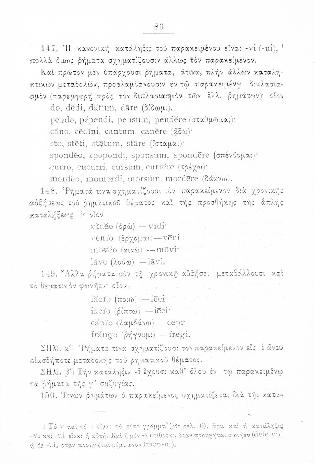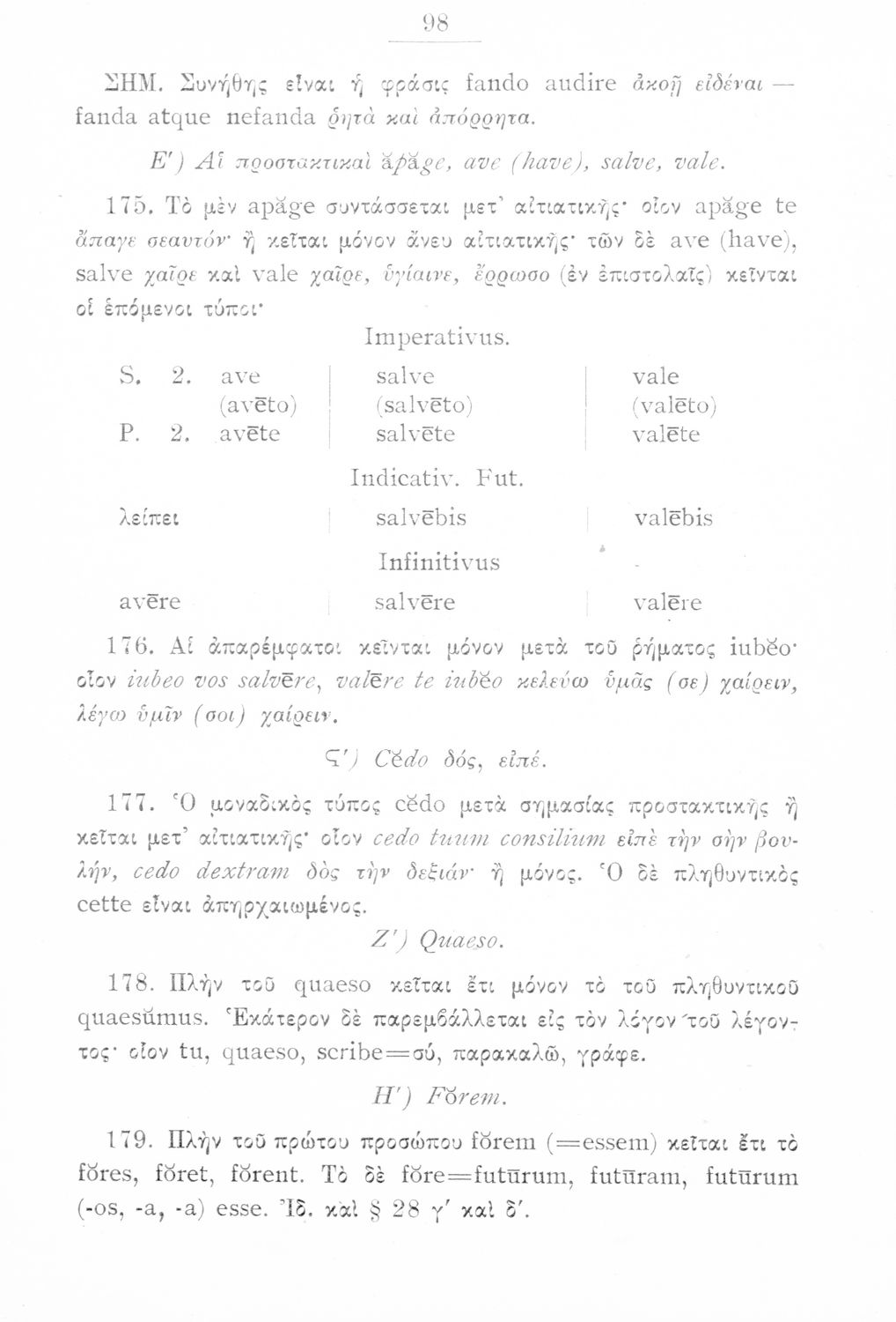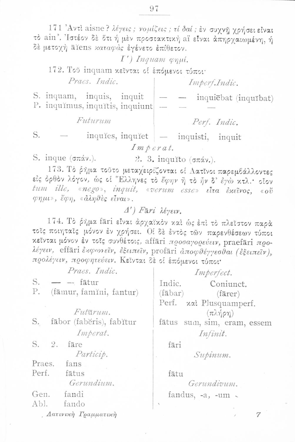 LDR 01334 2200205 4500 035 ## _a01-18271 040 ## _aΙνστιτούτο Εκπαιδευτικής Πολιτικής 041 ## _ael 100 ## _aΣπ. Κ. Σακελλαρόπουλος 110 ## _a18271 245 0# _aΛατινική γραμματική προς χρήσιν των Γυμνασίων 250 ## _a2η Έκδοση 260 ## _aΑθήνα _bΜιχαήλ Μαντζαβελάκης _c1913 300 ## _a248 _c19 520 ## _aΣχολικό εγχειρίδιο Λατινικών που περιλαμβάνει τη γραμματική της λατινικής και είναι χωρισμένο στο φθογγολογικό, το τυπολογικό και το ετυμολογικό μέρος. Περιέχει και τους συντακτικούς κανόνες και επίμετρο με θέμα την προσωδία. Ο συγγραφέας ήταν καθηγητής της Λατινικής Φιλολογίας στο Εθνικό Πανεπιστήμιο. 521 ## _aΓυμνάσιο 522 ## _aΕλλάδα 546 ## _aΚαθαρεύουσα 563 ## _aΣκληρό Εξώφυλλο 650 #4 _aΑντωνυμίες _aΑριθμητικά _aΕπίθετα _aΕπιρρηματικές προτάσεις _aΡήματα