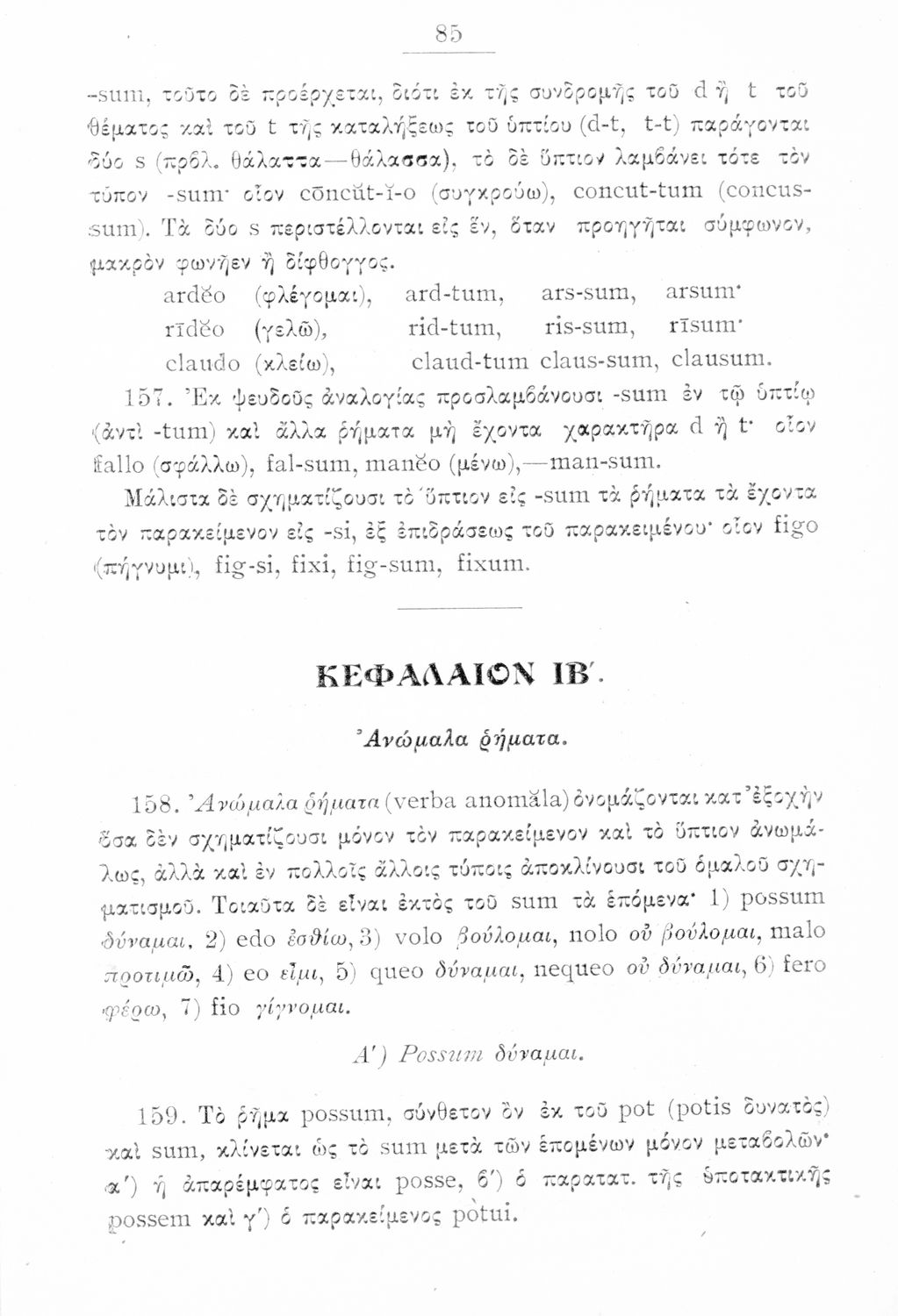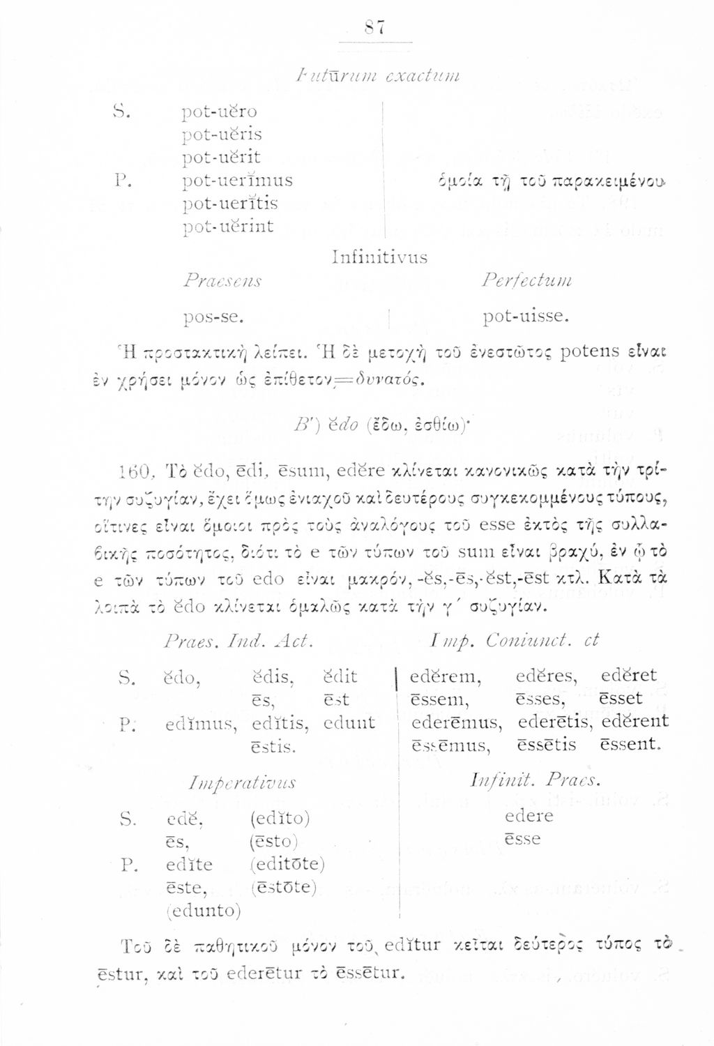 Σχολικό εγχειρίδιο Λατινικών που περιλαμβάνει τη γραμματική της λατινικής και είναι χωρισμένο στο φθογγολογικό, το τυπολογικό και το ετυμολογικό μέρος. Περιέχει και τους συντακτικούς κανόνες και επίμετρο με θέμα την προσωδία. Ο συγγραφέας ήταν καθηγητής της Λατινικής Φιλολογίας στο Εθνικό Πανεπιστήμιο.