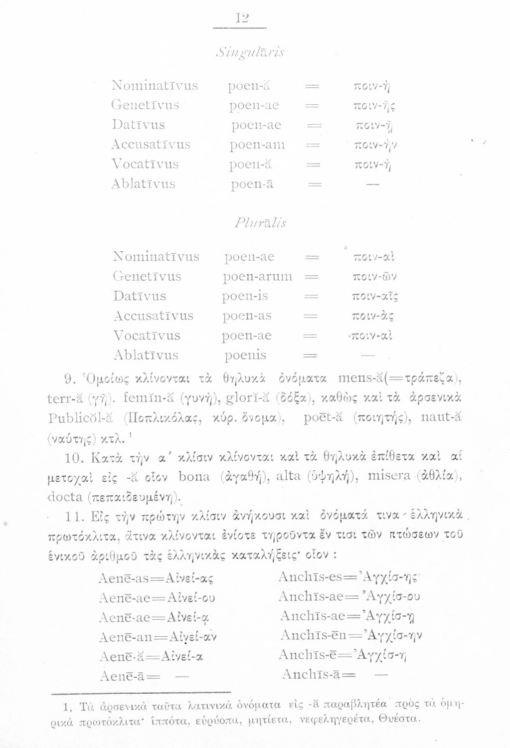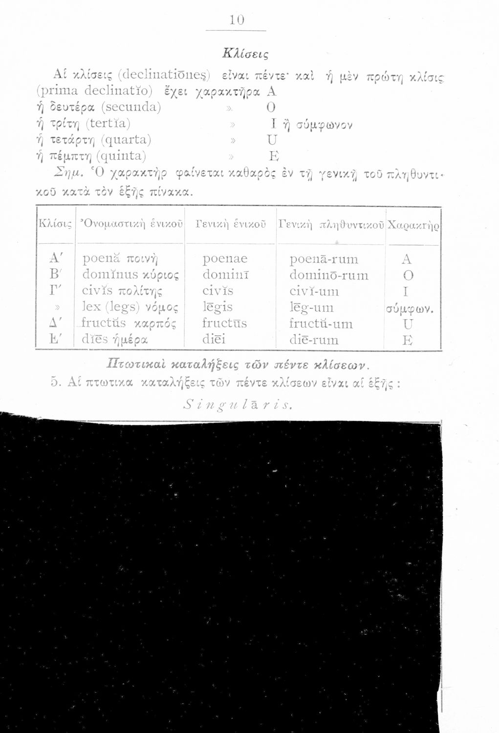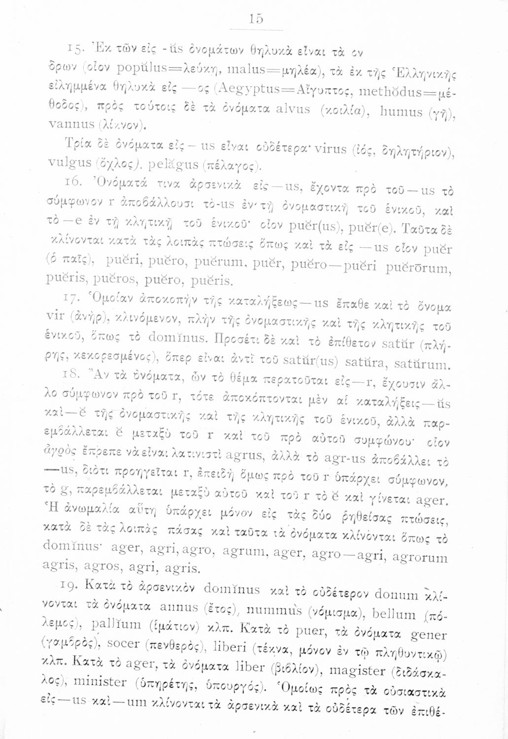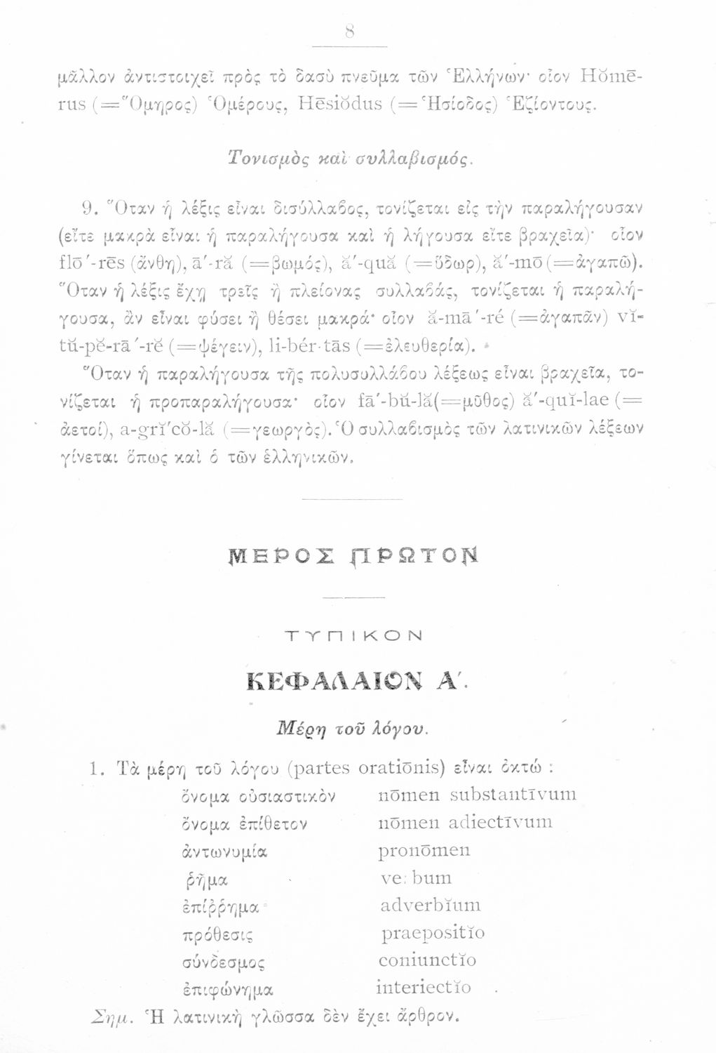 Σχολικό εγχειρίδιο Λατινικών που περιλαμβάνει τη γραμματική της λατινικής και είναι χωρισμένο στο τεχνολογικό, το τυπολογικό και το ετυμολογικό μέρος.