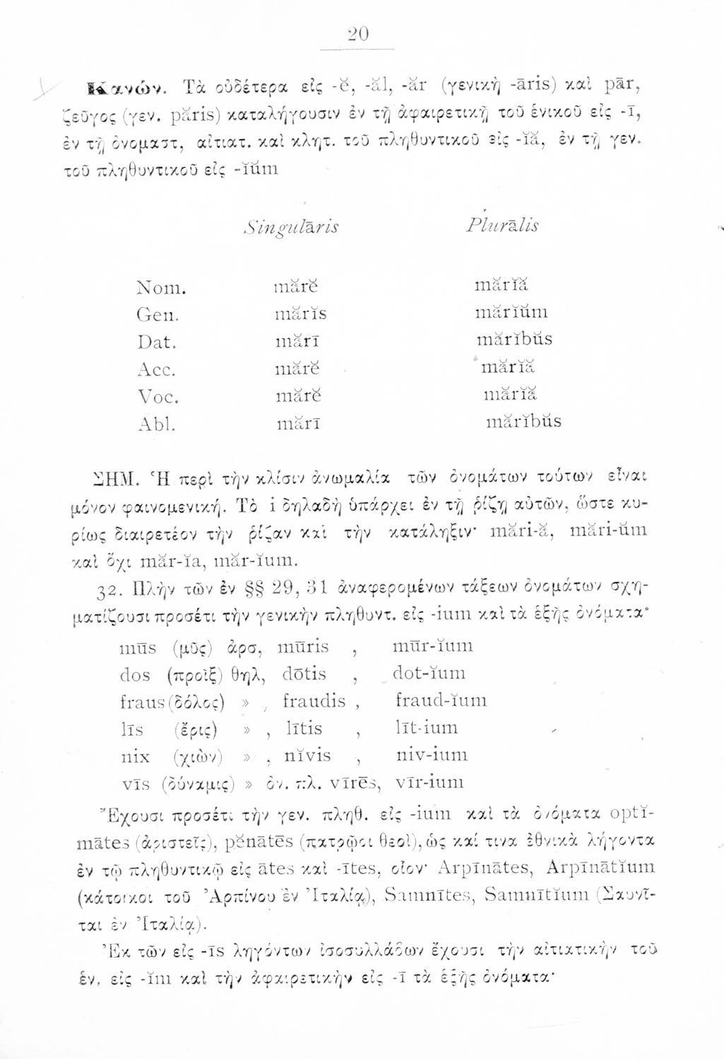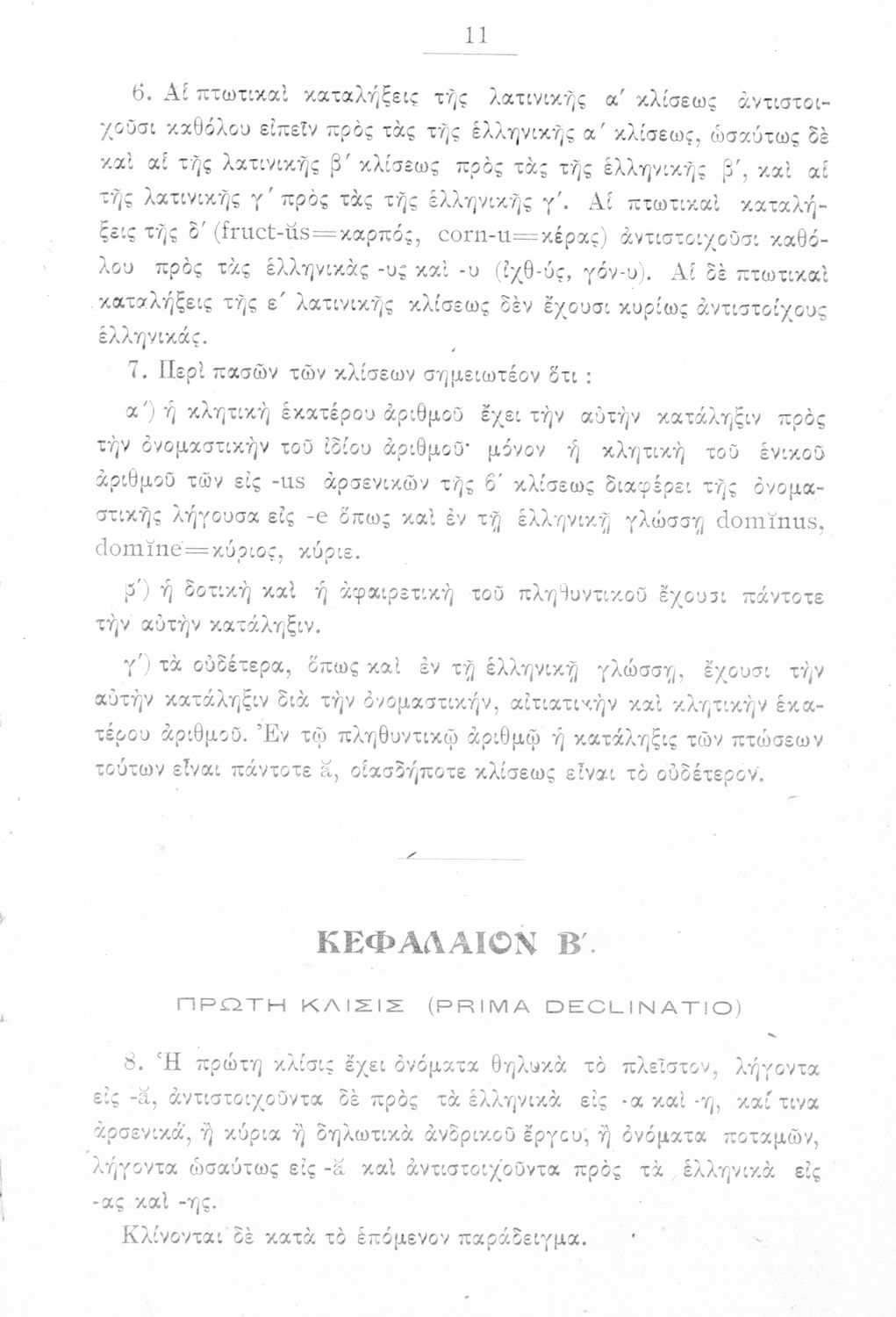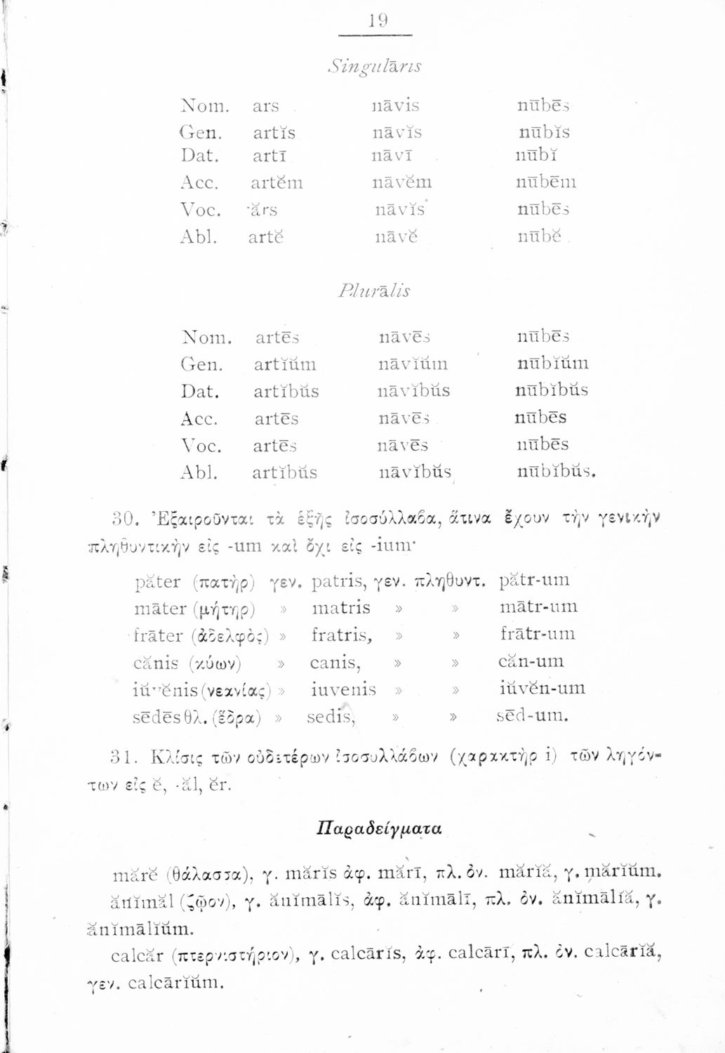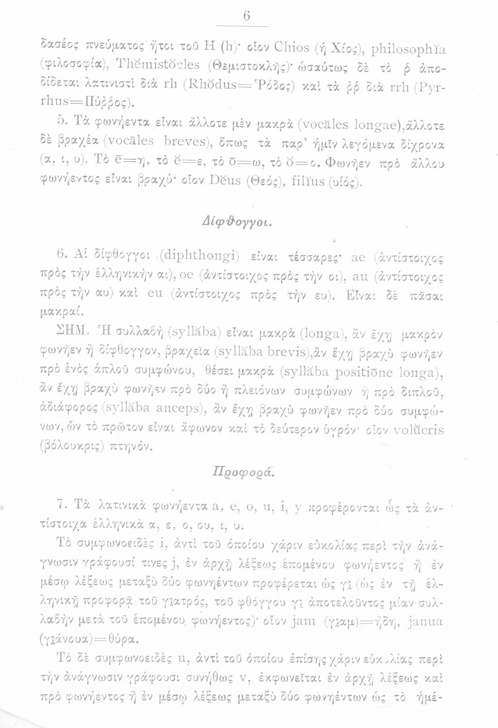 Σχολικό εγχειρίδιο Λατινικών που περιλαμβάνει τη γραμματική της λατινικής και είναι χωρισμένο στο τεχνολογικό, το τυπολογικό και το ετυμολογικό μέρος.