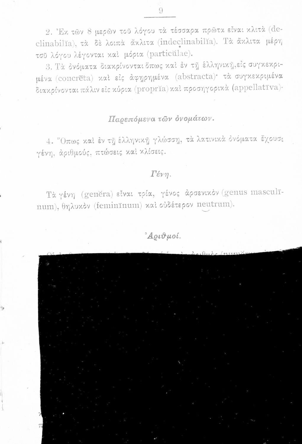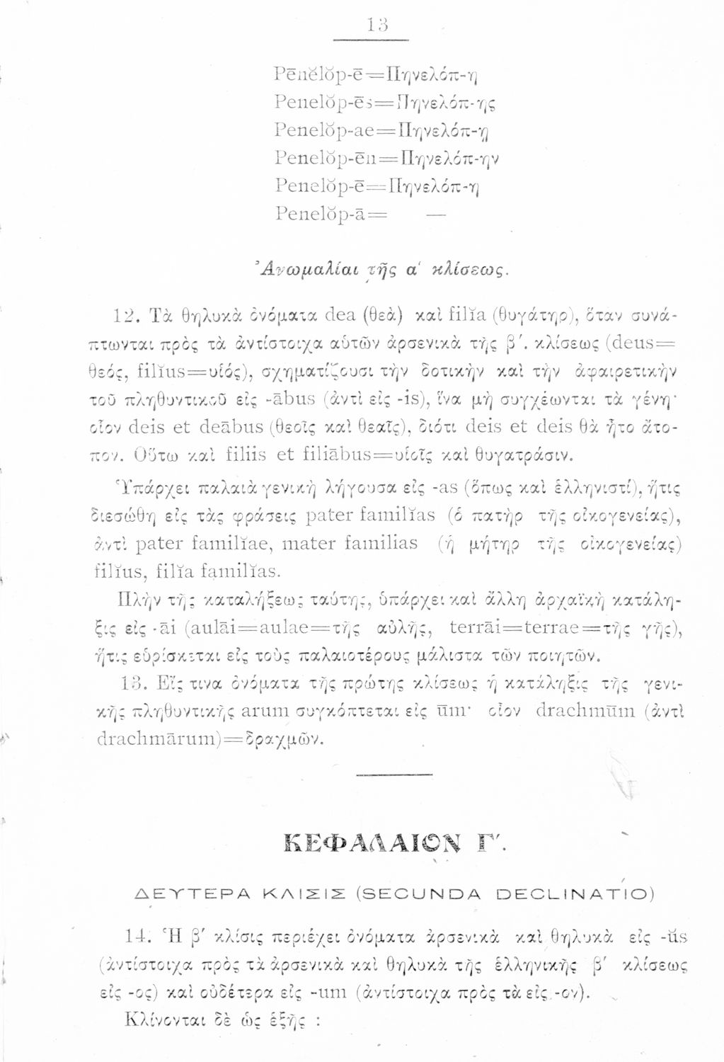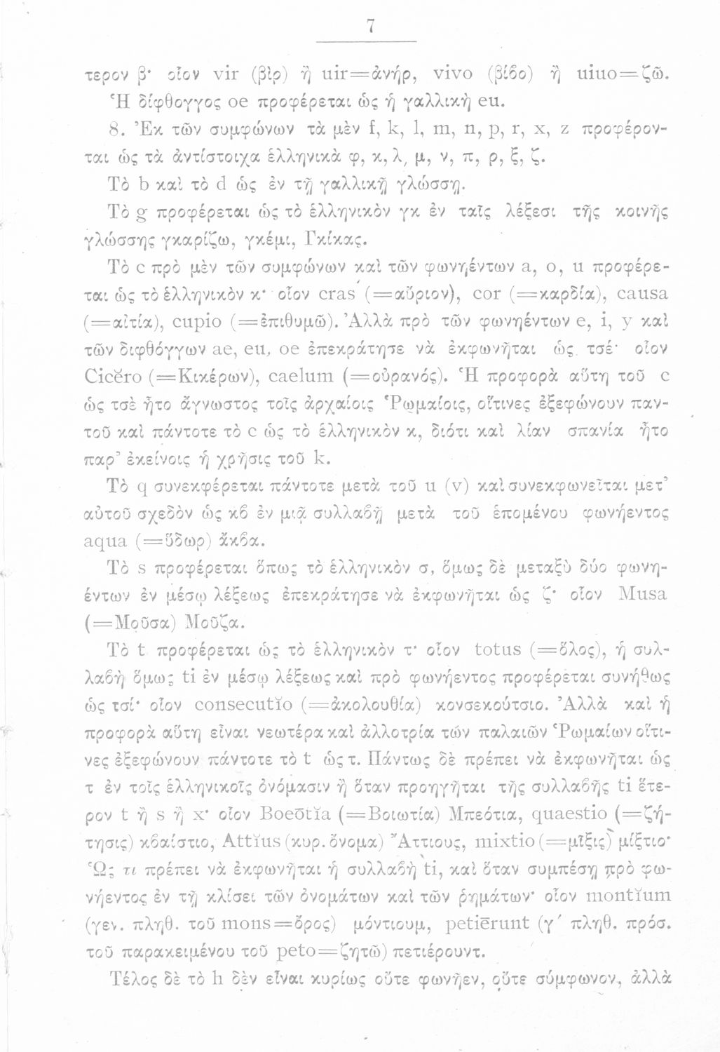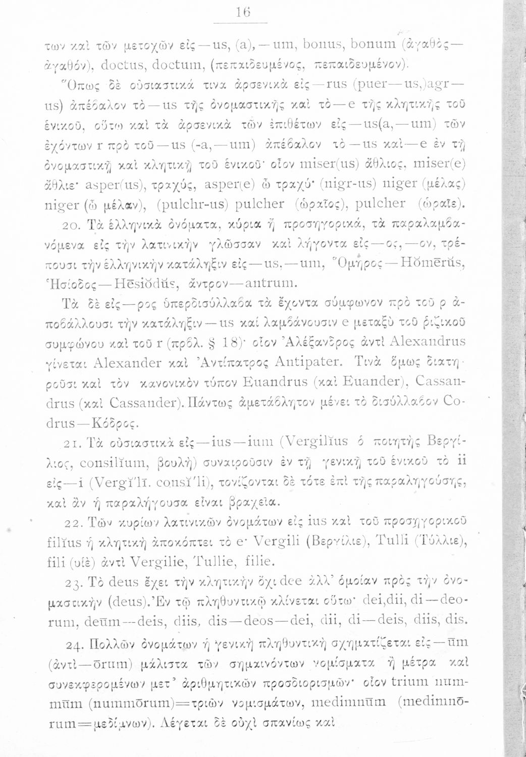 Σχολικό εγχειρίδιο Λατινικών που περιλαμβάνει τη γραμματική της λατινικής και είναι χωρισμένο στο τεχνολογικό, το τυπολογικό και το ετυμολογικό μέρος.