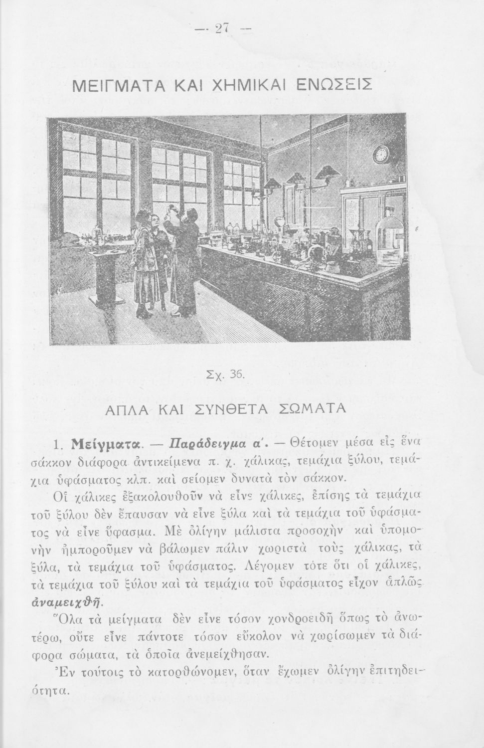 Βαθμίδα εκπαίδευσης: Πρωτοβάθμια Μάθημα: Χημεία Γλώσσα: Καθαρεύουσα Παρουσίαση περιεχομένου: Μαθητικό βοήθημα Χημείας Δημοτικού που παρουσιάζει τα βασικά στοιχεία της φύσης, τα οξέα, τις βάσεις, τις άλατα και στις χημικές ενώσεις τους. |