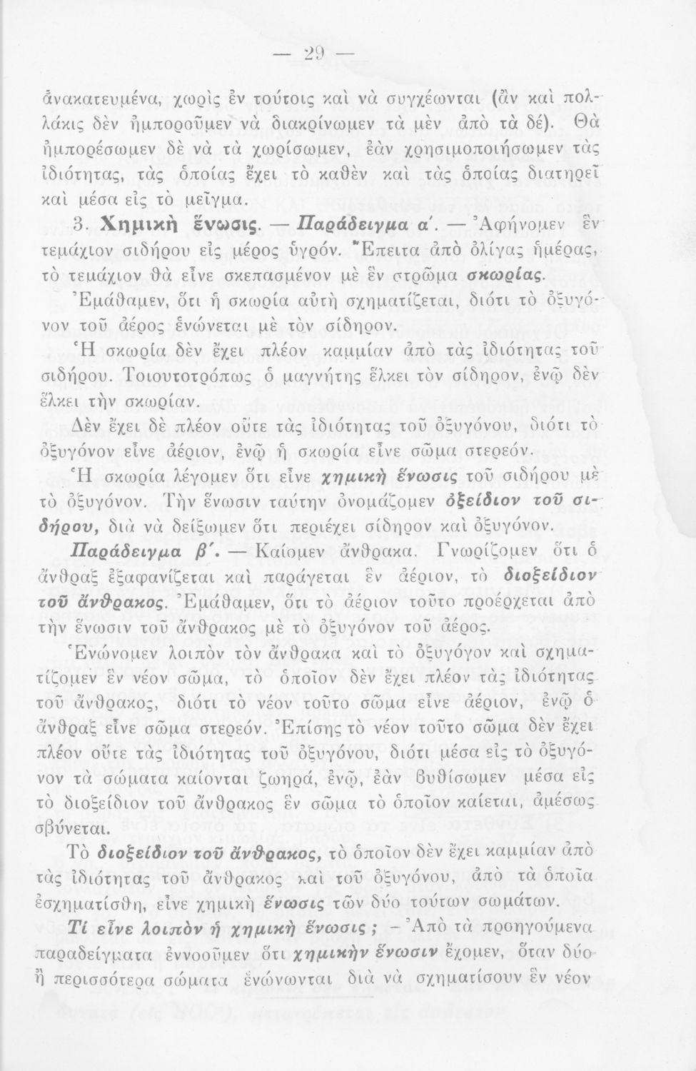 Κωδικός αναγνώρισης: 01-18273 Τίτλος: Η Χημεία δια τα Δημοτικά Σχολεία Συγγραφέας: Σπ. Ν. Παπανικολάου, Διον. Π. Λεονταρίτης Μέγεθος και υπόστρωμα: Μαθητικό βοήθημα, σκληρό εξώφυλλο, 71 σελίδες. Σχέδια (ασπρόμαυρα). |