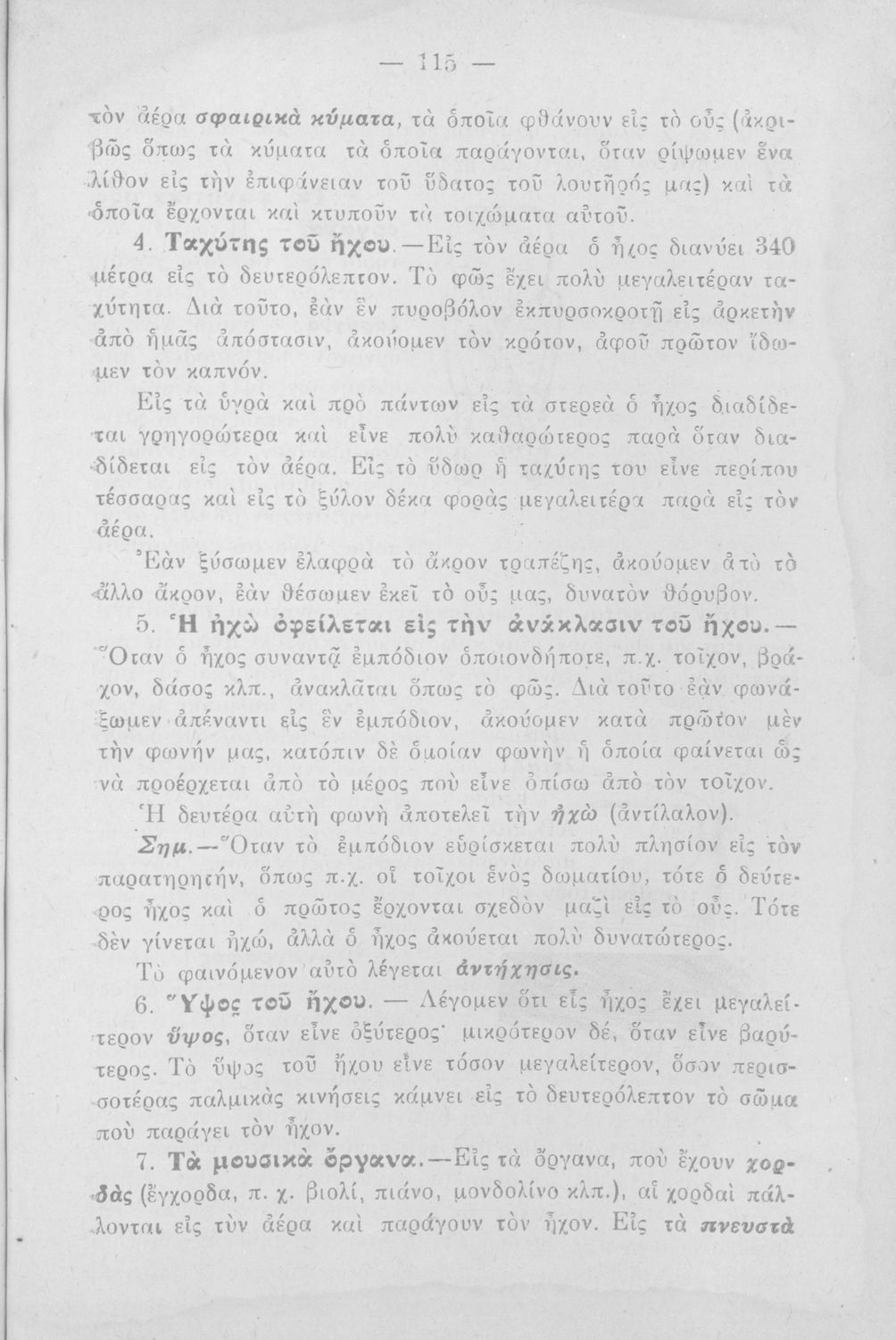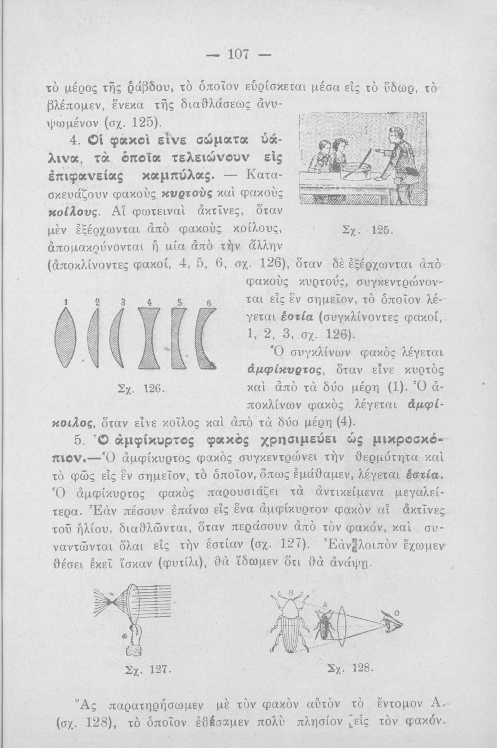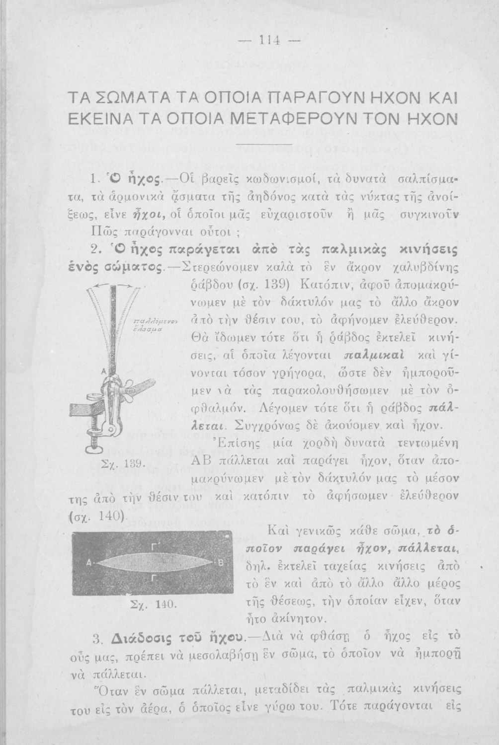 Σχολικό εγχειρίδιο της Ε΄ και ΣΤ΄ Τάξης των Δημοτικών Σχολείων και την Α΄ Τάξη των Οκτατάξιων Γυμνασίων, Προγυμνασίων και Αστικών Σχολείων για το μάθημα της Φυσικής. Παρέχει βασικές γνώσεις της φυσικής επιστήμης. Αναλύει τις ιδιότητες των σωμάτων, καθώς και της θερμότητας, του ηλεκτρισμού και του μαγνητισμού, την υδροστατική, την βαρύτητα και την αεροστατική. Αναφέρει πολλά από τα όργανα, που χρησιμοποιούνται στη φυσική, καθώς και τις πρακτικές εφαρμογές της επιστήμης στην καθημερινότητα. Περιέχει εικόνες και σχεδιαγράμματα, τα οποία βοηθούν τη διδασκαλία.