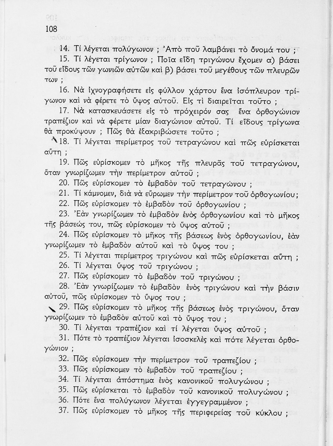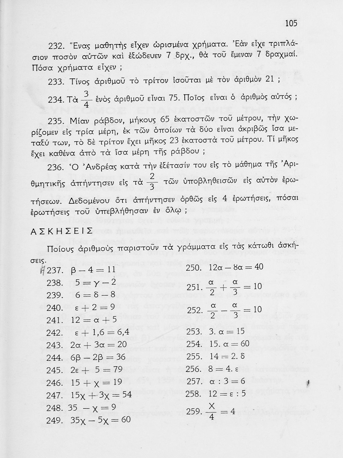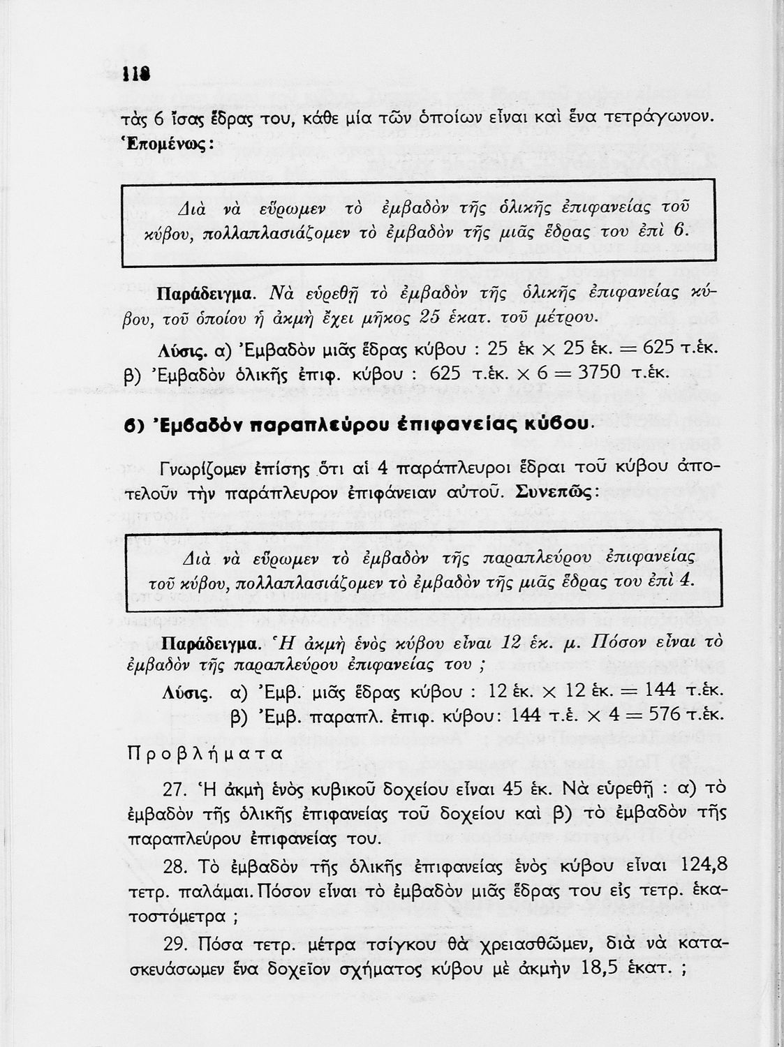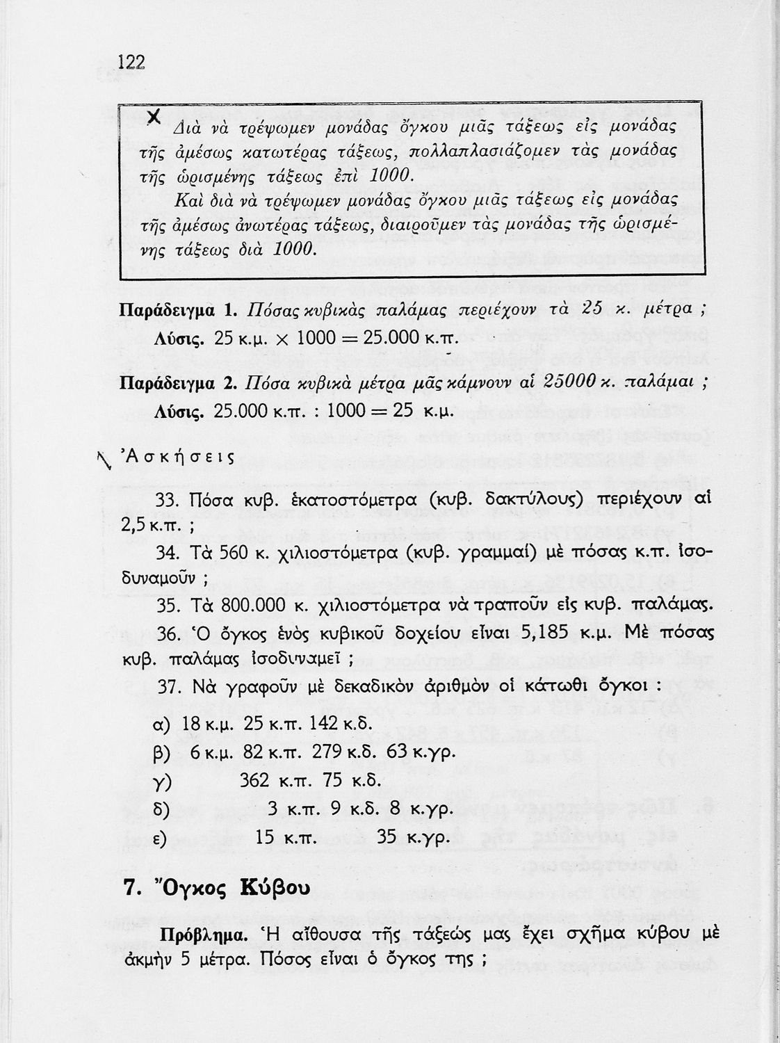 Σχολικό εγχειρίδιο Μαθηματικών ΣΤ΄ Δημοτικού που περιλαμβάνει ασκήσεις λογιστικού χαρακτήρα και ασκήσεις μέτρησης γεωμετρικών σχημάτων. Φέρει το σύμβολο της δικτατορίας.