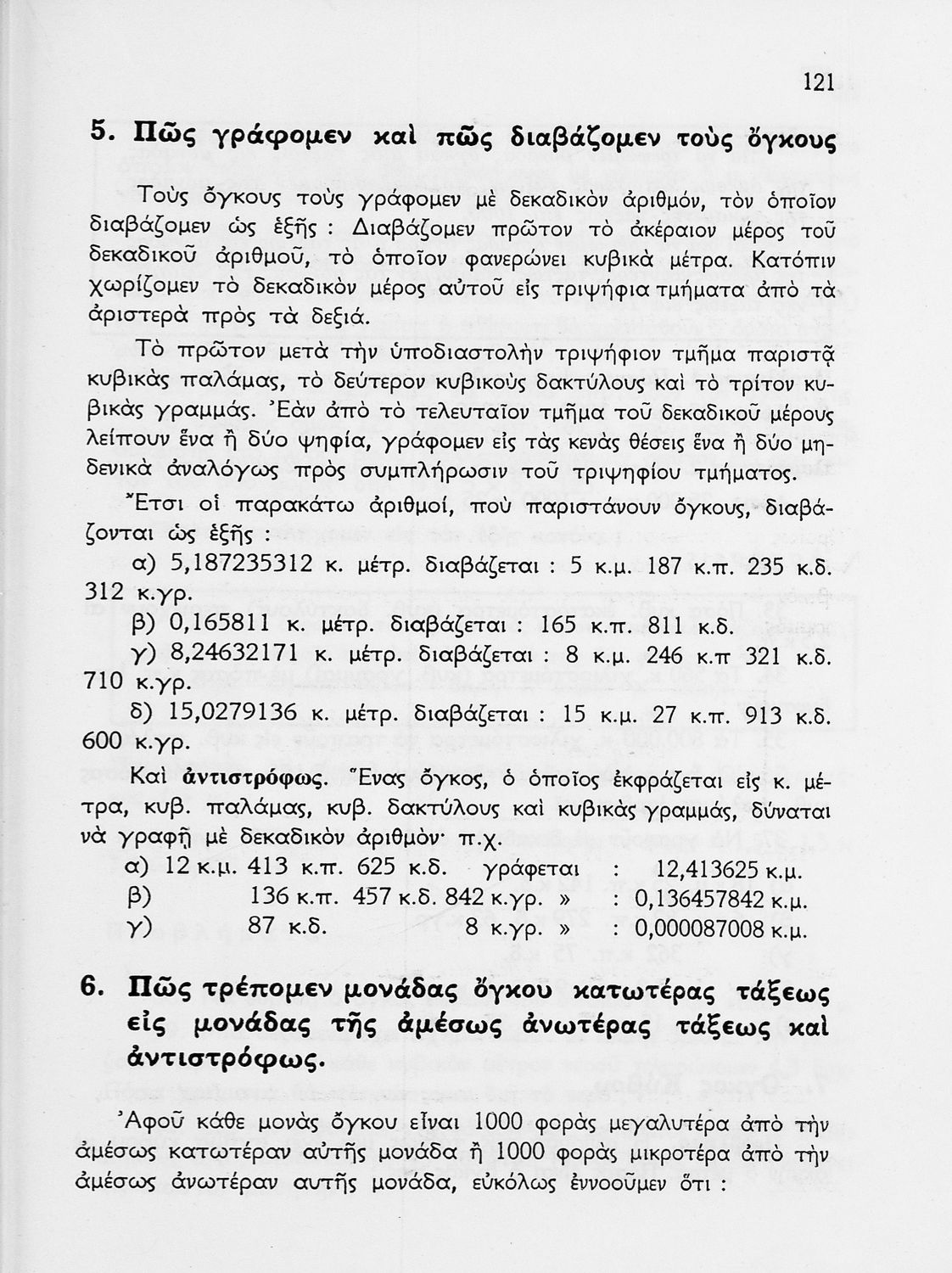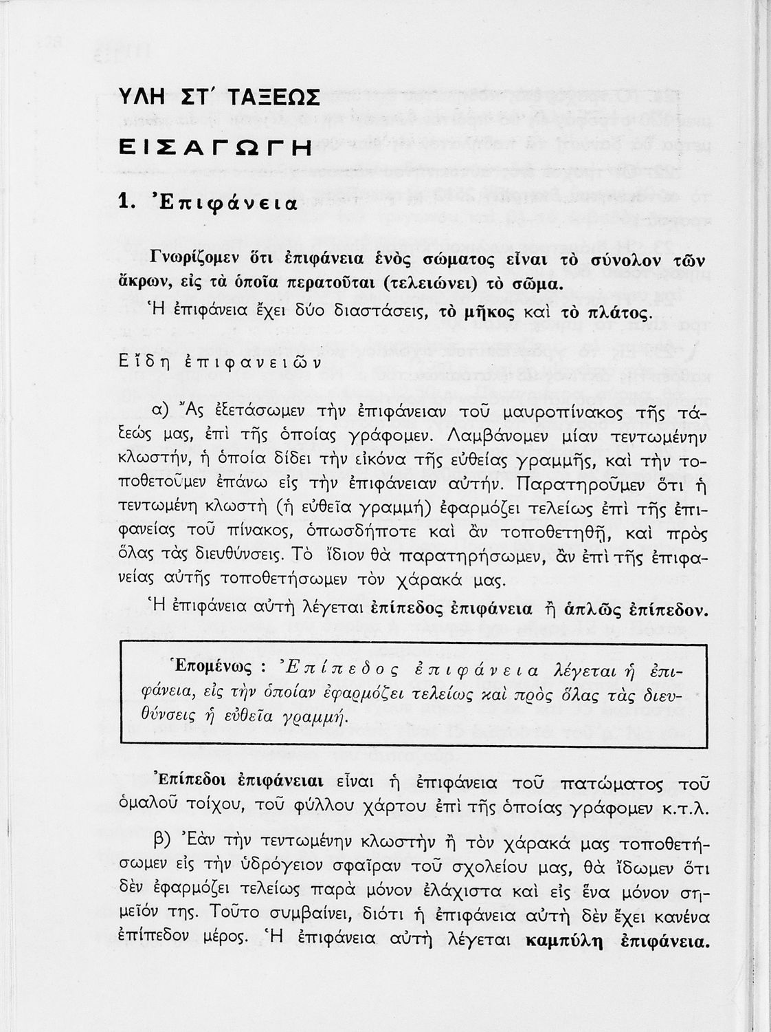Βαθμίδα εκπαίδευσης: Πρωτοβάθμια Τάξη: ΣΤ' Δημοτικού Μάθημα: Μαθηματικά Γλώσσα: Δημοτική Παρουσίαση περιεχομένου: Σχολικό εγχειρίδιο Μαθηματικών ΣΤ΄ Δημοτικού που περιλαμβάνει ασκήσεις λογιστικού χαρακτήρα και ασκήσεις μέτρησης γεωμετρικών σχημάτων. Φέρει το σύμβολο της δικτατορίας. |