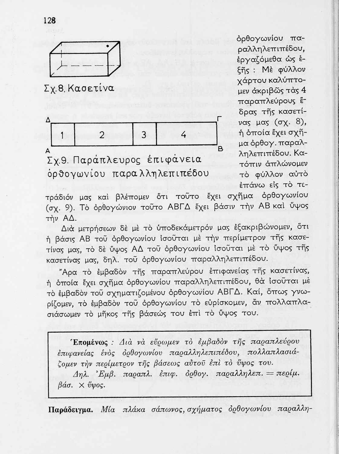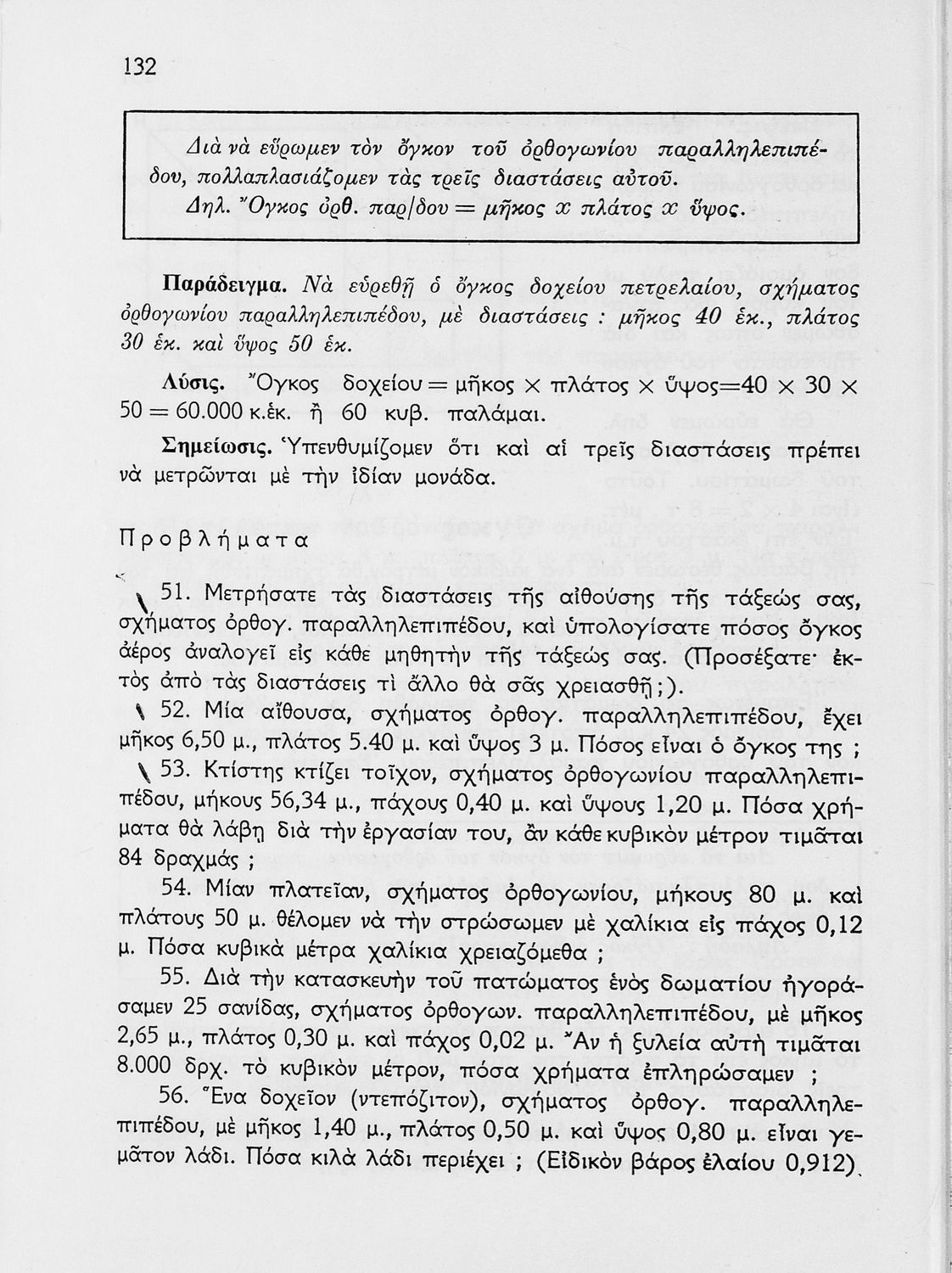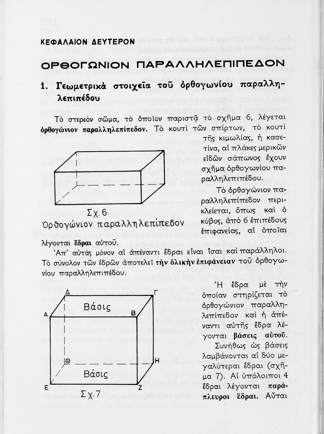 Σχολικό εγχειρίδιο Μαθηματικών ΣΤ΄ Δημοτικού που περιλαμβάνει ασκήσεις λογιστικού χαρακτήρα και ασκήσεις μέτρησης γεωμετρικών σχημάτων. Φέρει το σύμβολο της δικτατορίας.