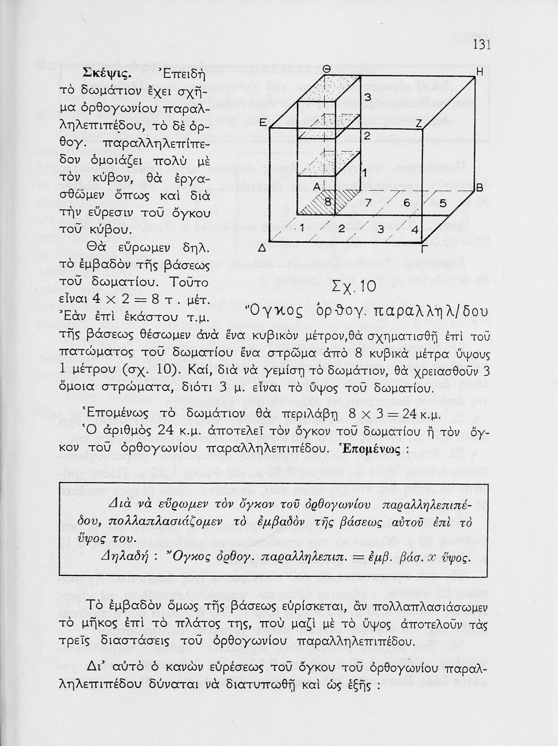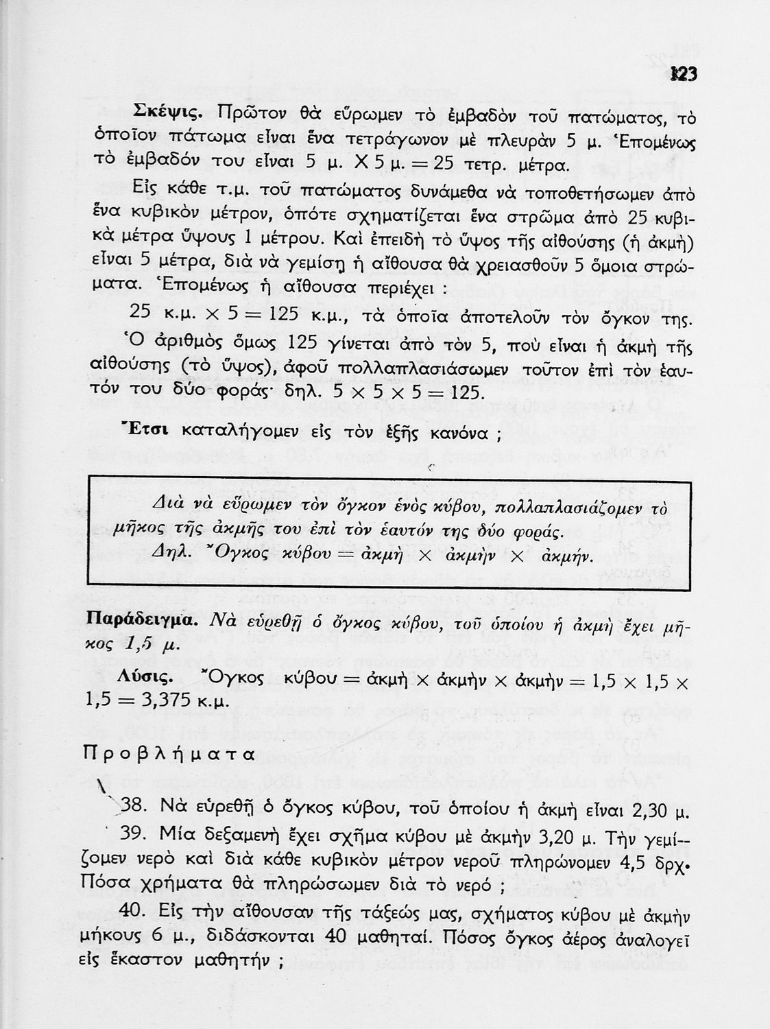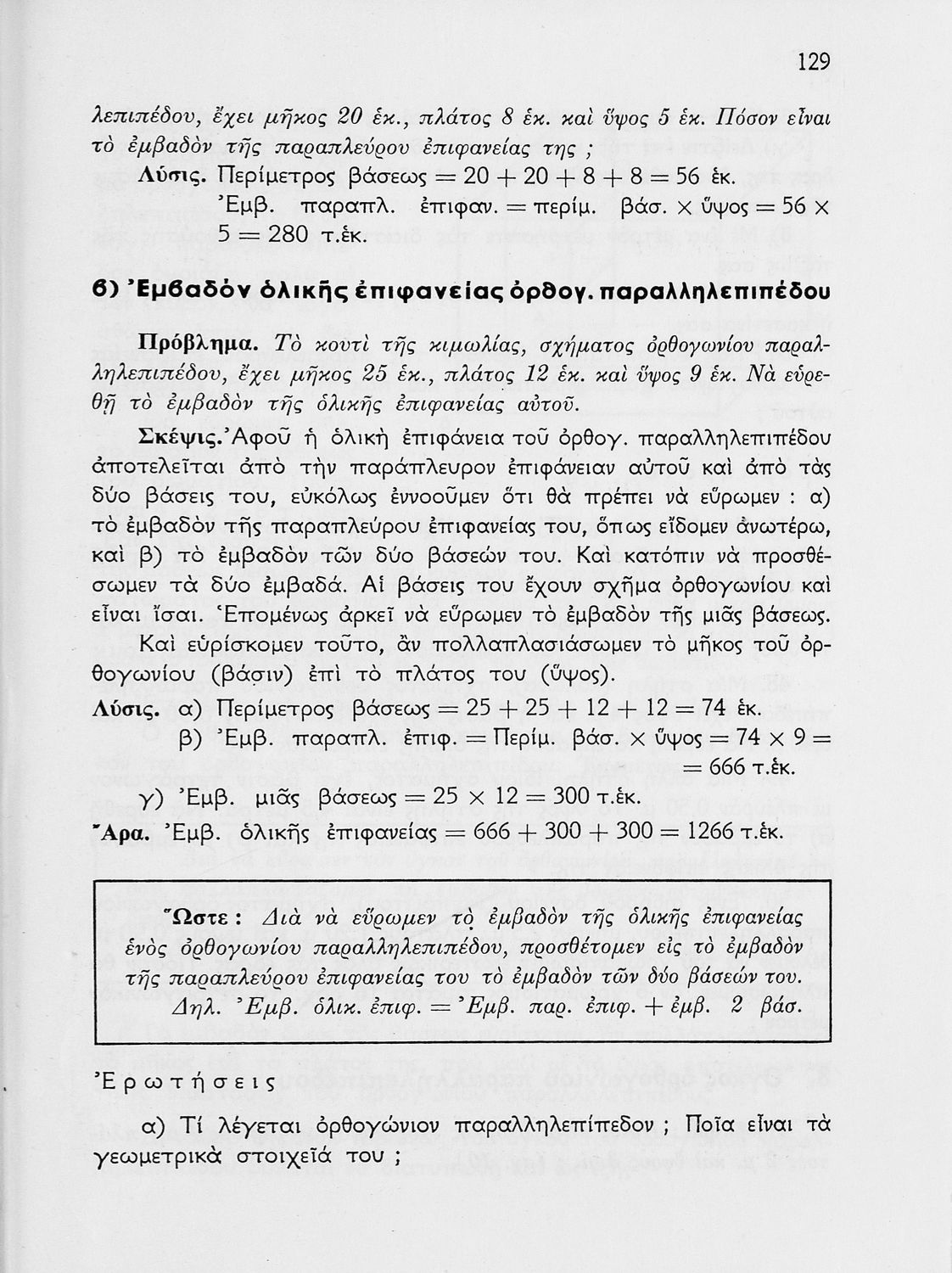 Σχολικό εγχειρίδιο Μαθηματικών ΣΤ΄ Δημοτικού που περιλαμβάνει ασκήσεις λογιστικού χαρακτήρα και ασκήσεις μέτρησης γεωμετρικών σχημάτων. Φέρει το σύμβολο της δικτατορίας.
