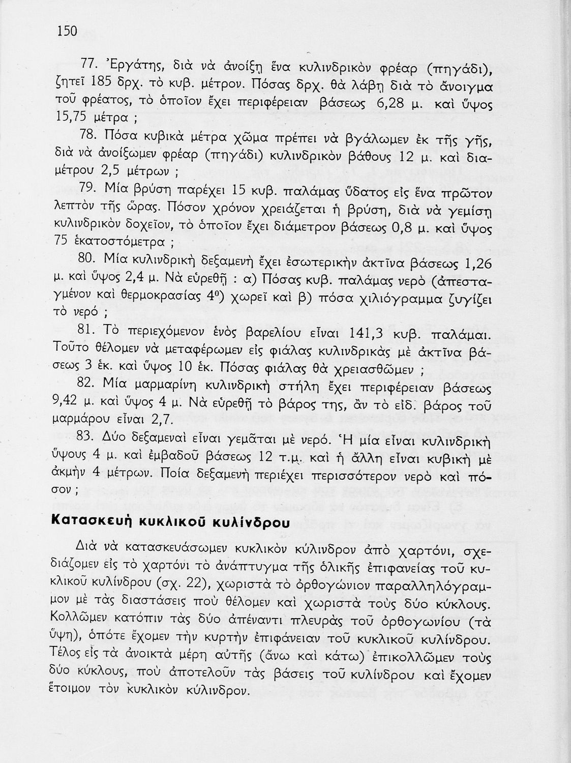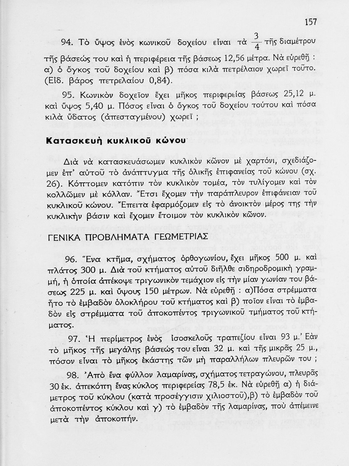Μαθητικό βοήθημα Γεωμετρίας για τις Ε΄ και ΣΤ΄ Δημοτικού που περιλαμβάνει εικόνες, σχεδιαγράμματα και ασκήσεις. Περιέχει πίνακα με τα ειδικά βάρη διαφόρων σωμάτων.